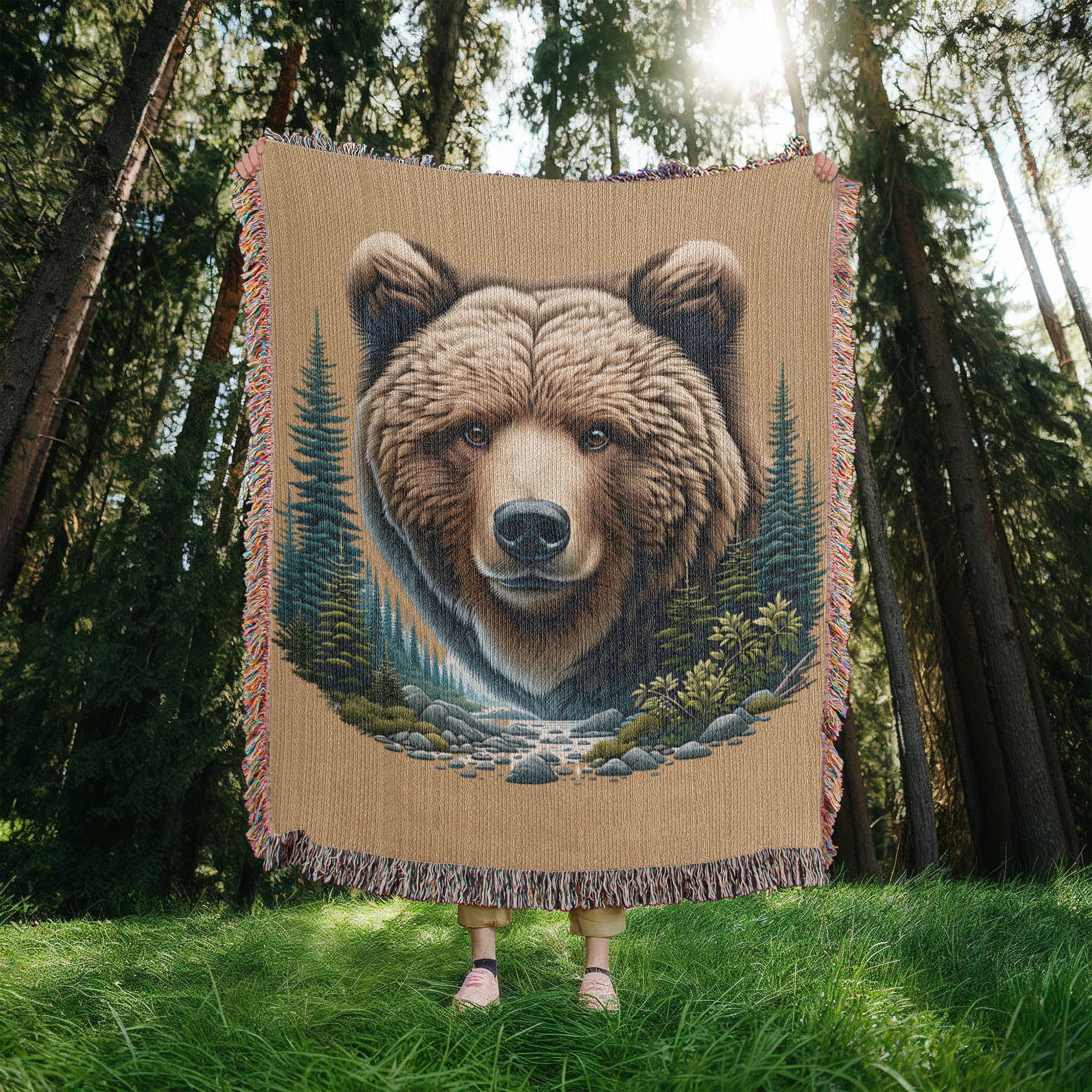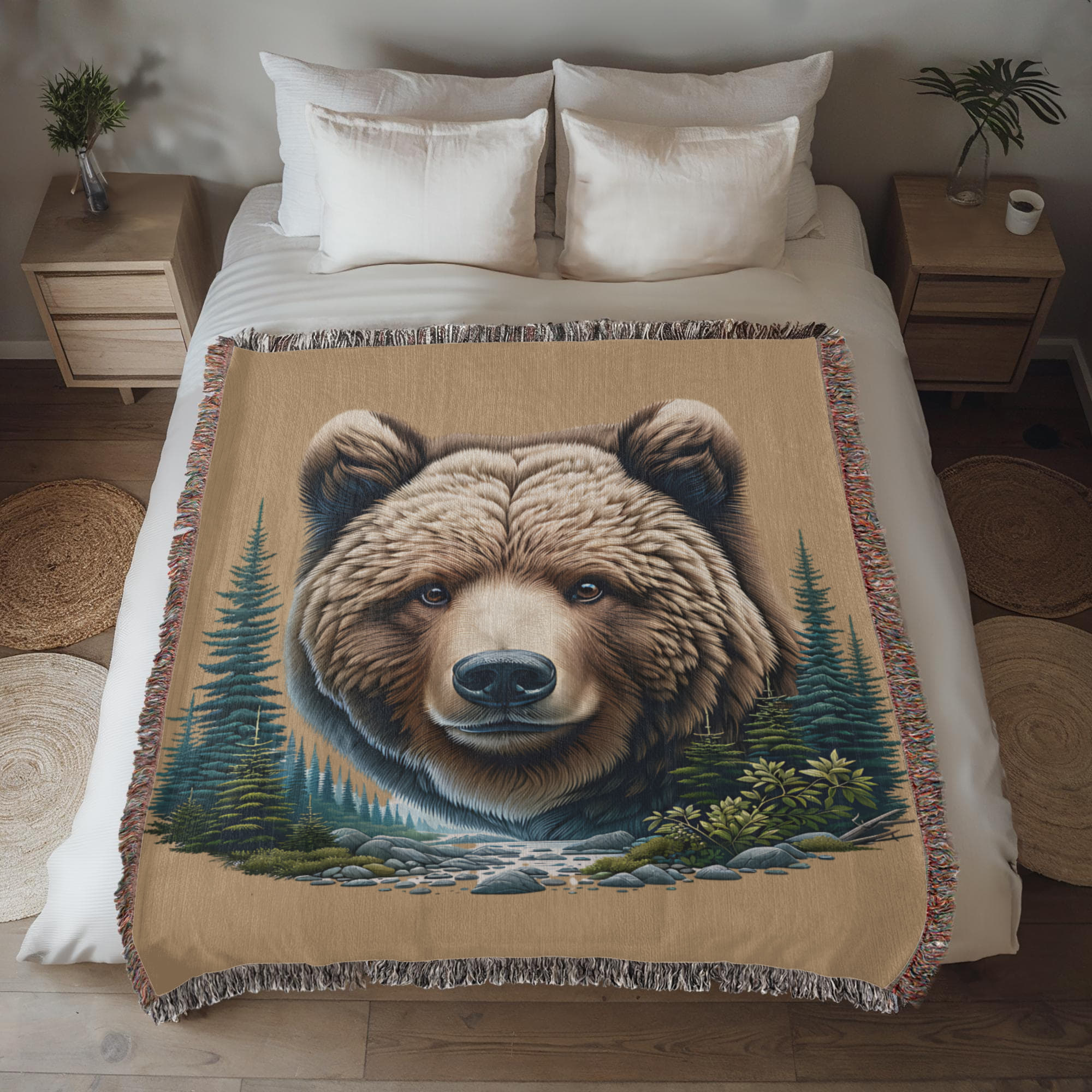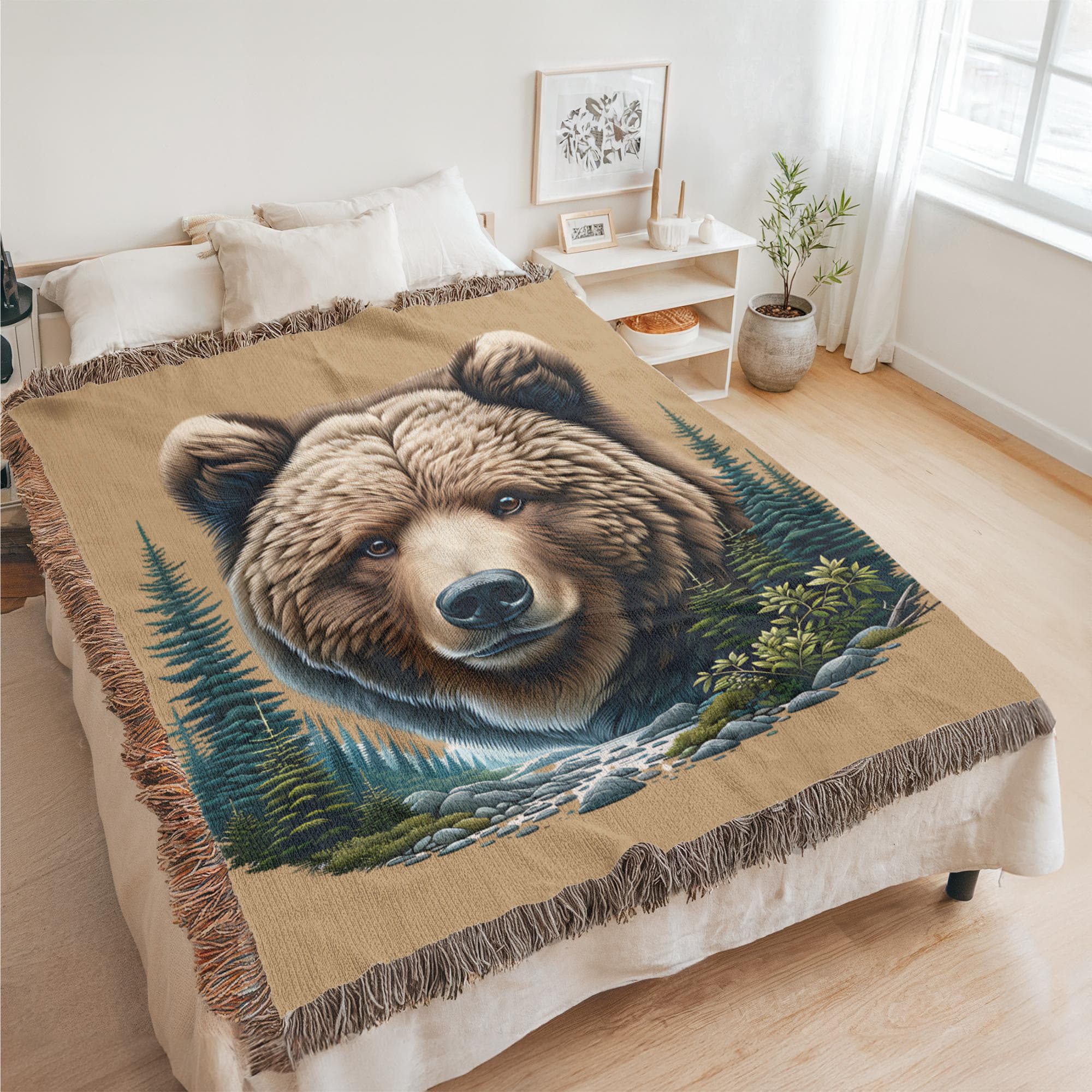 A Bear Illustration Heirloom Woven Blanket- Gift for Sons/Husbands.