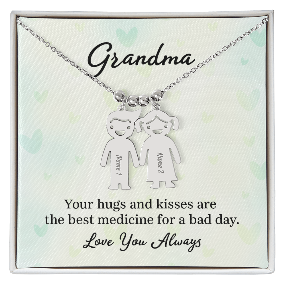 This unforgettable gift will leave her speechless! Introducing the Engraved Kids Charm Necklace. This necklace features up to three engraved charms, each shaped like a child, and can be personalized with the name or word of your choice. Made with high-quality materials, this necklace is a perfect gift for mothers and grandmothers who want to keep their children or grandchildren close to their heart. Whether you want to commemorate a special moment, celebrate a milestone, or simply express your love, this necklace is a perfect way to do it.