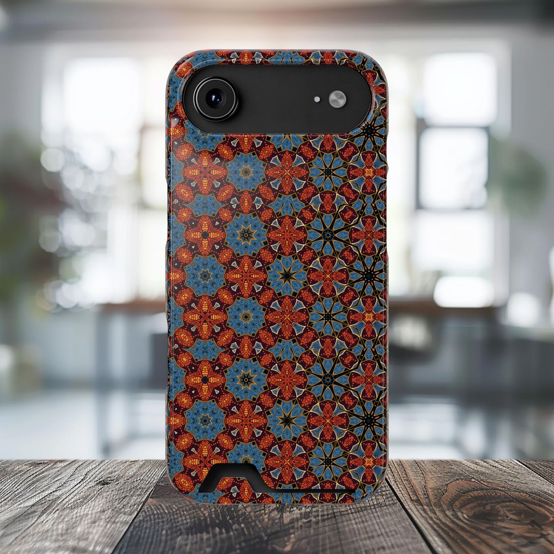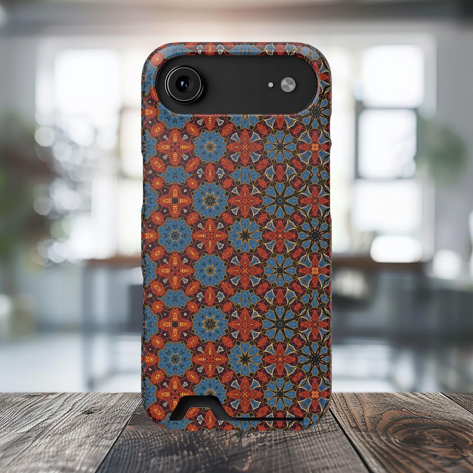 Keep your essentials safe and stylish with the Arabesque Harmony Phone Case-Cardholder Combo, featuring a vibrant, artistic mosaic design that adds a touch of creativity to your phone. Made from 100% impact-resistant polycarbonate, this slim and lightweight phone case offers superior protection while securely holding your essential card in one place. Perfect for everyday use, it resists wear and tear without compromising on style.