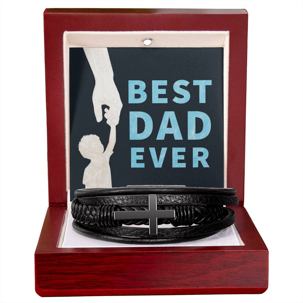Best Dad Ever- Cross Leather Bracelet gift for Dad/Sons/Fathers/Grandfather.