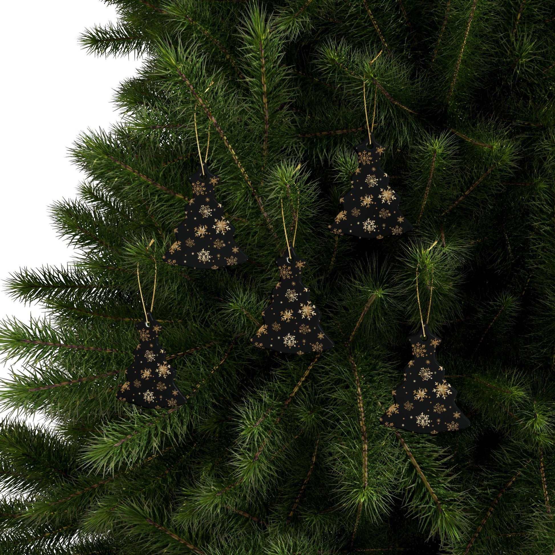 Black and Gold Snowflake Elegance Ceramic Ornaments (1pcs, 5pcs, 10pcs, 20pcs)