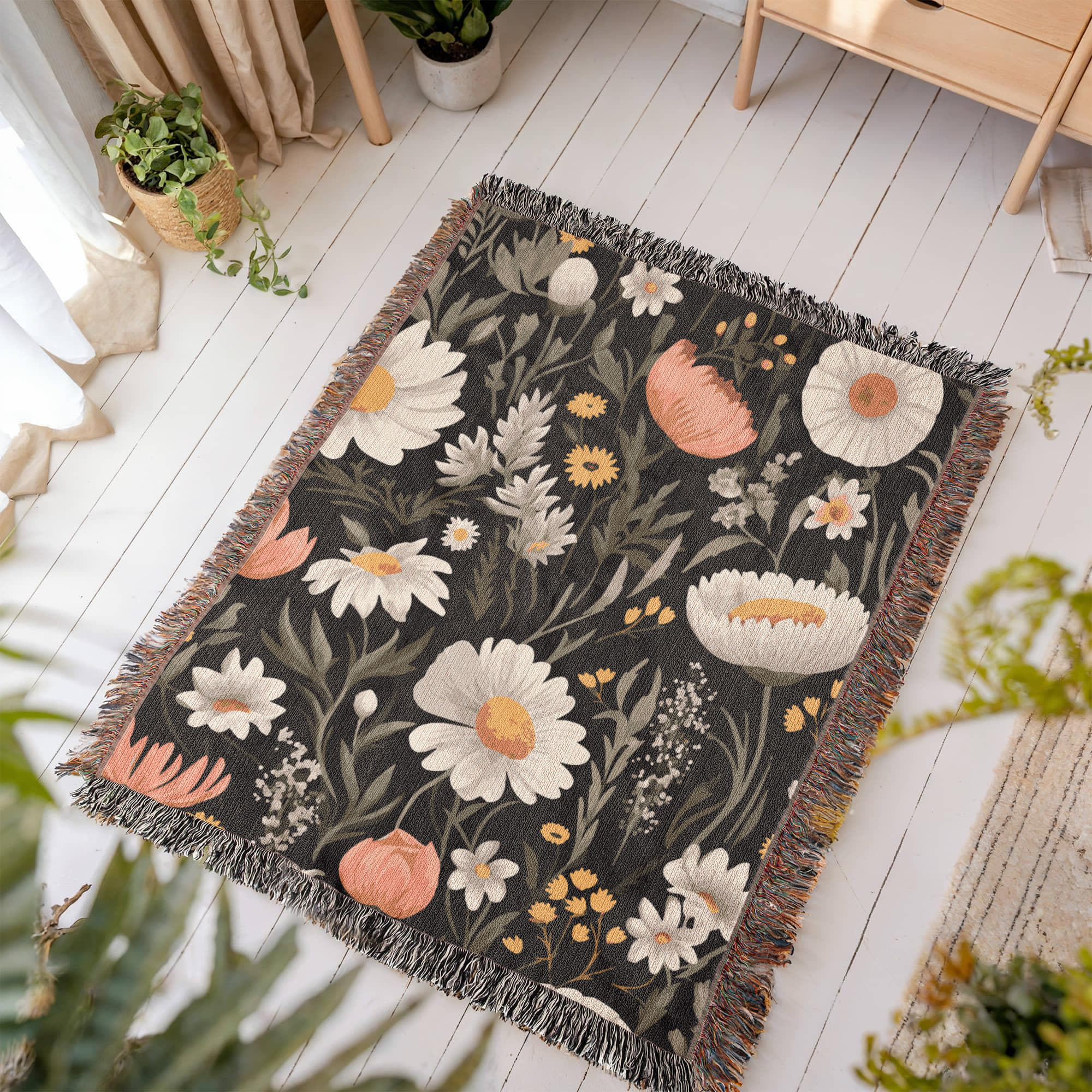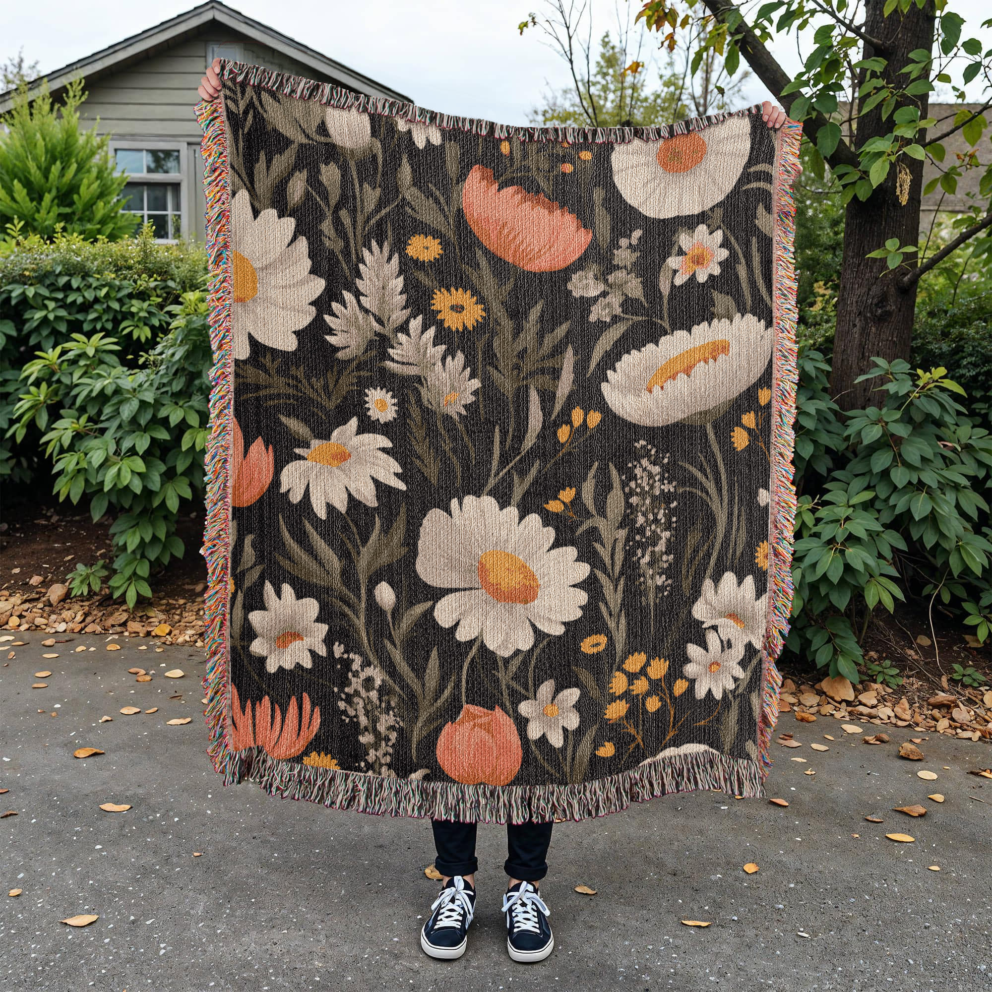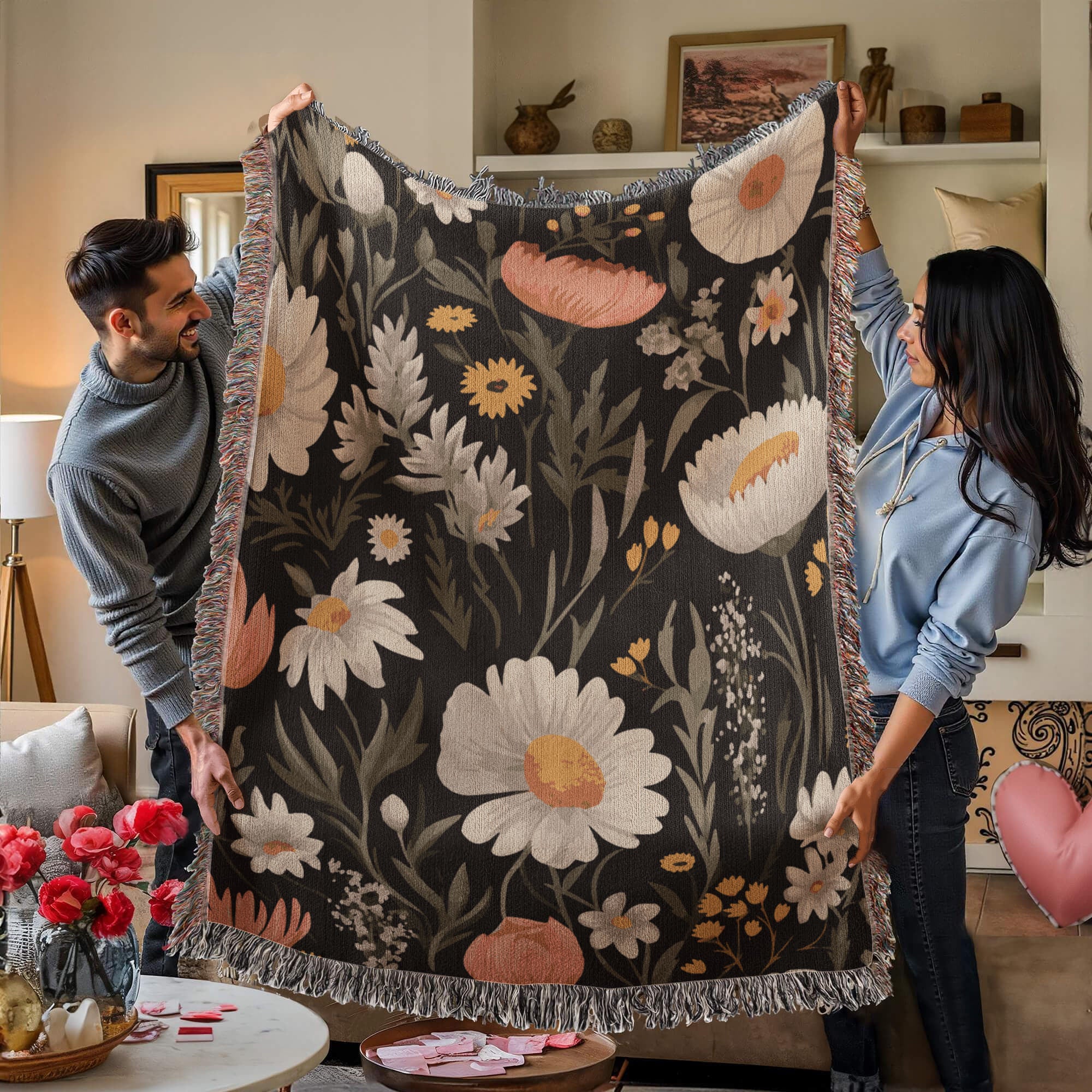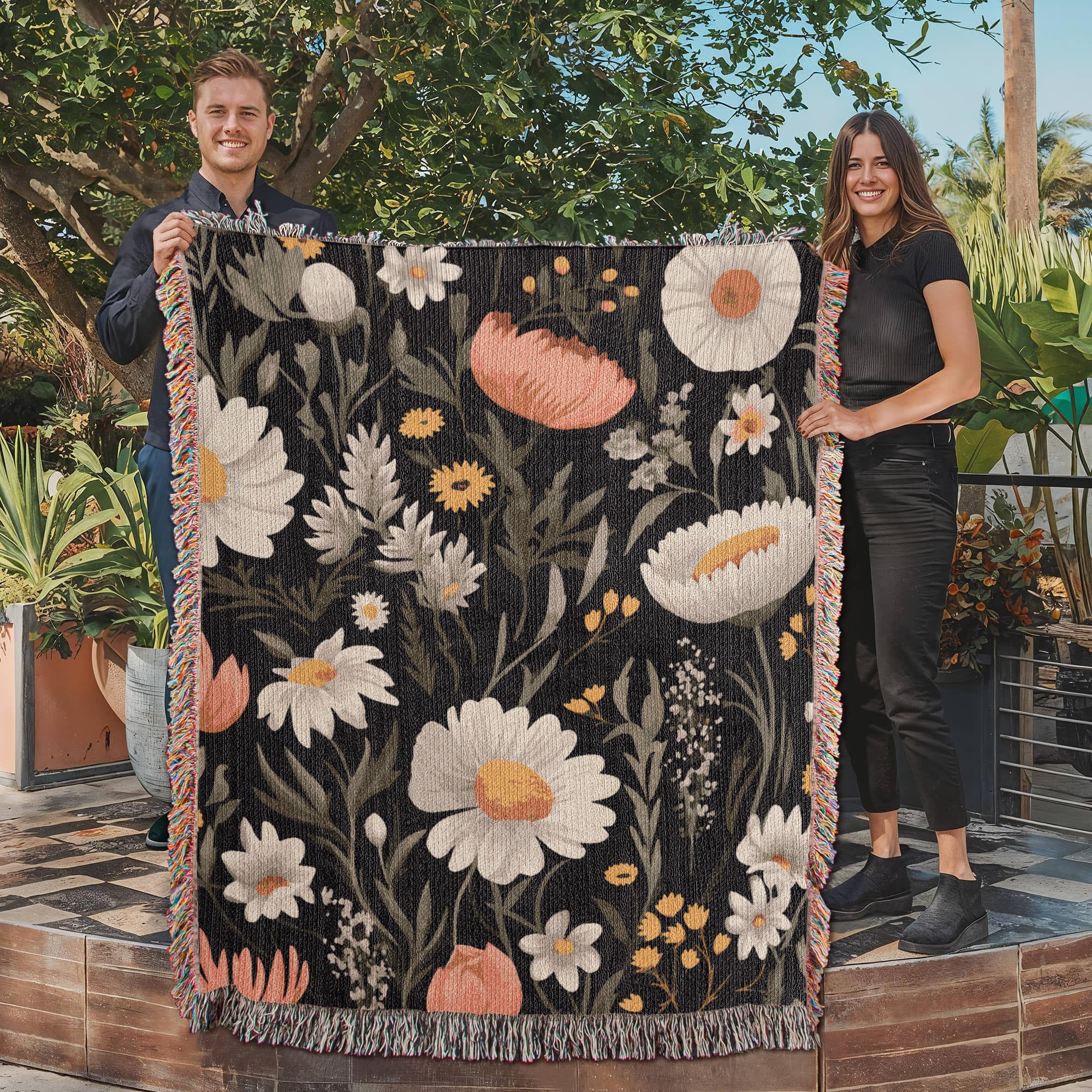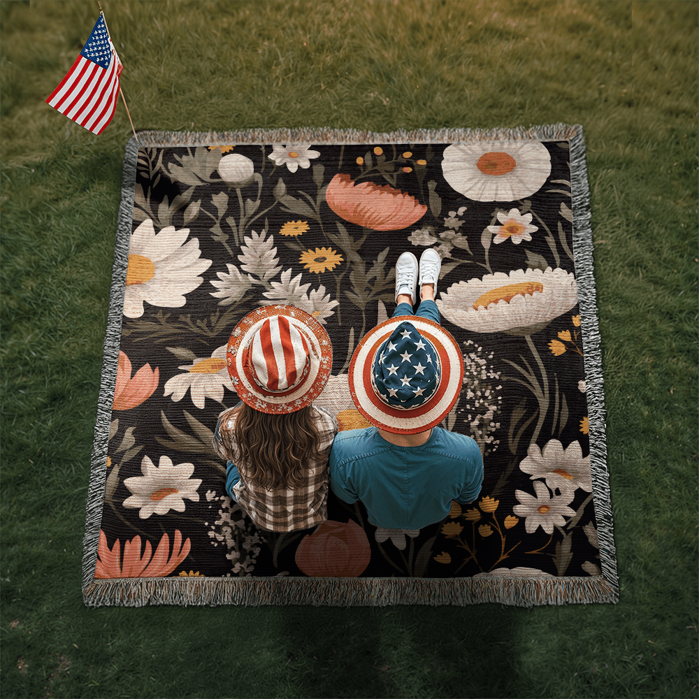 Blossom Elegance: Noir Garden Heirloom Woven Blanket- a Gift for Mothers/Daughters