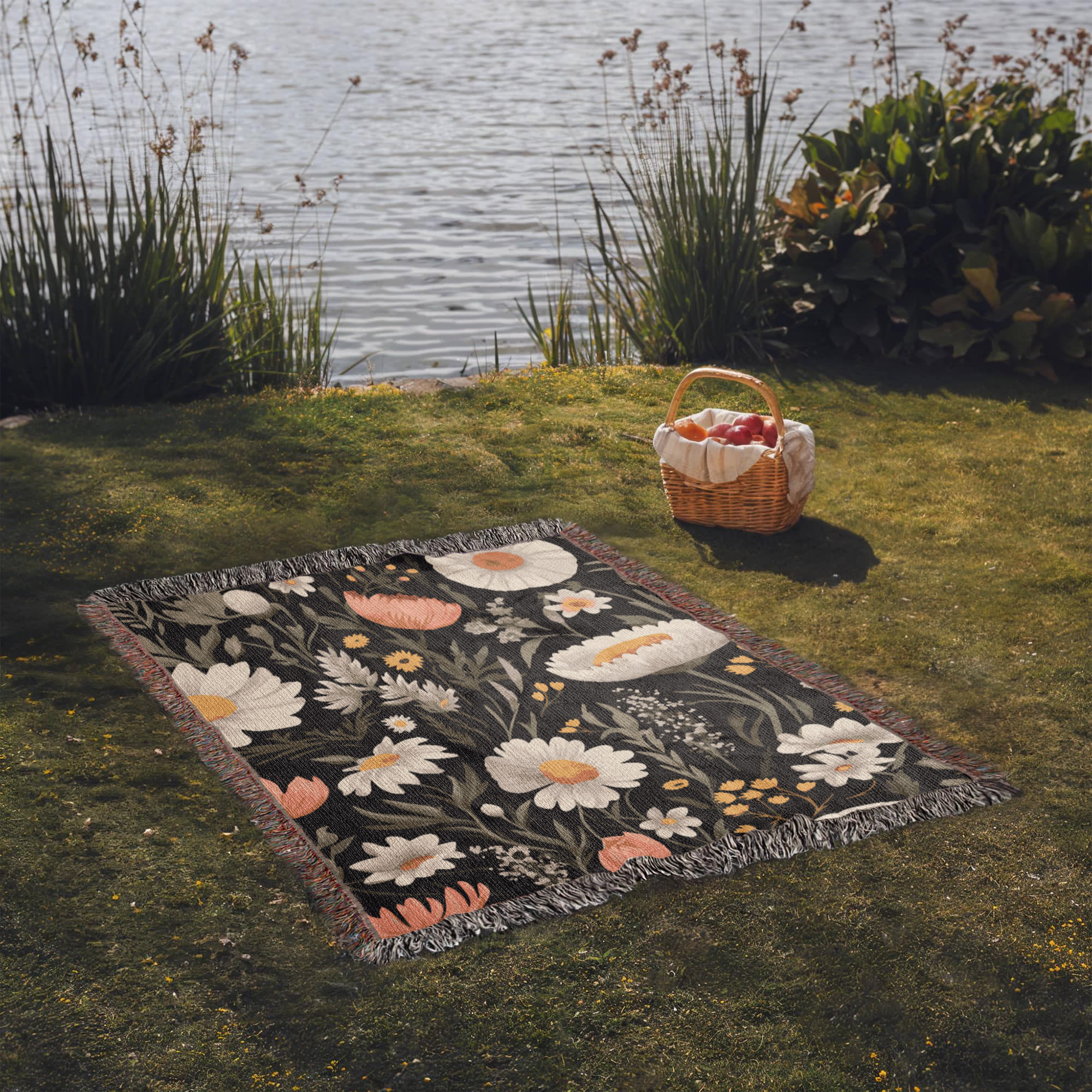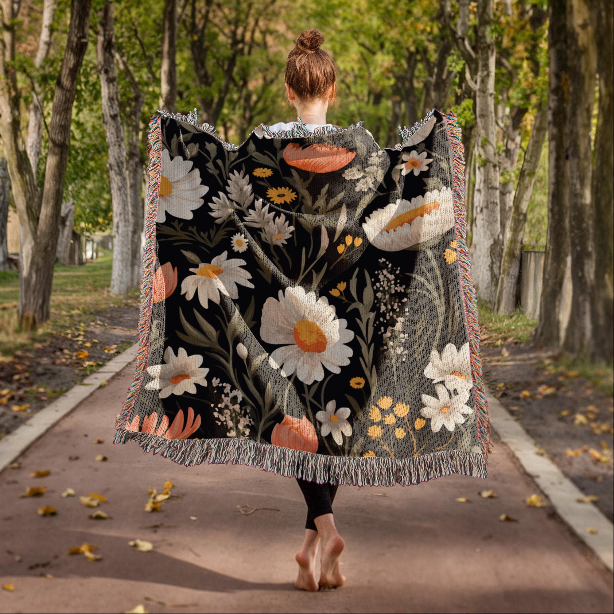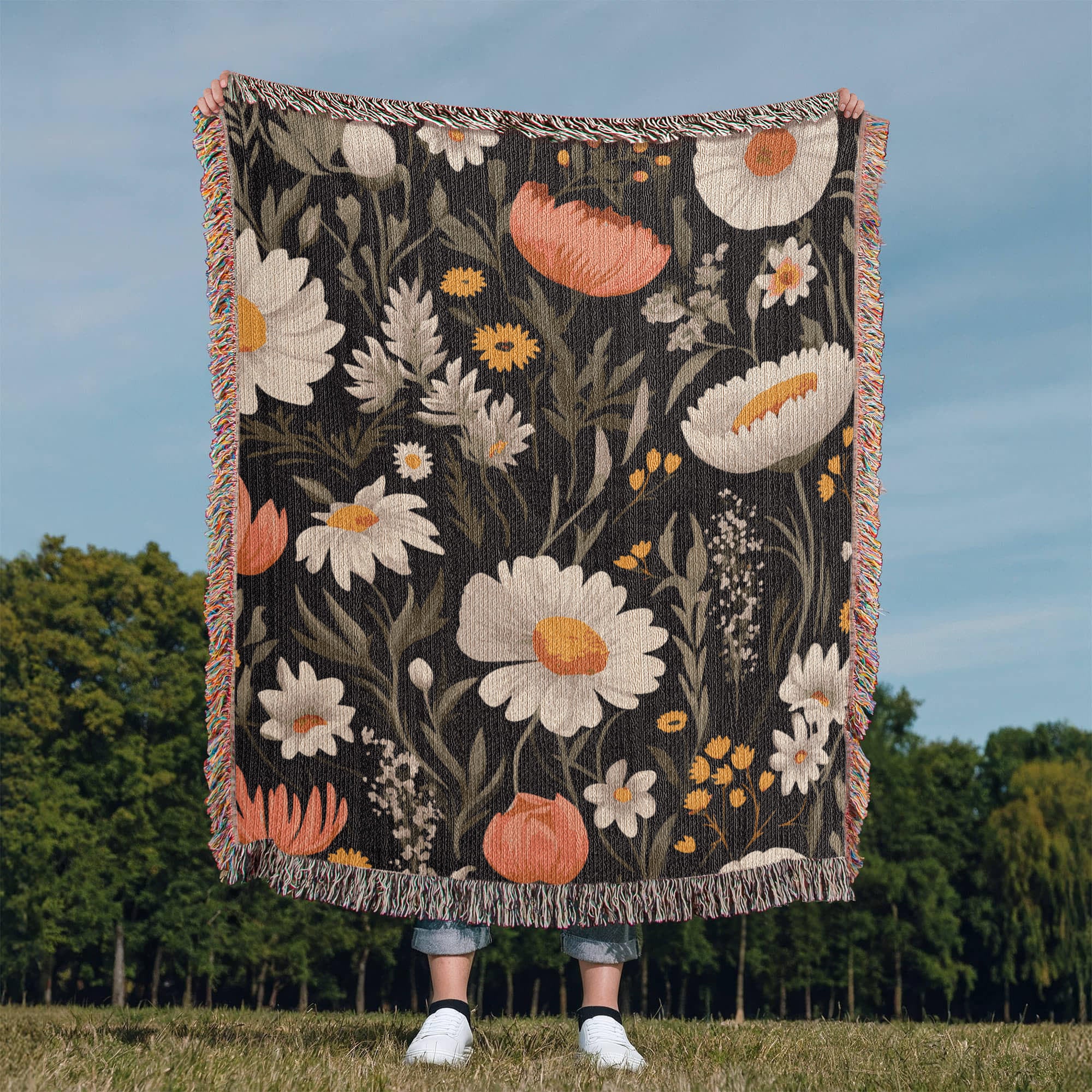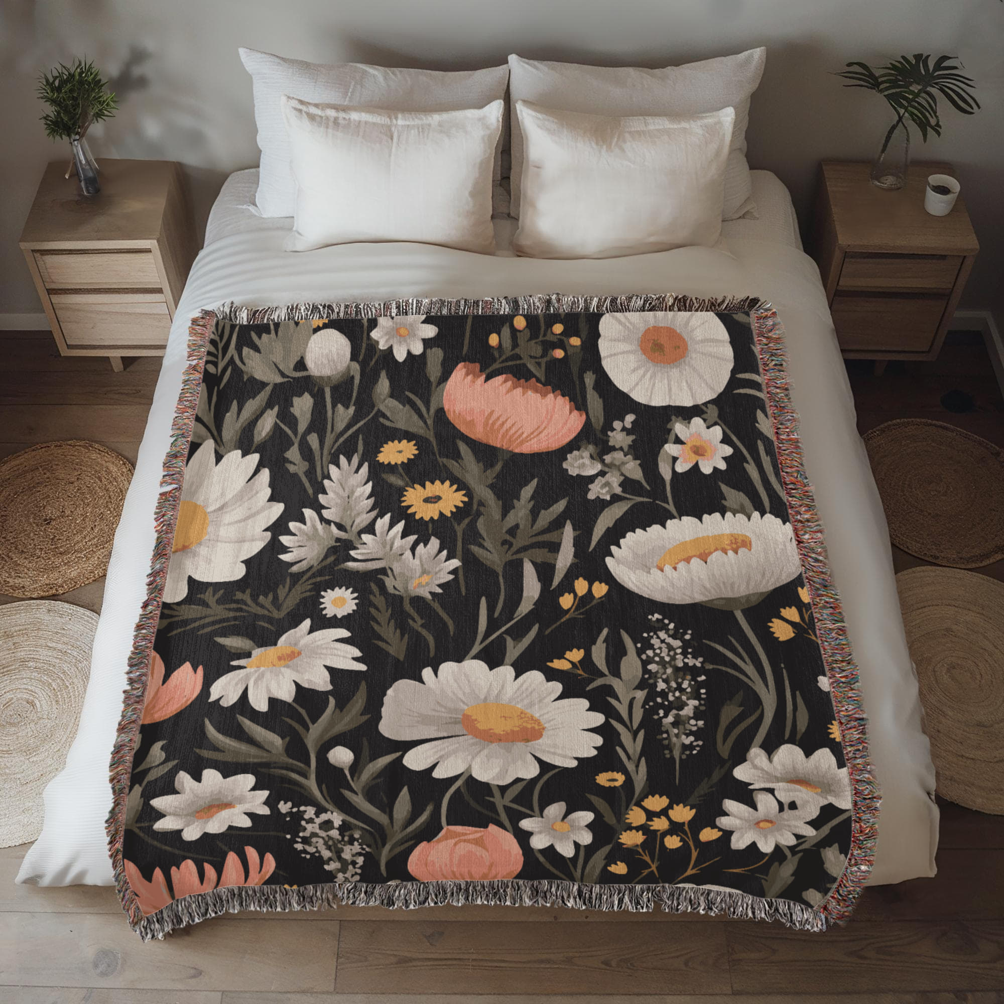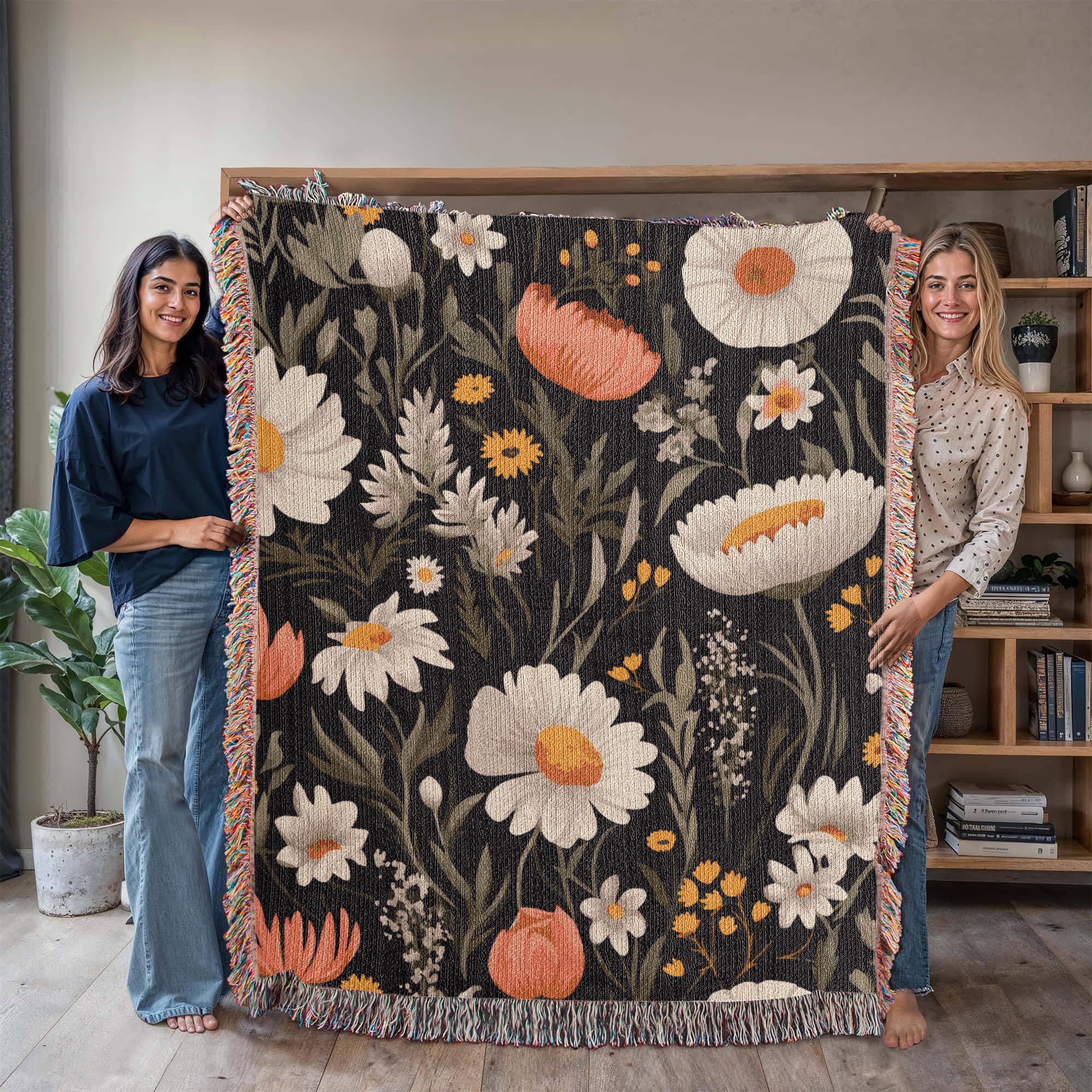 Blossom Elegance: Noir Garden Heirloom Woven Blanket- a Gift for Mothers/Daughters