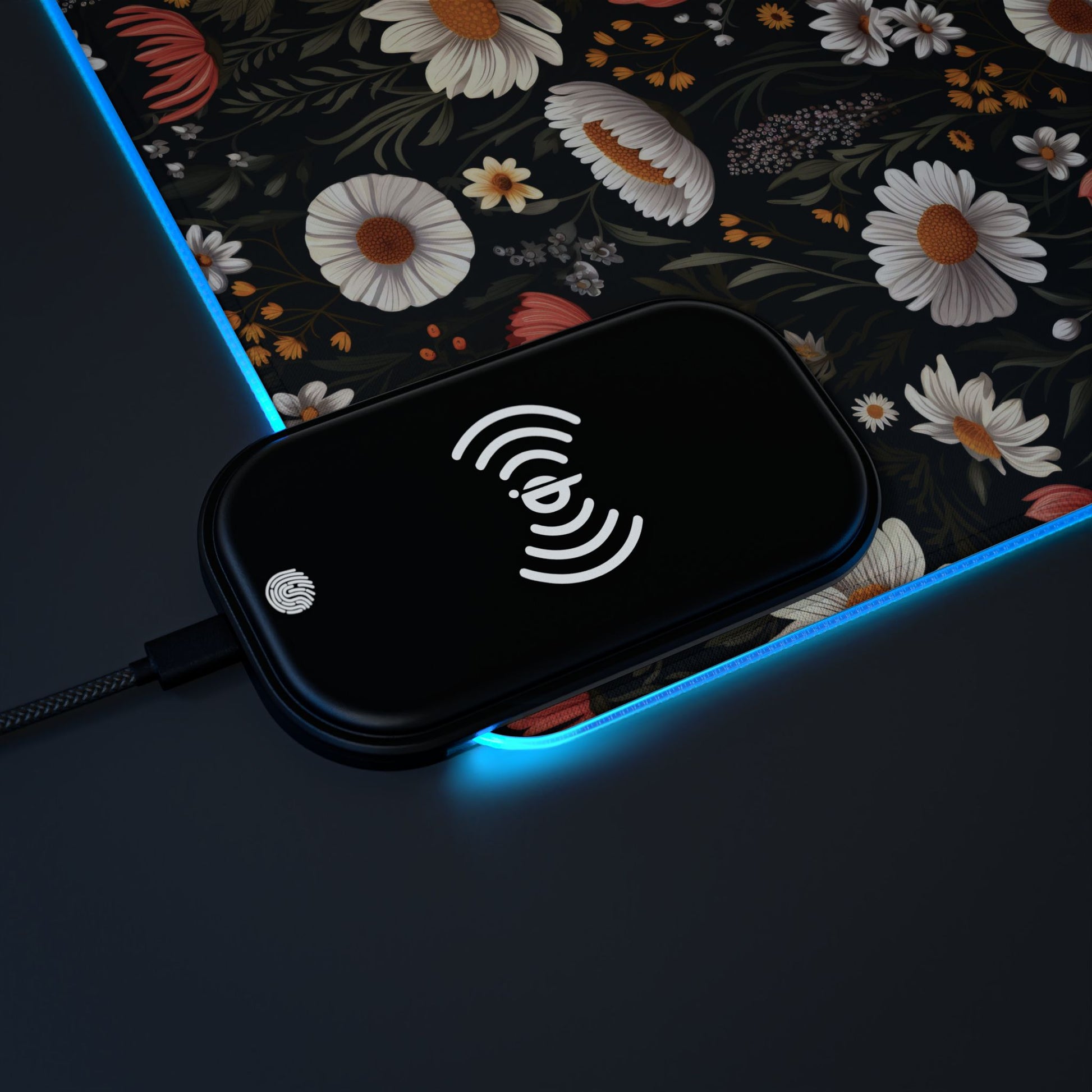 Blossom Elegance: Noir Garden LED Gaming Mouse Pad, Wireless Charging