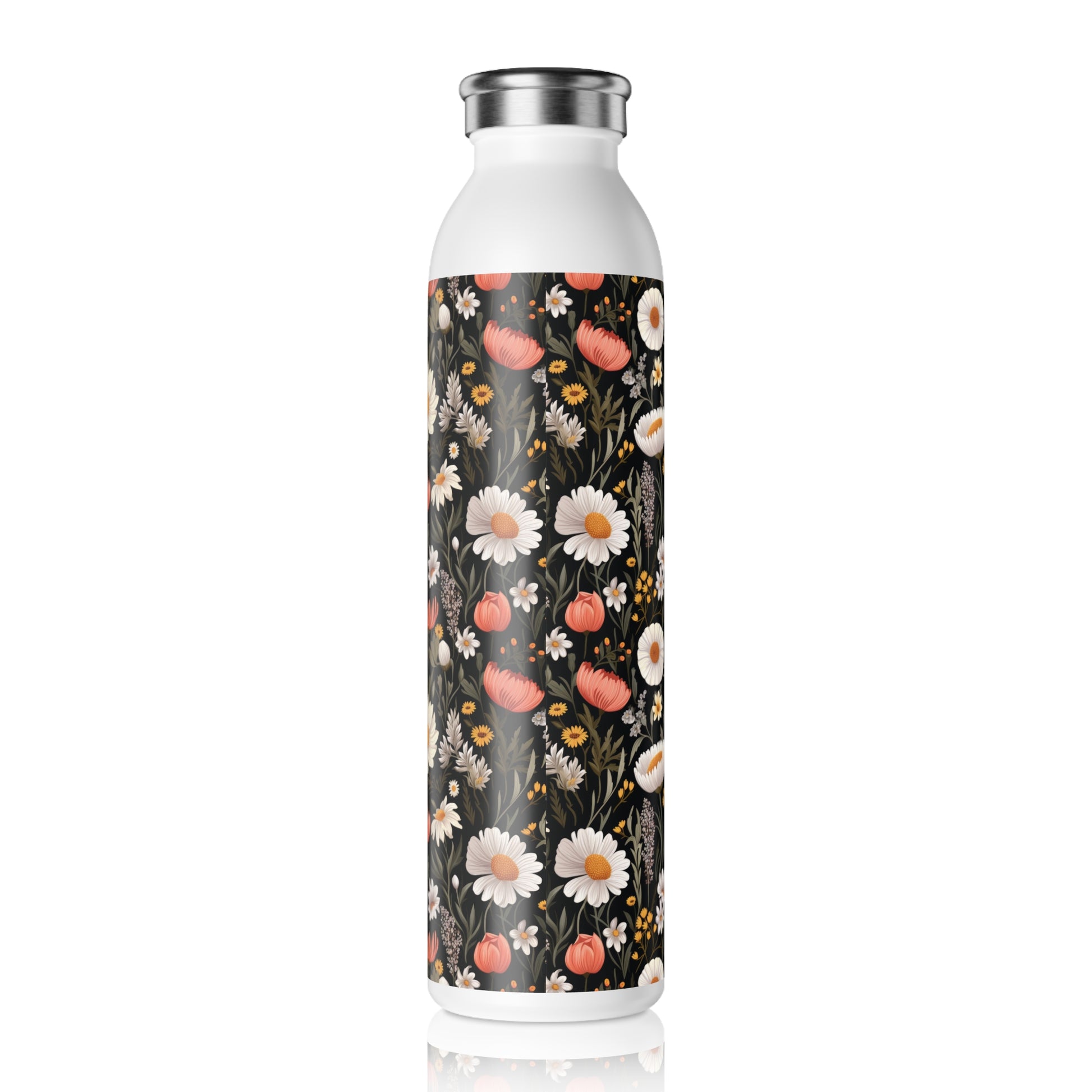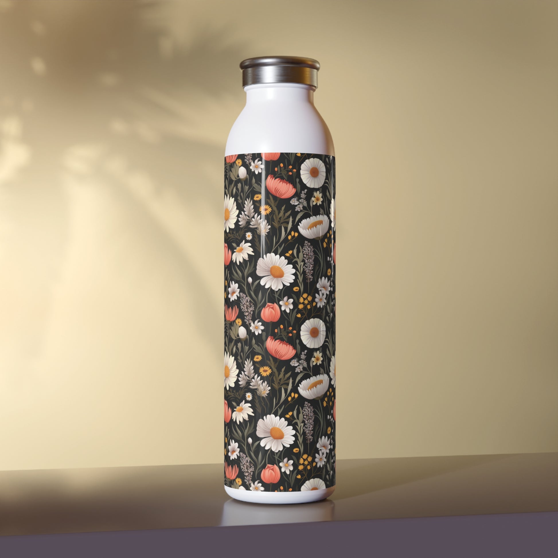 Blossom Elegance: Noir Garden Slim Water Bottle