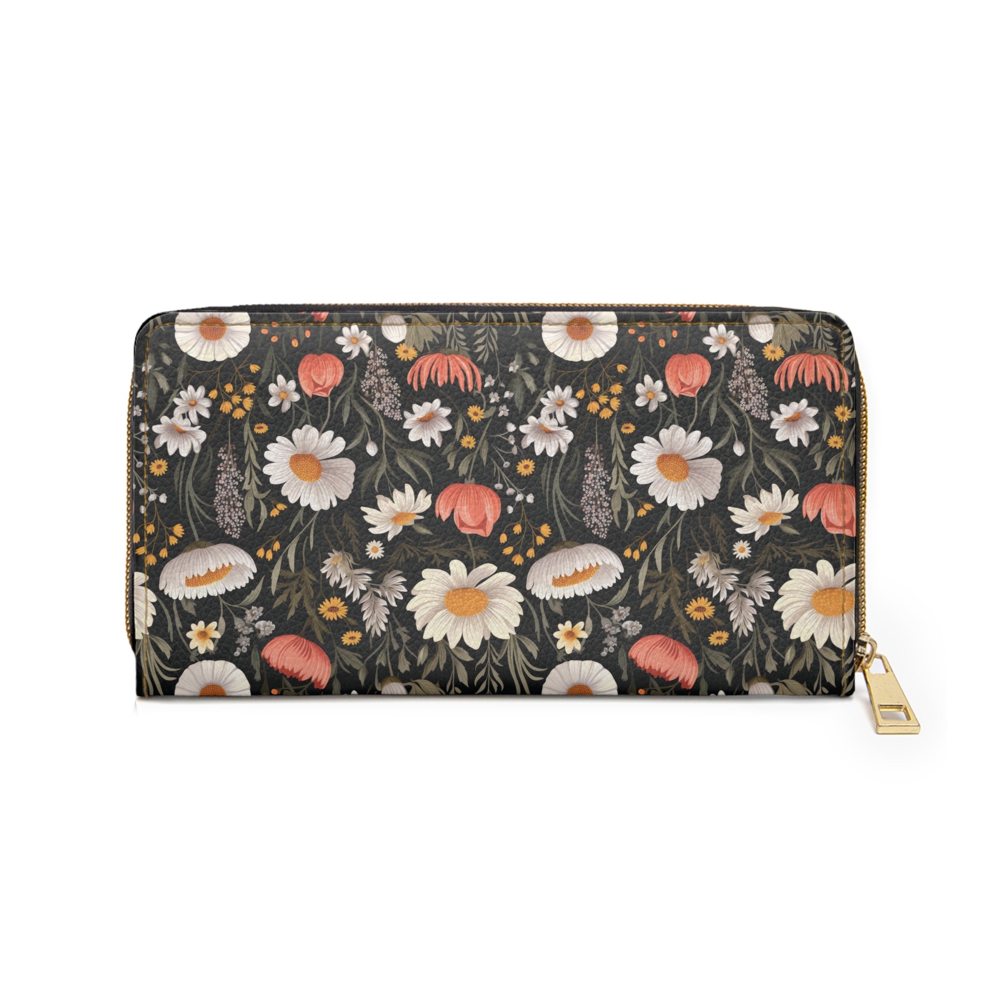 Blossom Elegance: Noir Garden Zipper Wallet, Chic Wallet for Women, Floral Print Purse, Everyday Organizer, Gift for Her, Mother's Day Wallet