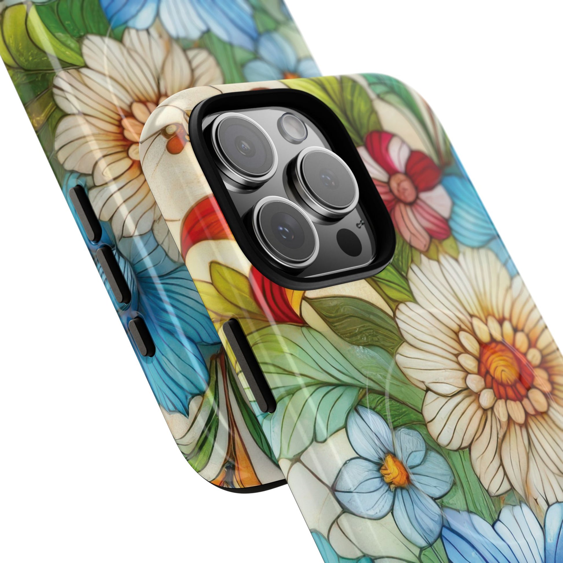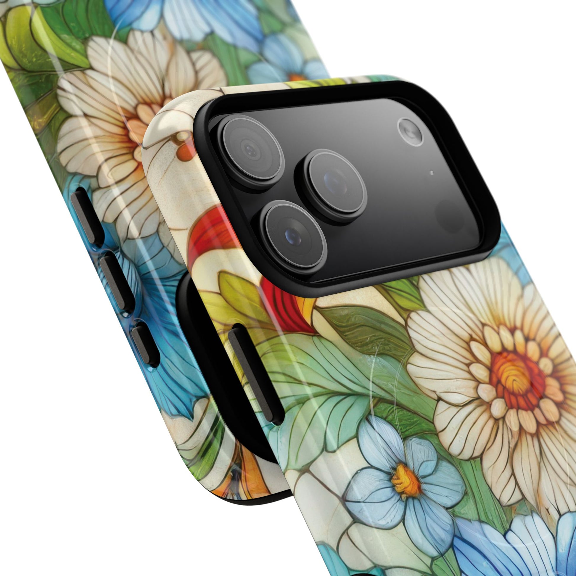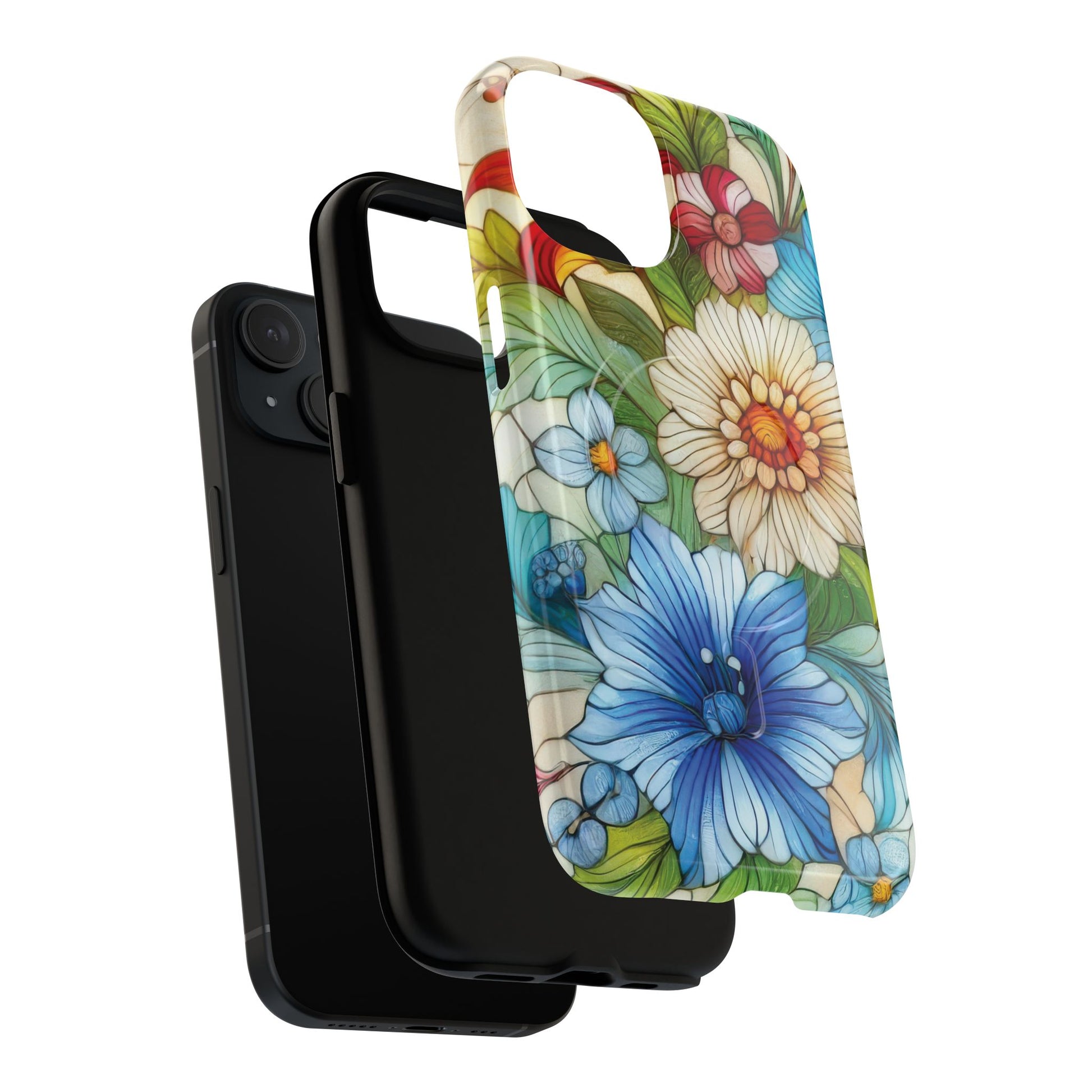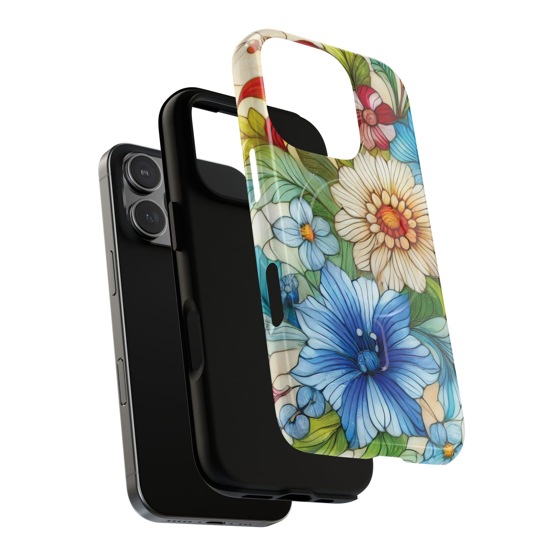 Botanical Radiance Tough iPhone Magnetic Case, Customizable Durable iPhone Cover | Ideal Gift for Nature Lovers, Floral Stained Glass Gift