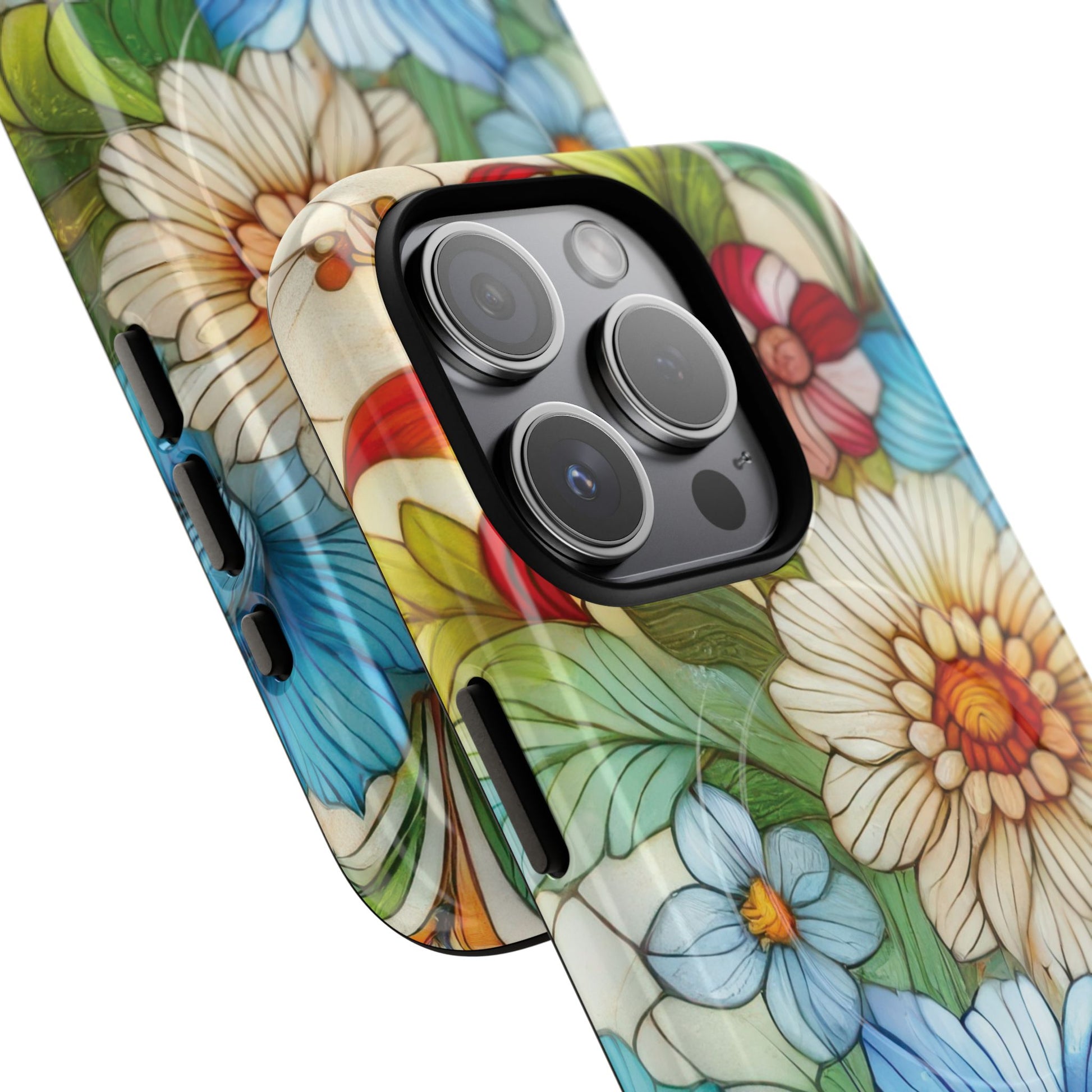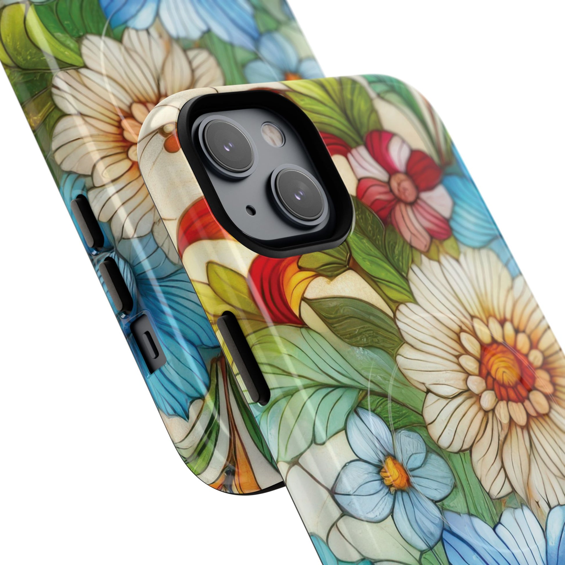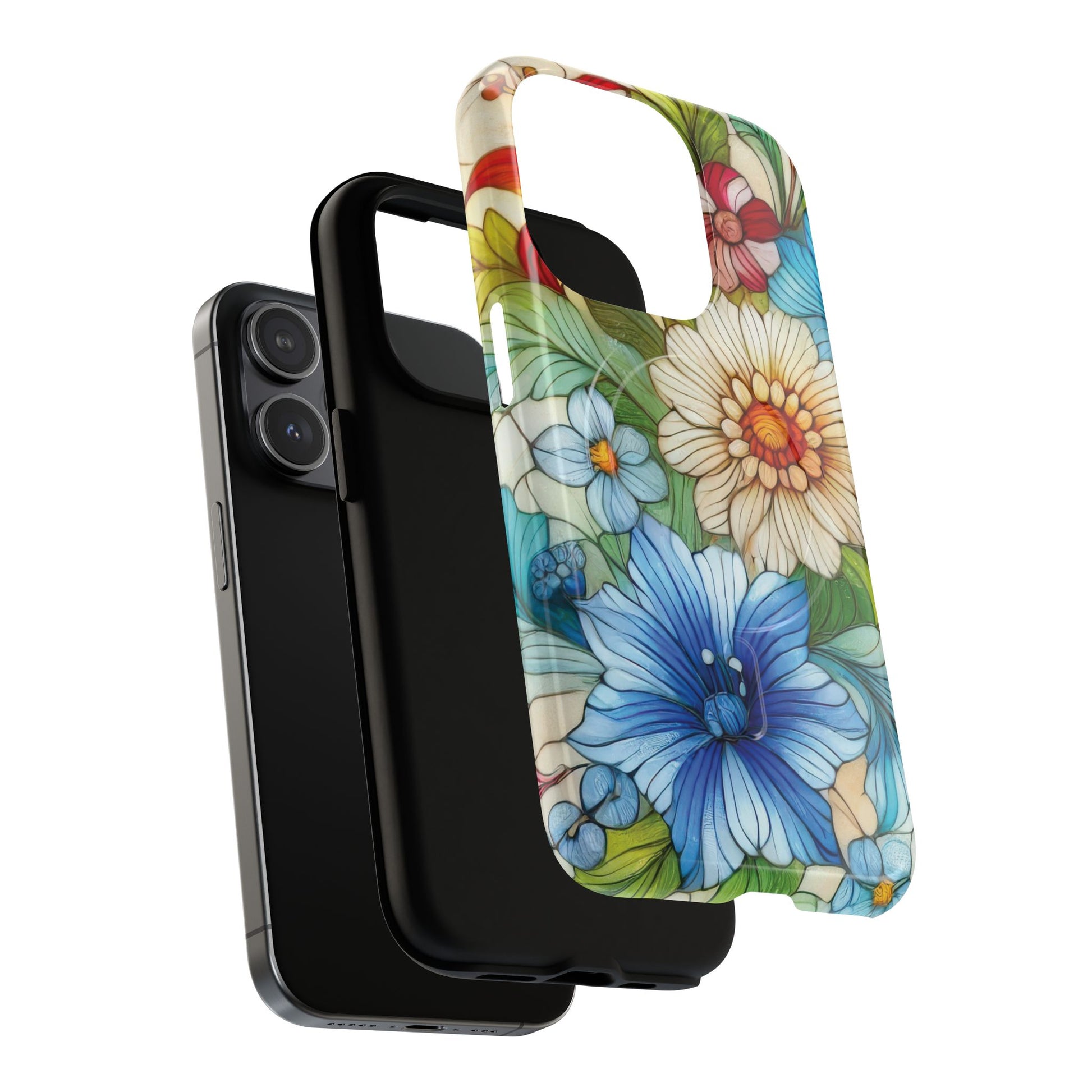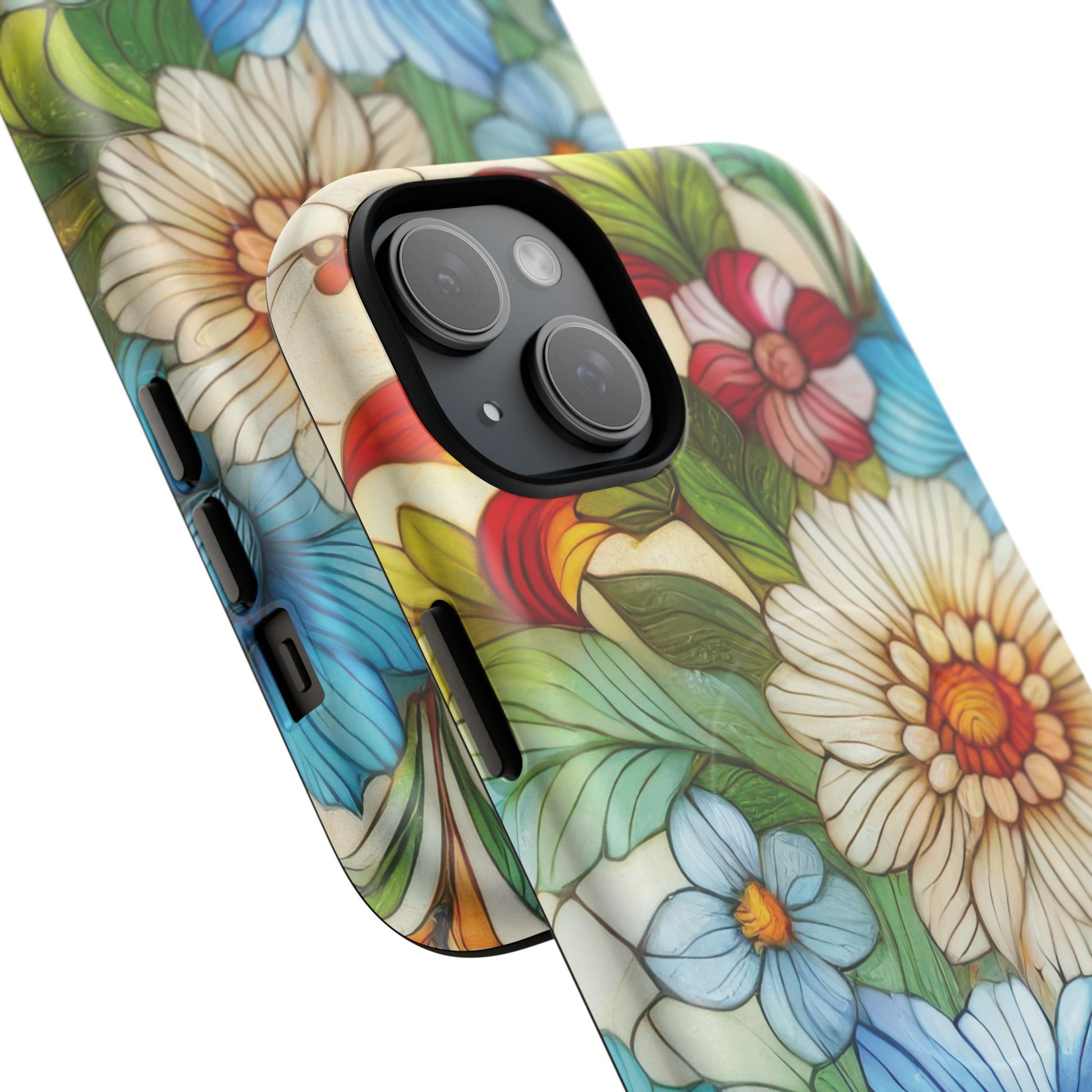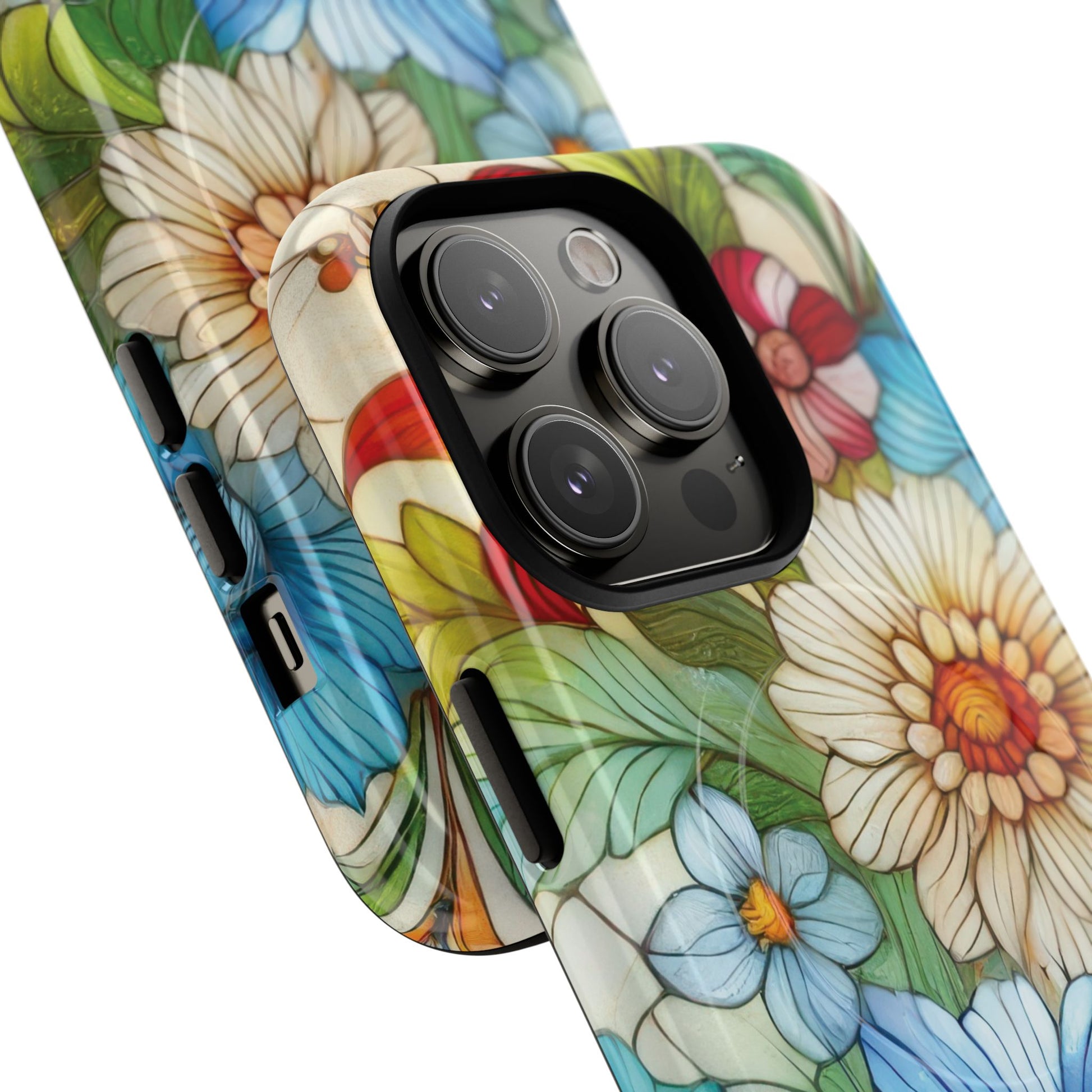 Botanical Radiance Tough iPhone Magnetic Case, Customizable Durable iPhone Cover | Ideal Gift for Nature Lovers, Floral Stained Glass Gift