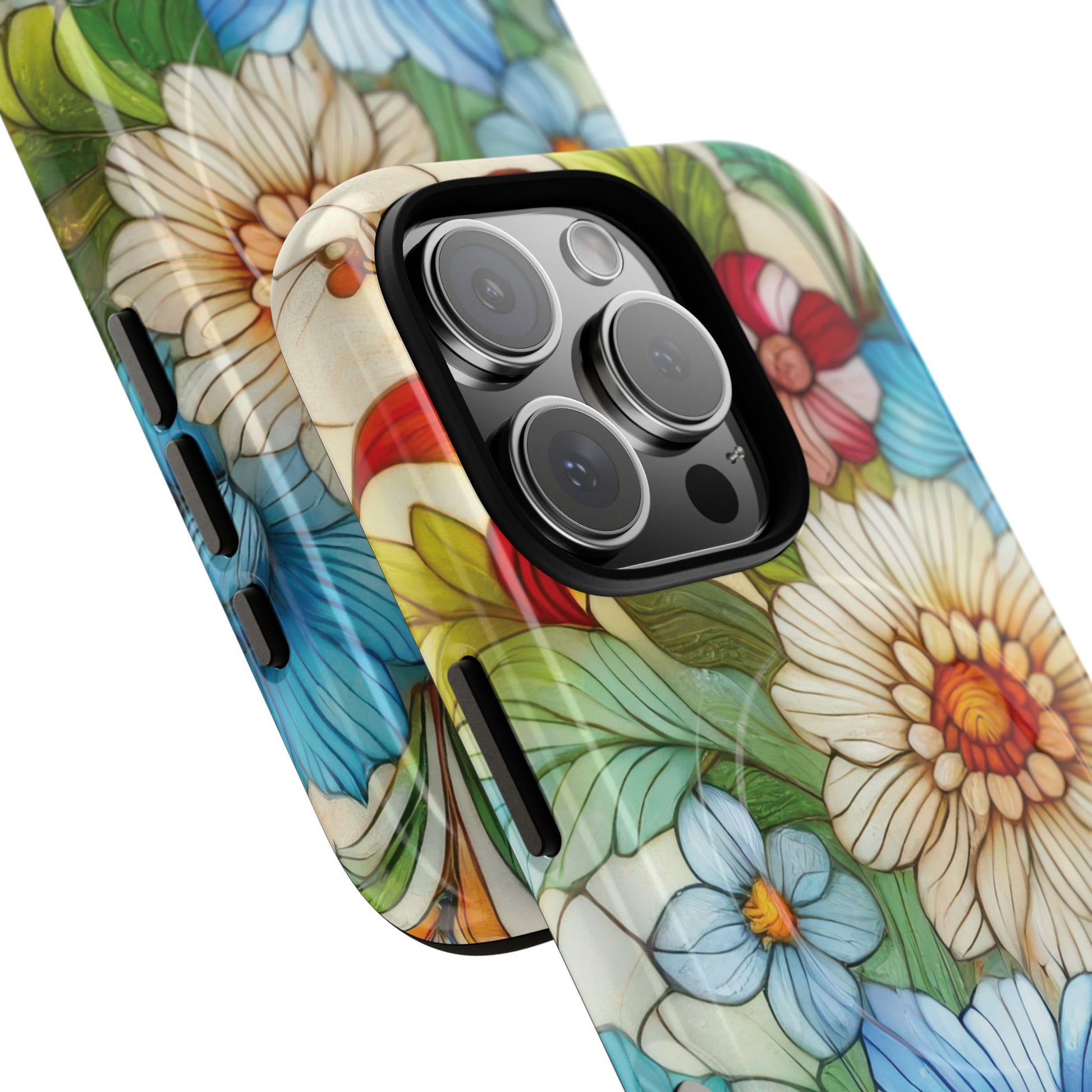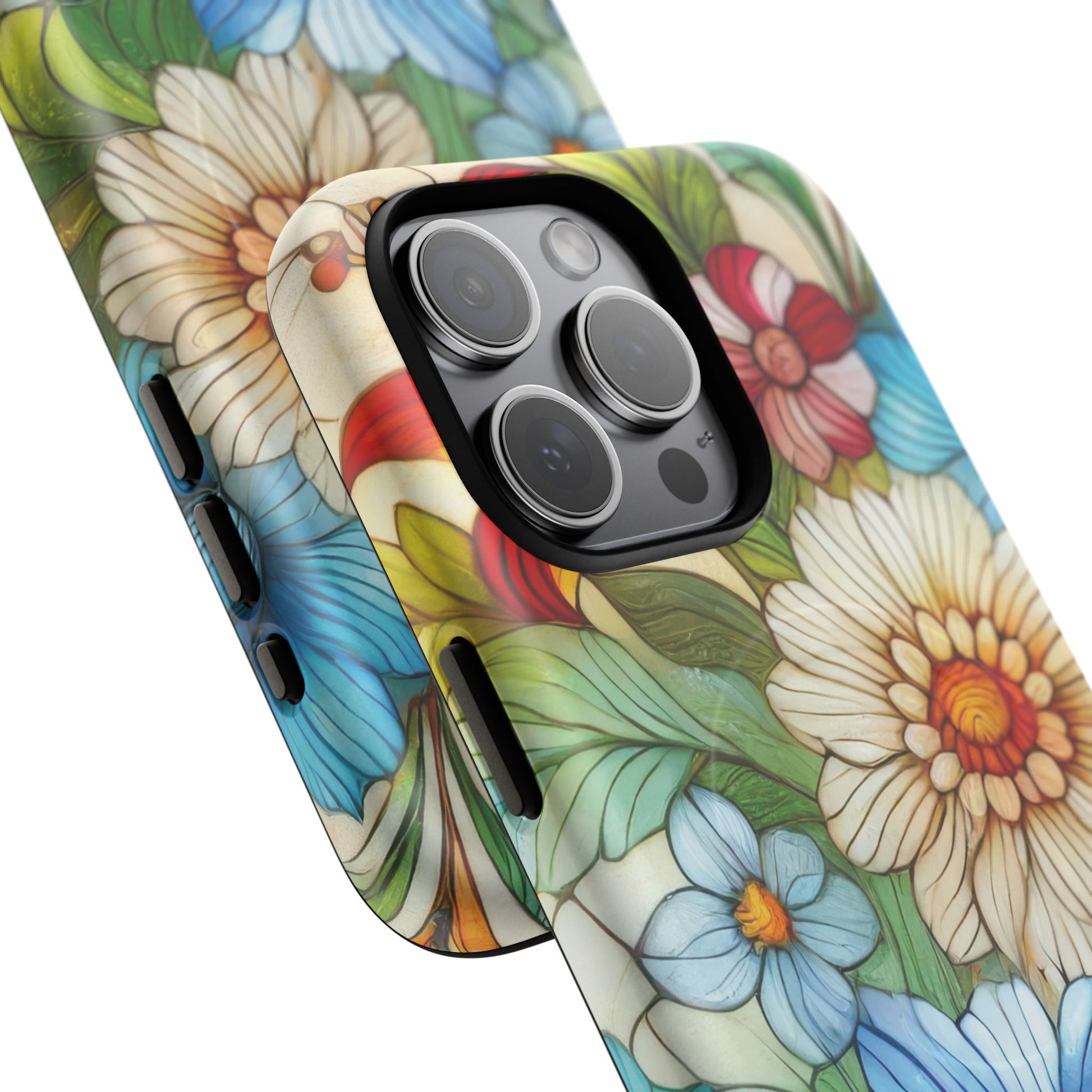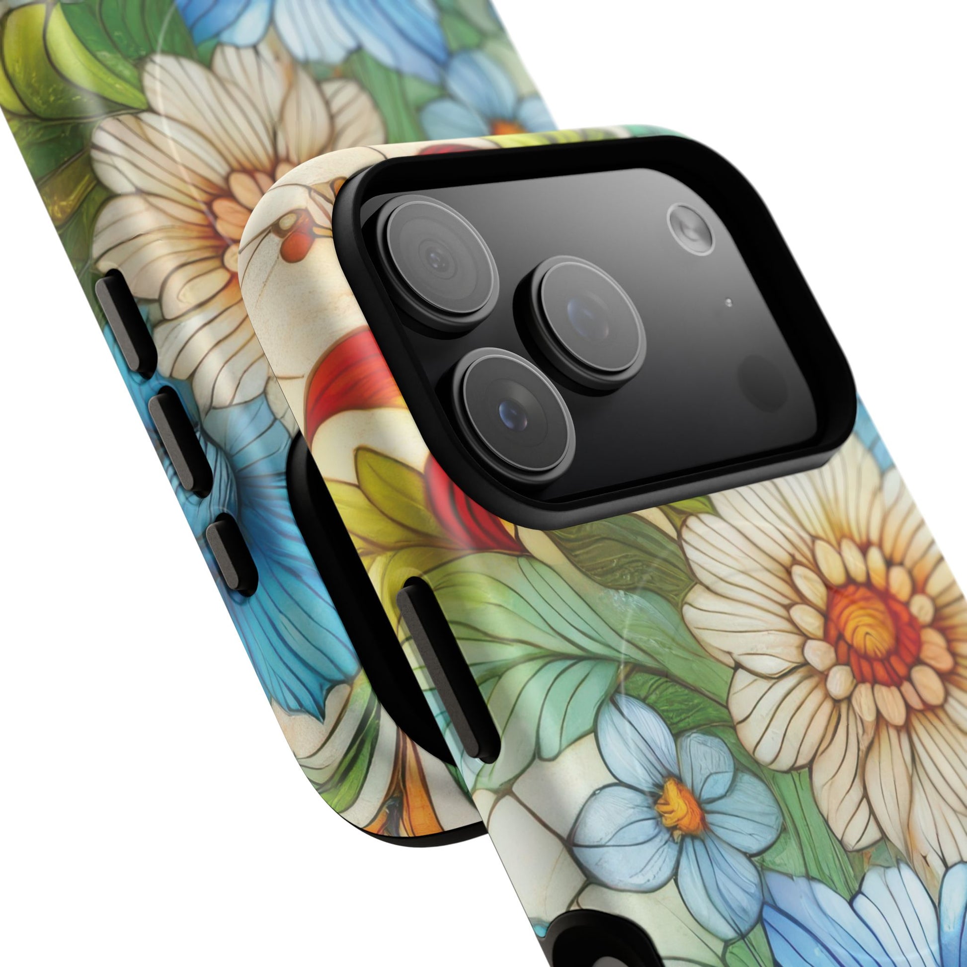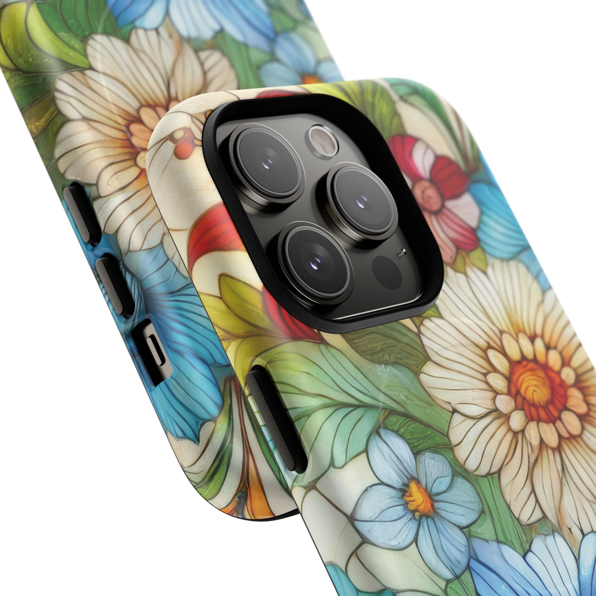 Botanical Radiance Tough iPhone Magnetic Case, Customizable Durable iPhone Cover | Ideal Gift for Nature Lovers, Floral Stained Glass Gift