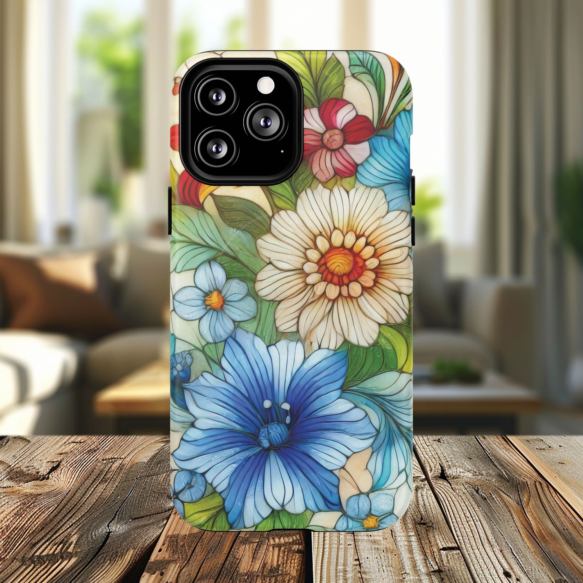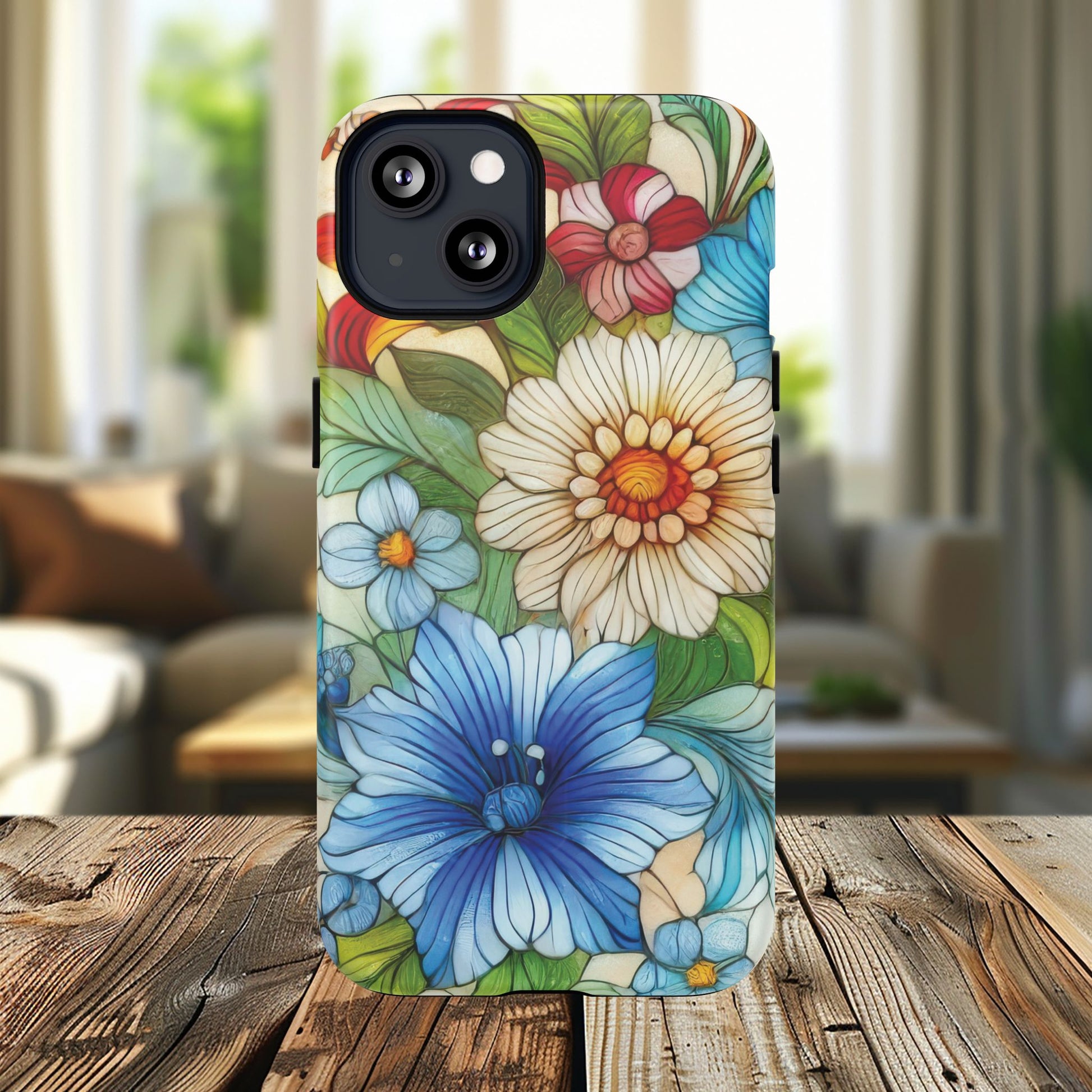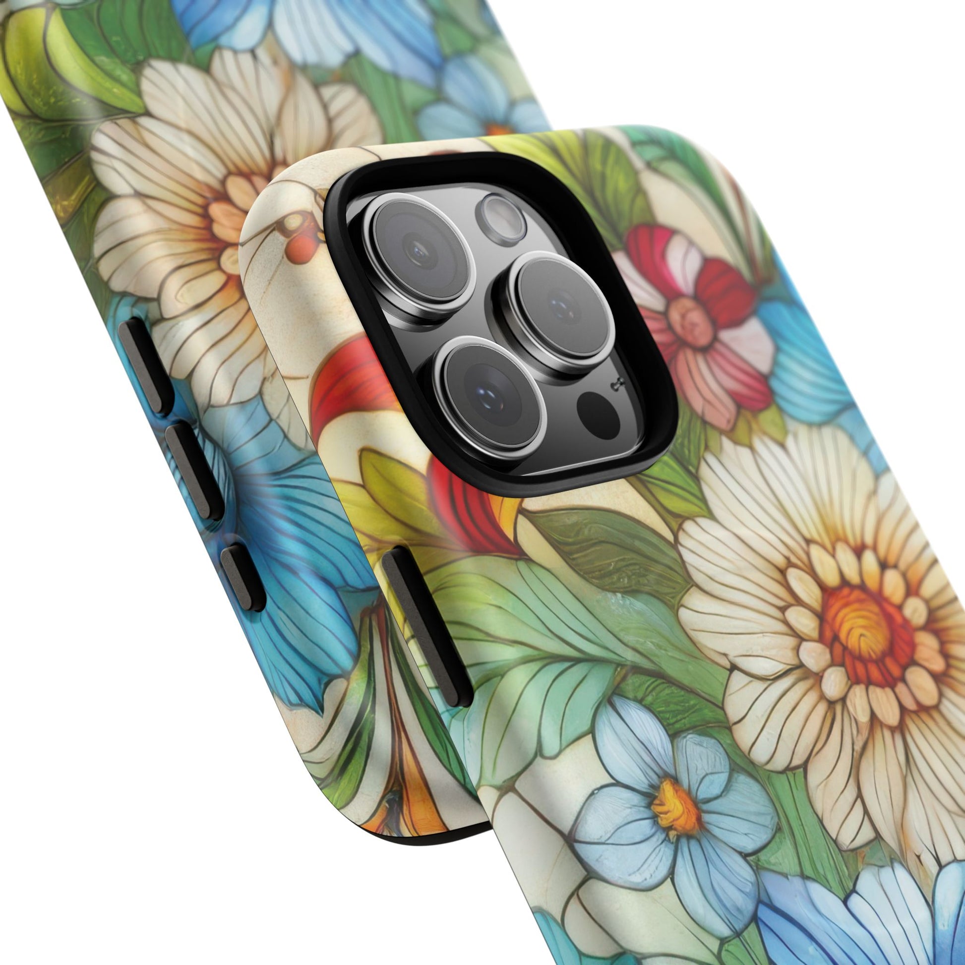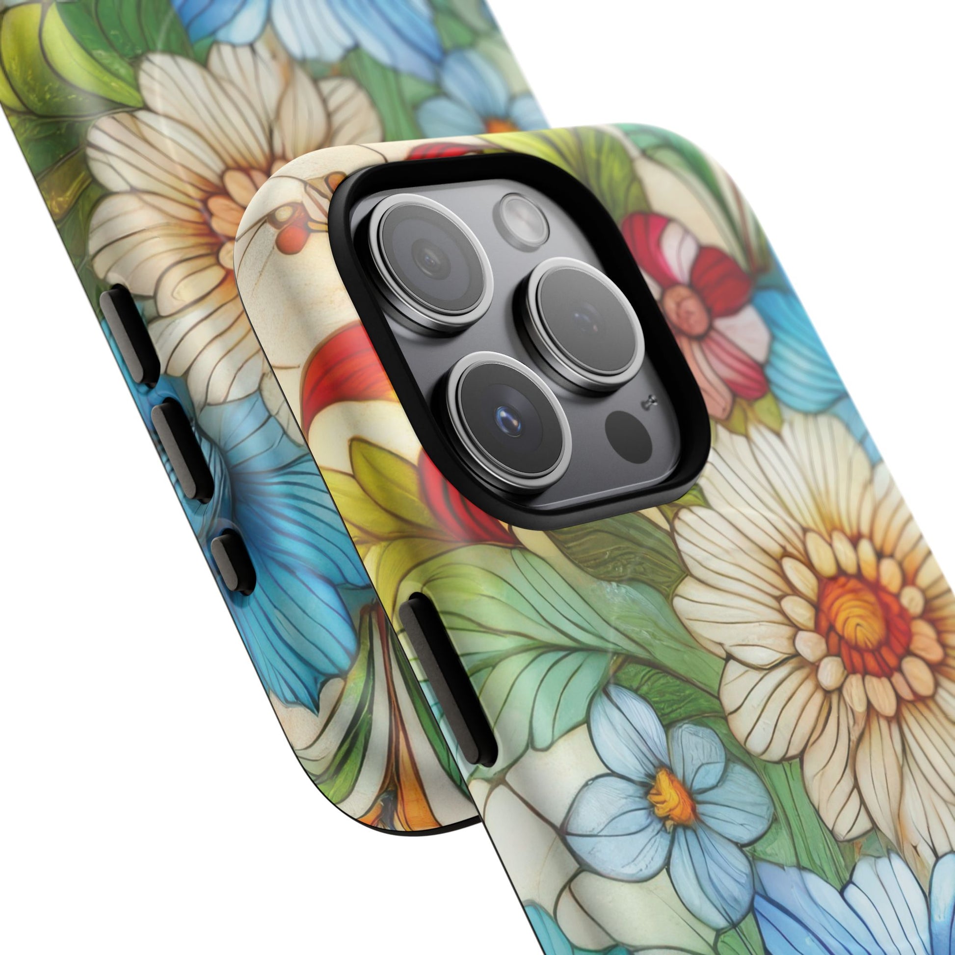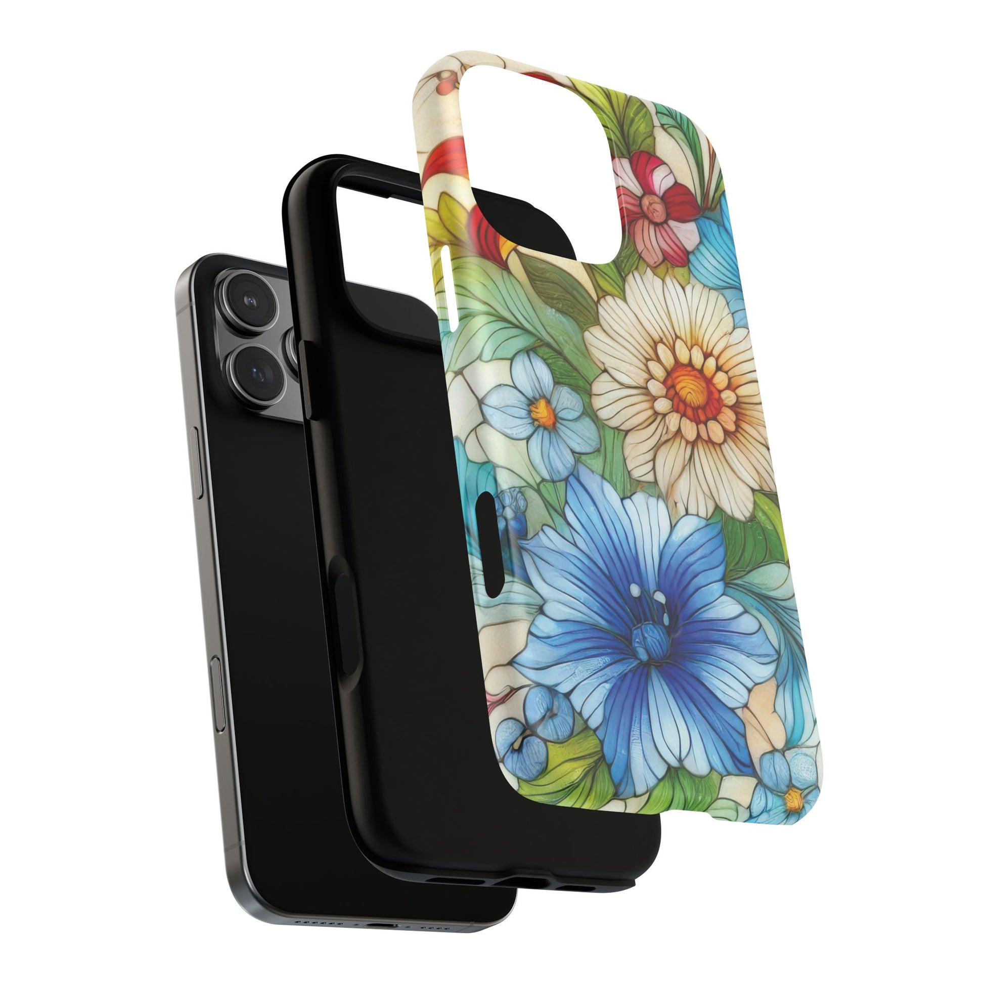 Botanical Radiance Tough iPhone Magnetic Case, Customizable Durable iPhone Cover | Ideal Gift for Nature Lovers, Floral Stained Glass Gift