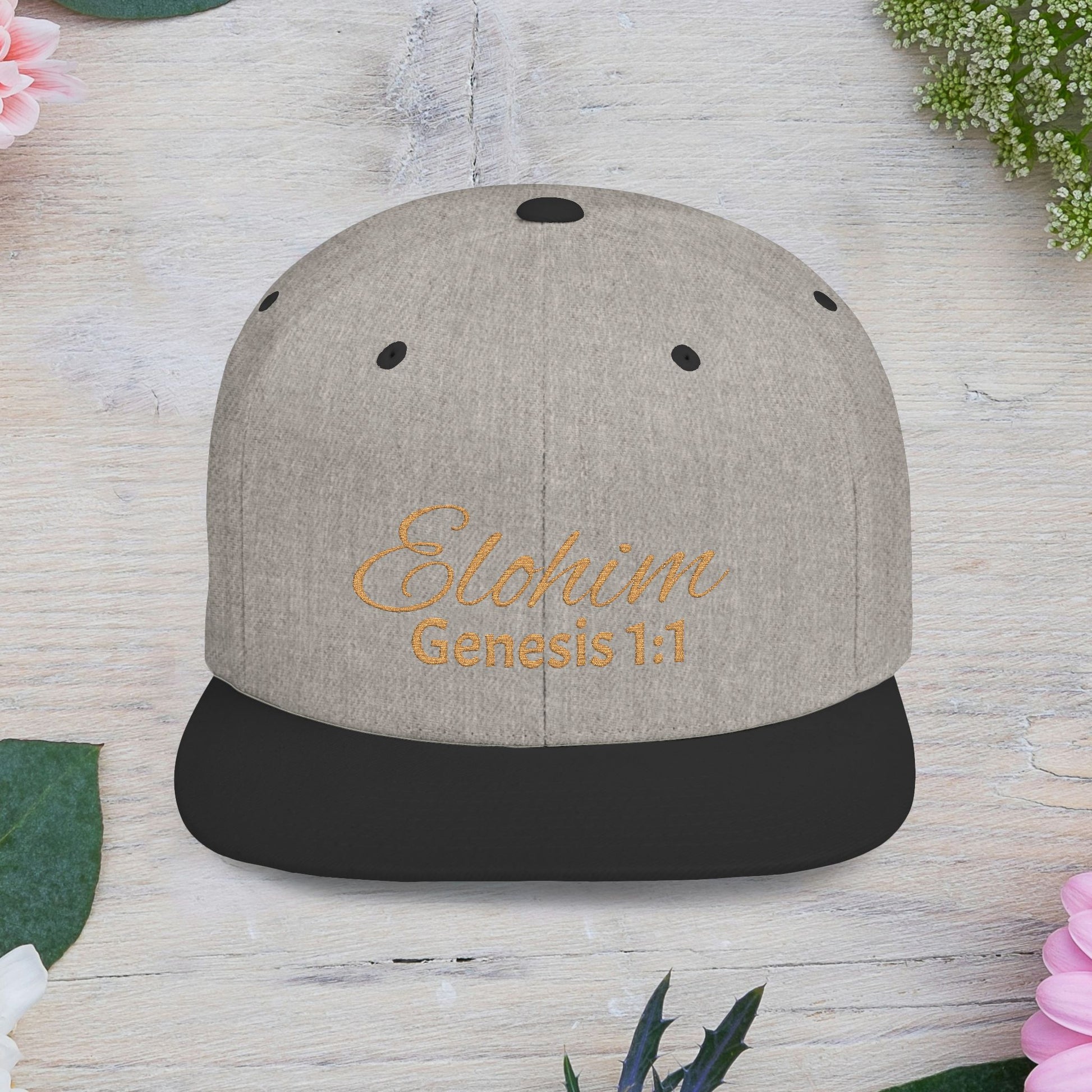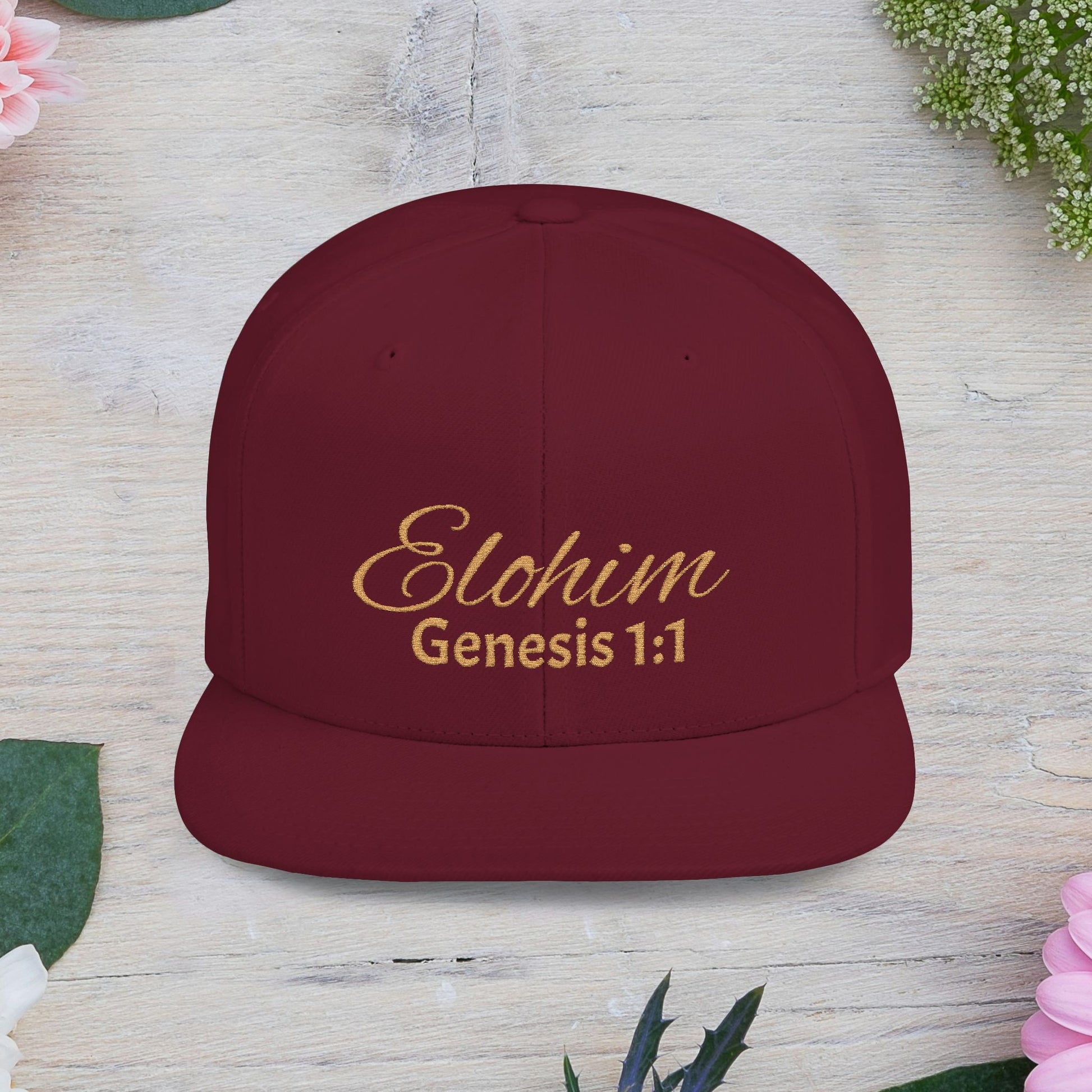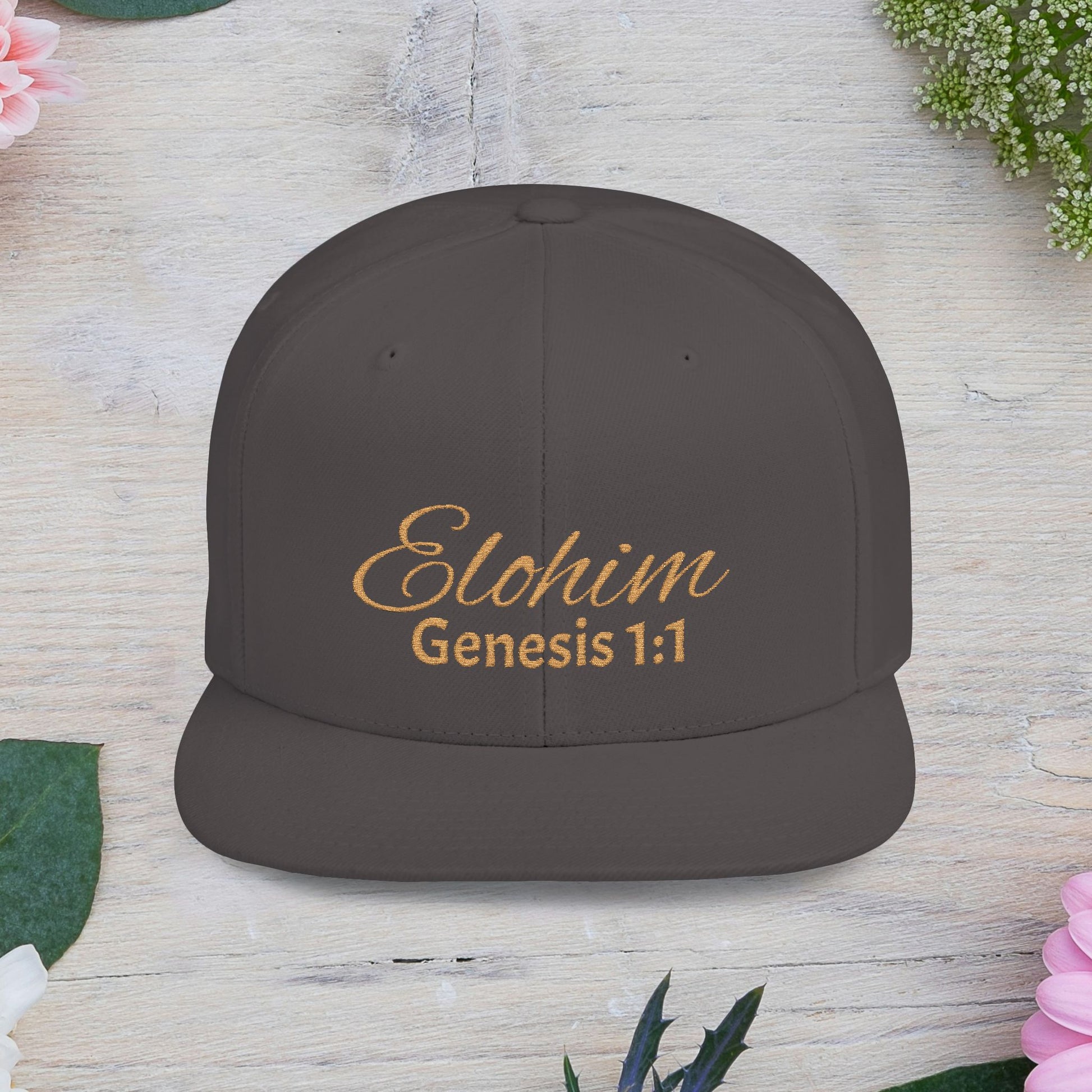 Brown Script 'Elohim' Snapback Cap - Faith-Inspired Flat Bill Hat, Baseball Hat, Perfect for Gifts, Daily Wear, Spiritual Events