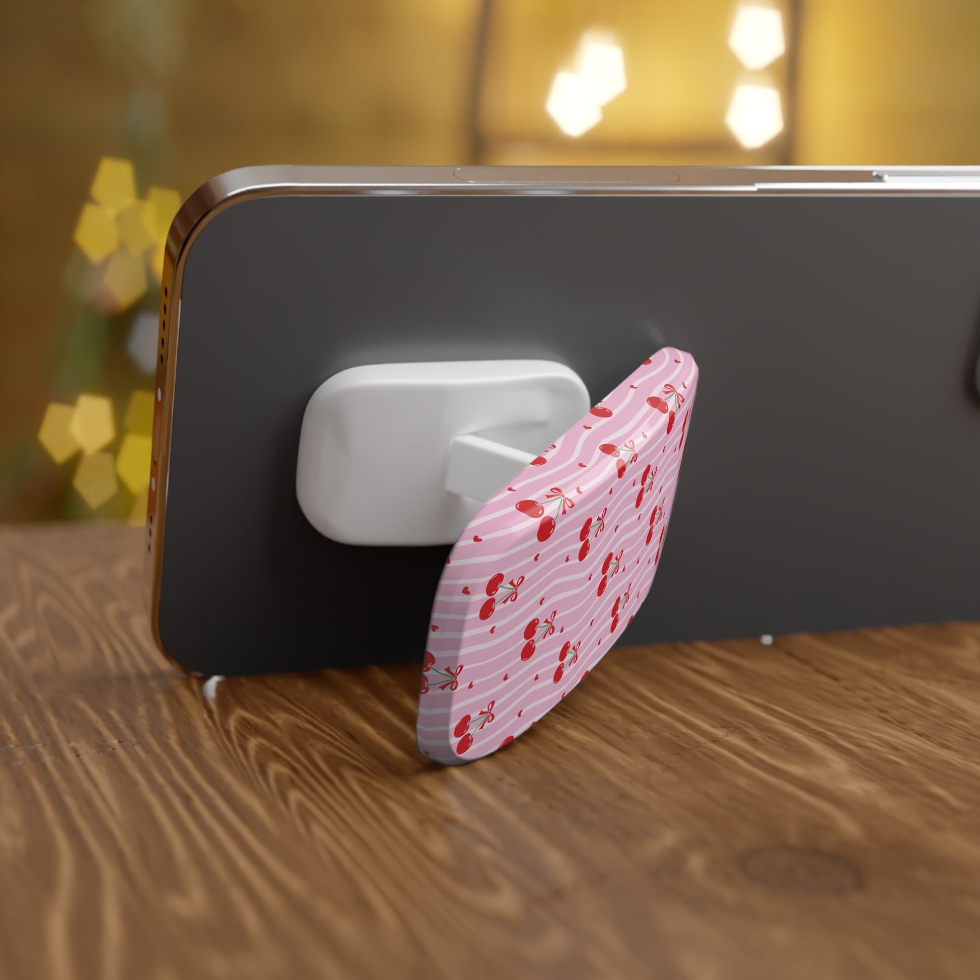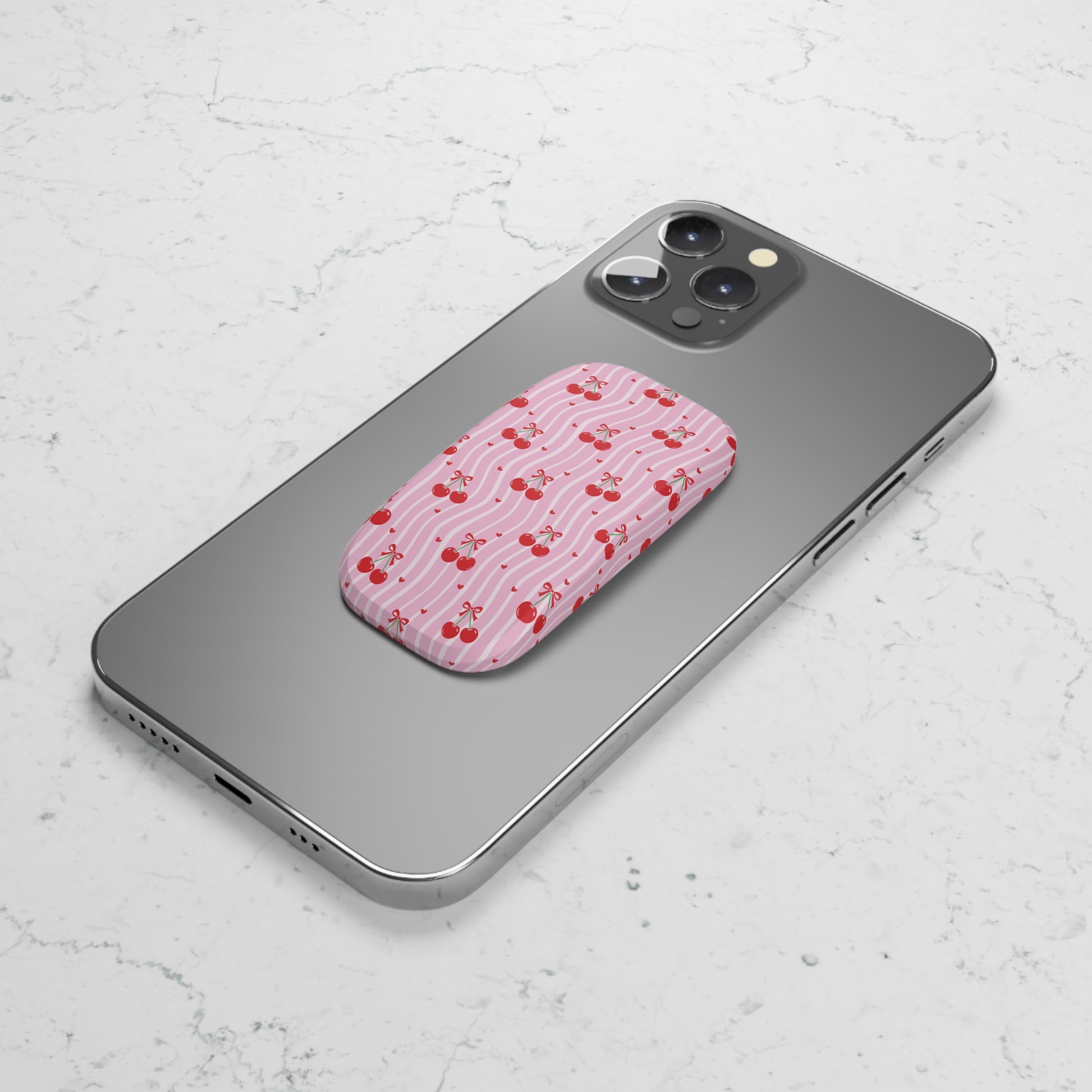 Cherry Blossom Dreams Phone Grip — Pink Retro Cherry Click-On Stand