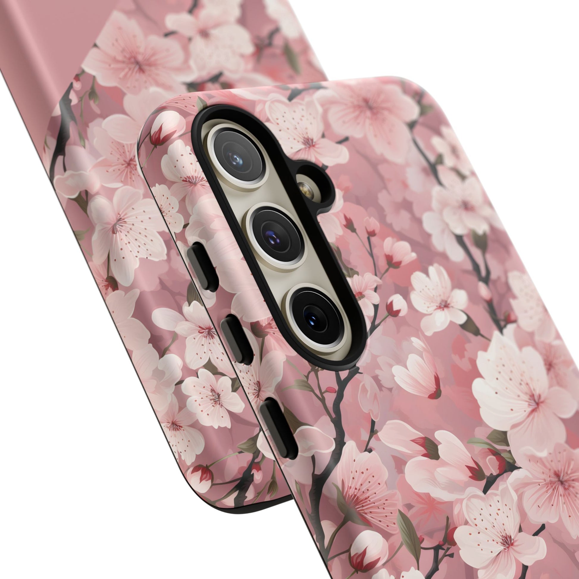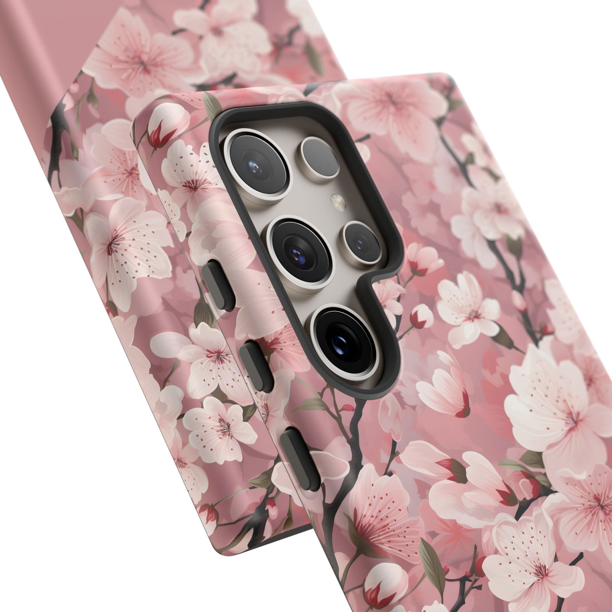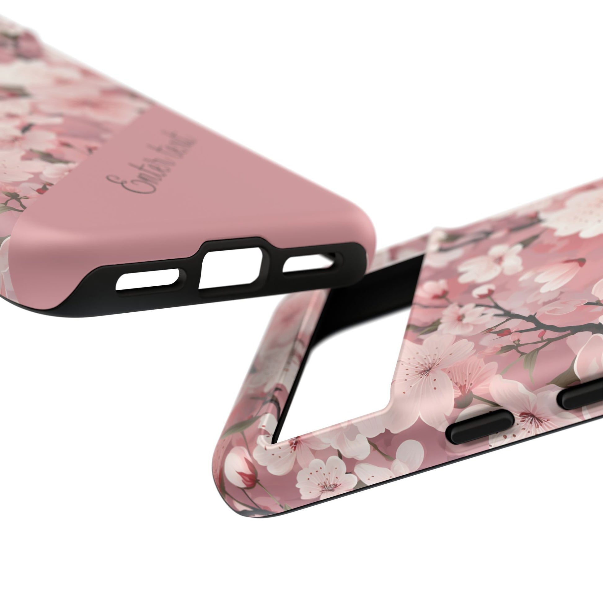 Cherry blossom petals drift across a dark, protective shell — a small moment of spring tucked into your daily carry. This tough phone case combines a delicate floral pattern with rugged, dual-layer defense so you can move through city streets, crowded trains, or weekend getaways without worrying about dings. The silicone-lined interior cushions impacts while the polycarbonate outer shell resists scratches and weathering. Select matte for a muted, velvety look or glossy to make the pinks pop. Wireless charging works without removing the case, and ports stay fully accessible. It’s craftsmanship from Korea that lets you keep a gentle, floral touch on a phone that lives a busy life.