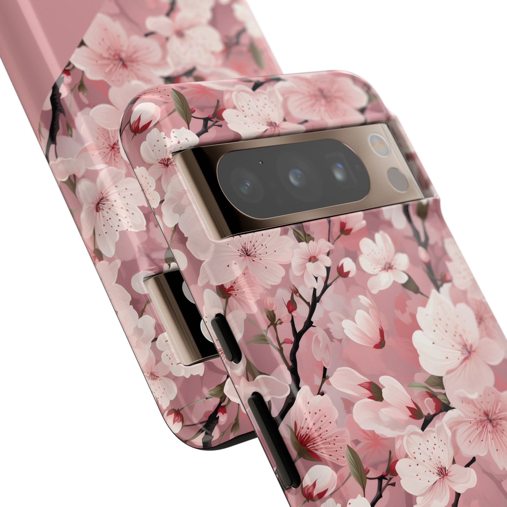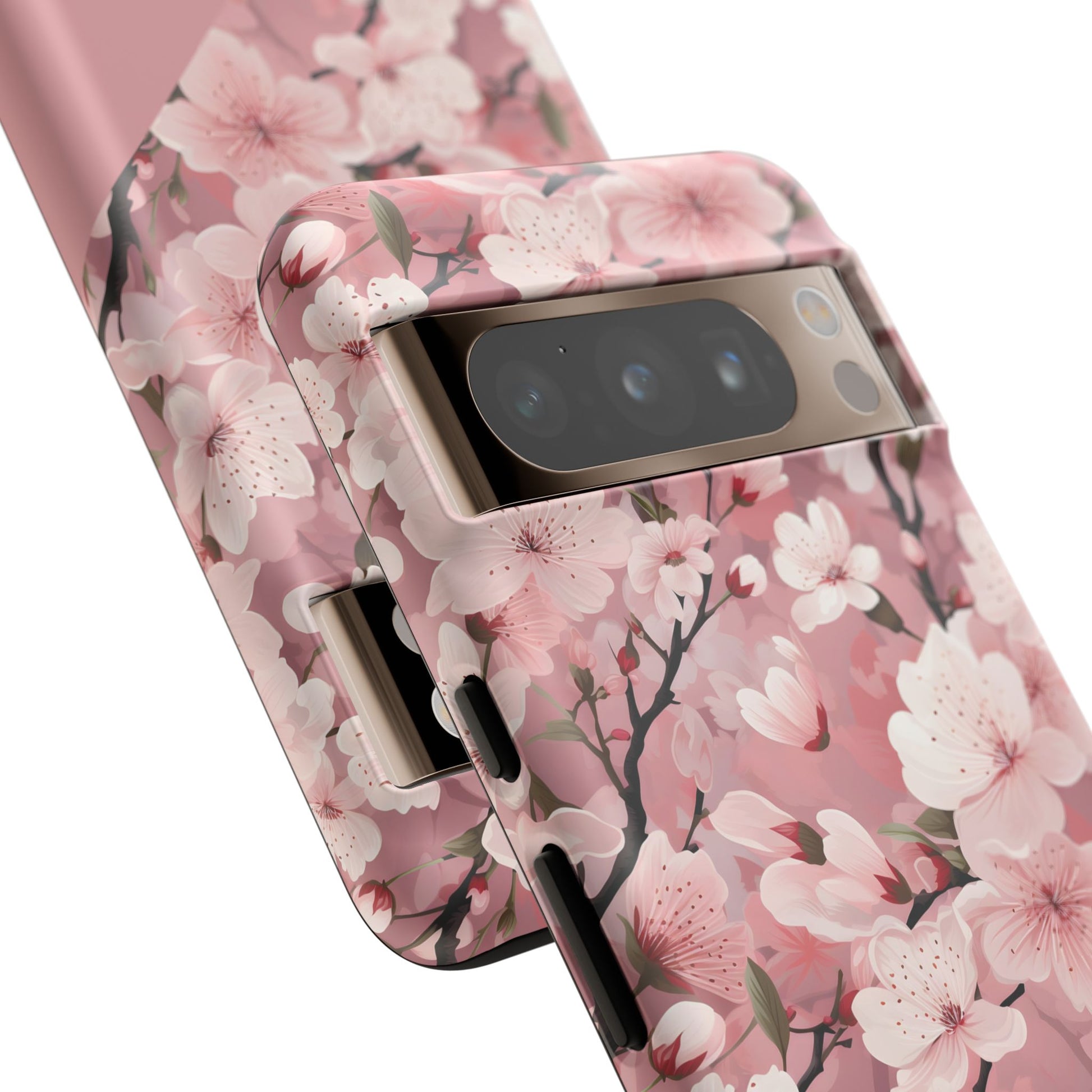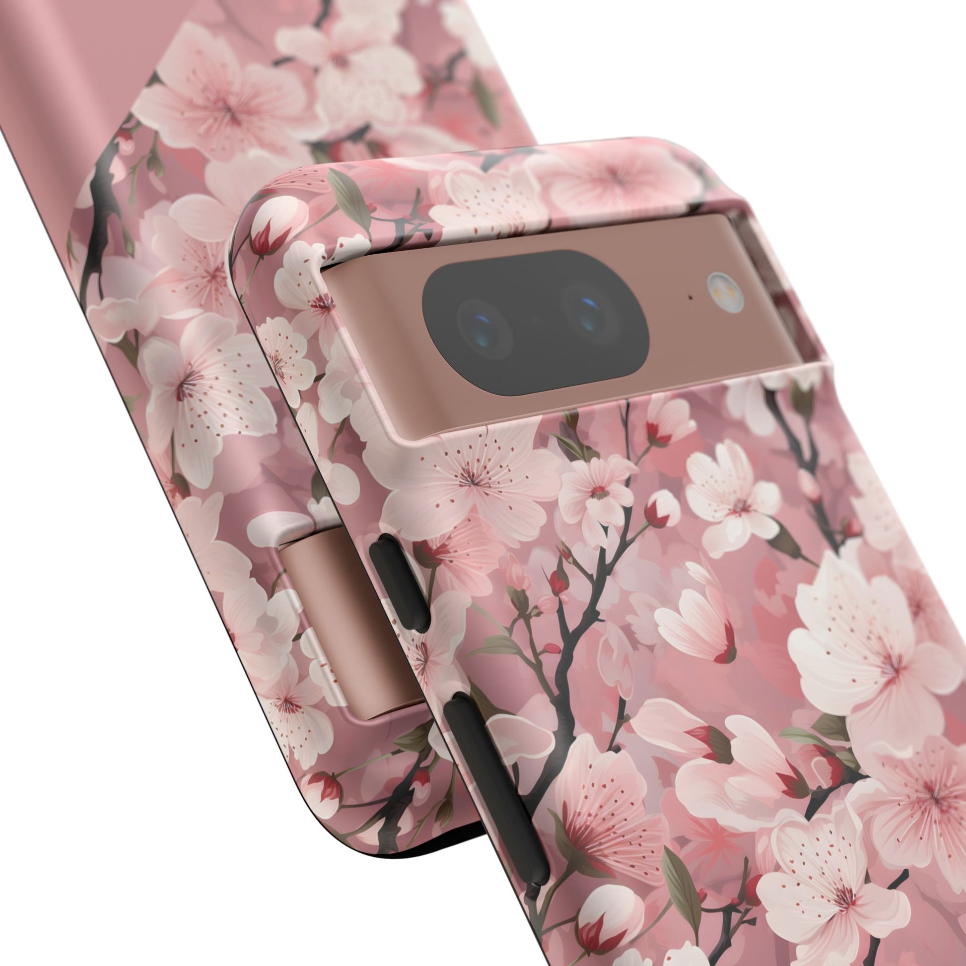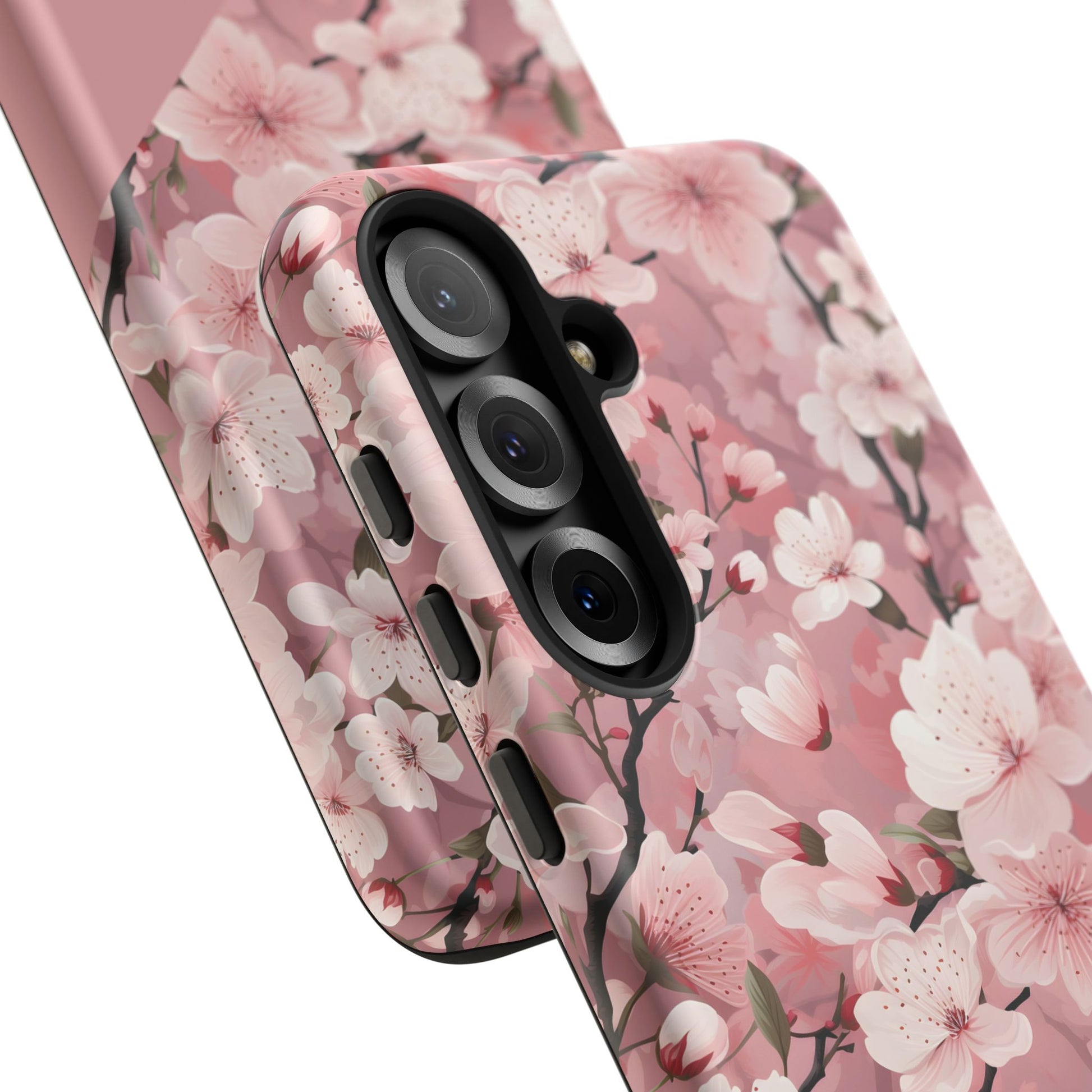 Cherry blossom petals drift across a dark, protective shell — a small moment of spring tucked into your daily carry. This tough phone case combines a delicate floral pattern with rugged, dual-layer defense so you can move through city streets, crowded trains, or weekend getaways without worrying about dings. The silicone-lined interior cushions impacts while the polycarbonate outer shell resists scratches and weathering. Select matte for a muted, velvety look or glossy to make the pinks pop. Wireless charging works without removing the case, and ports stay fully accessible. It’s craftsmanship from Korea that lets you keep a gentle, floral touch on a phone that lives a busy life.