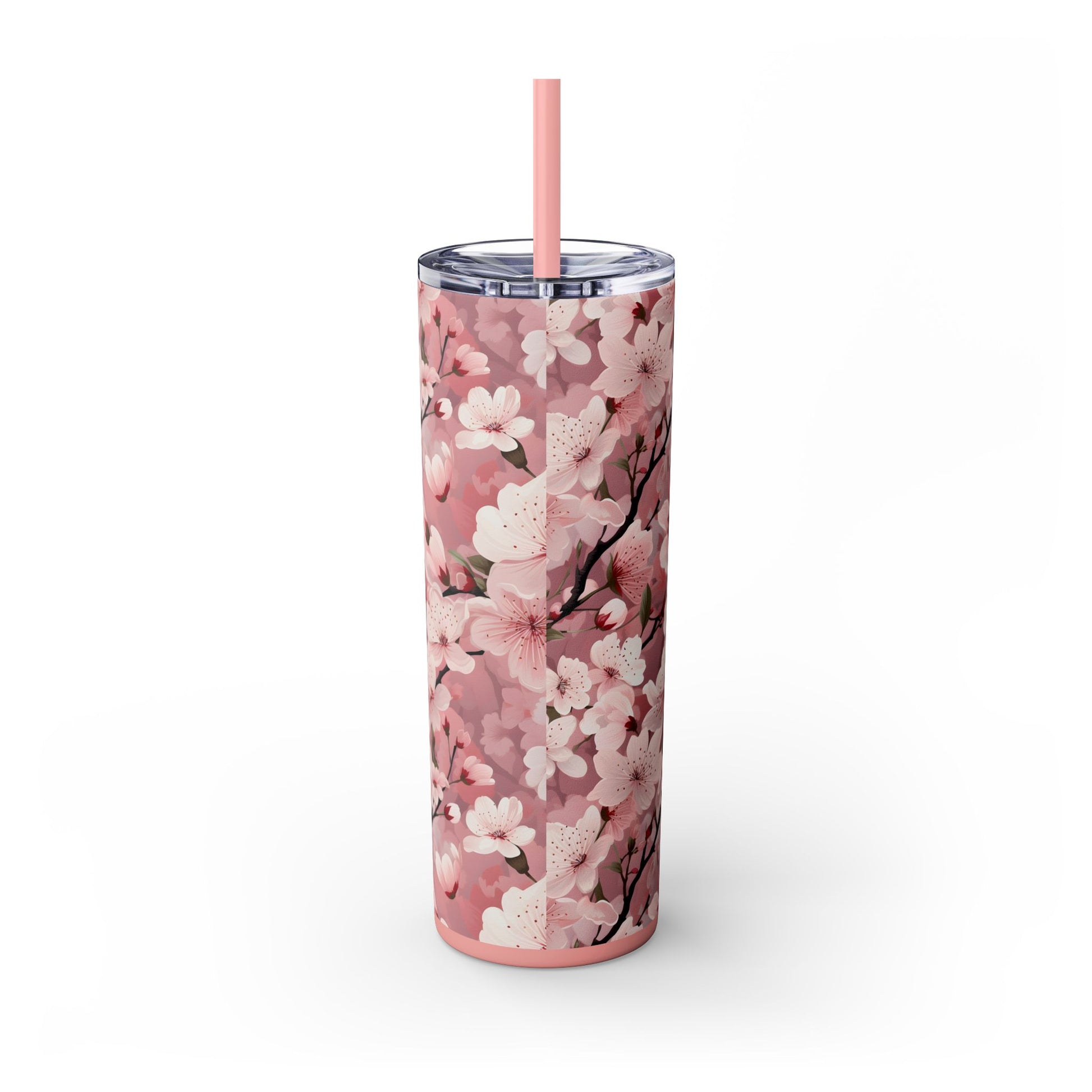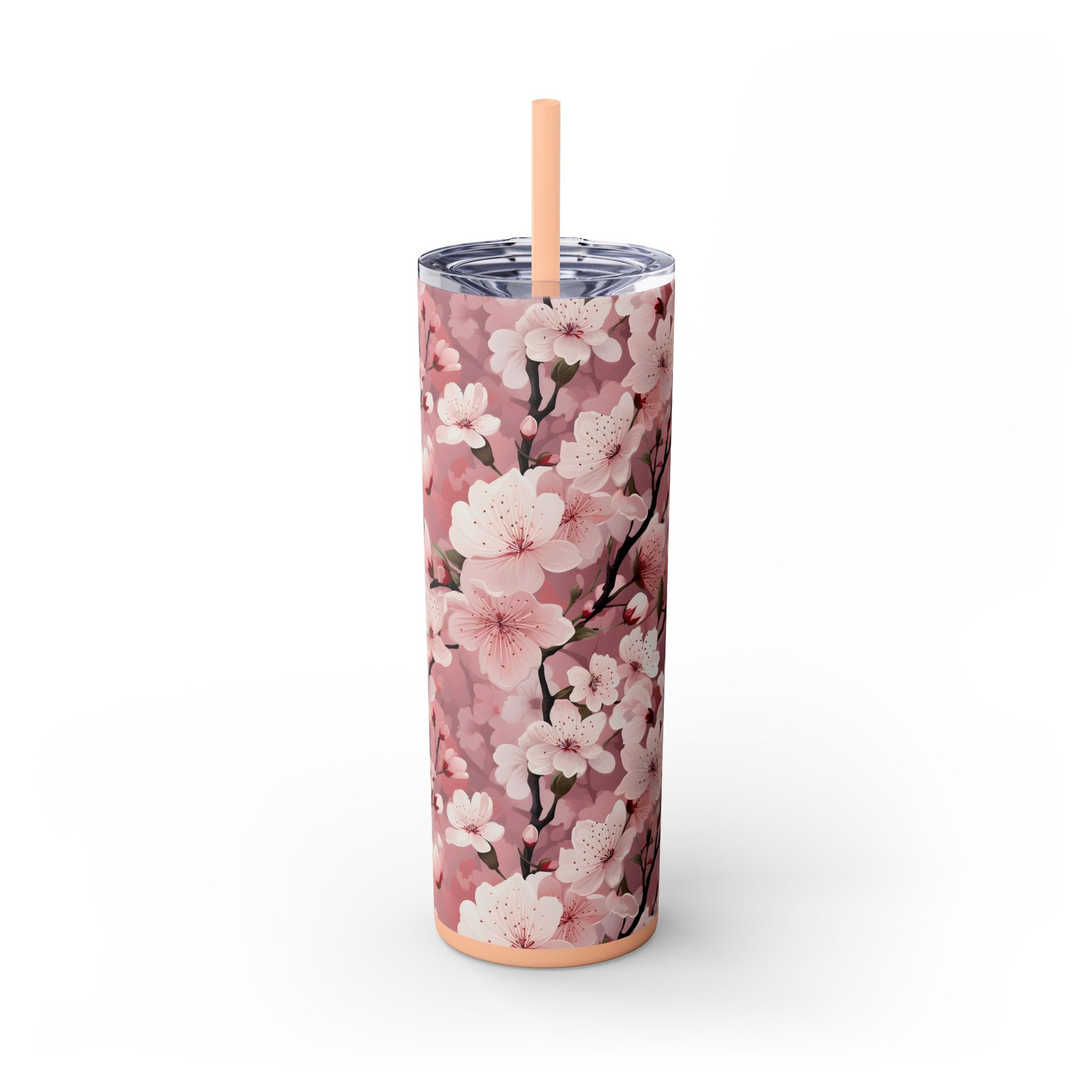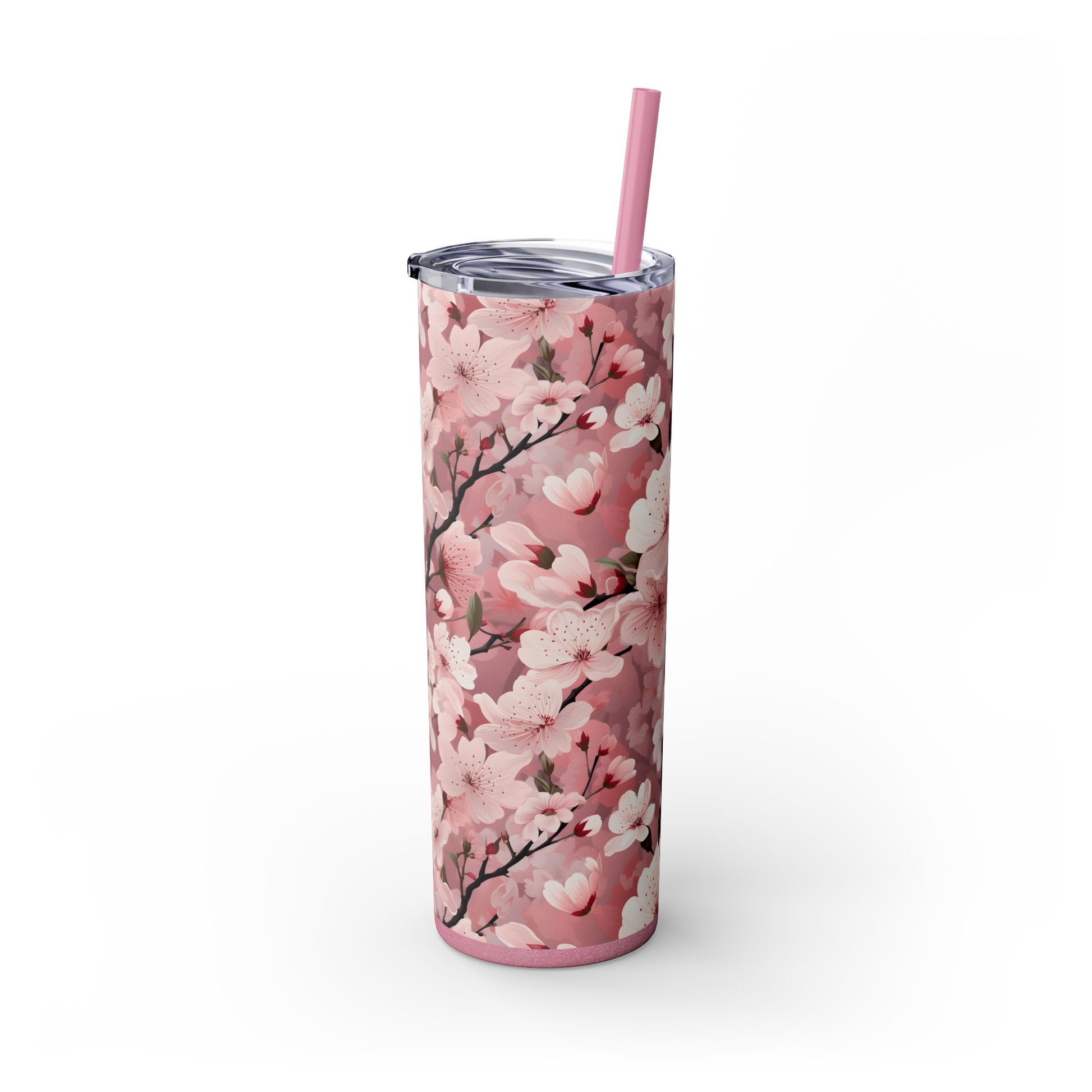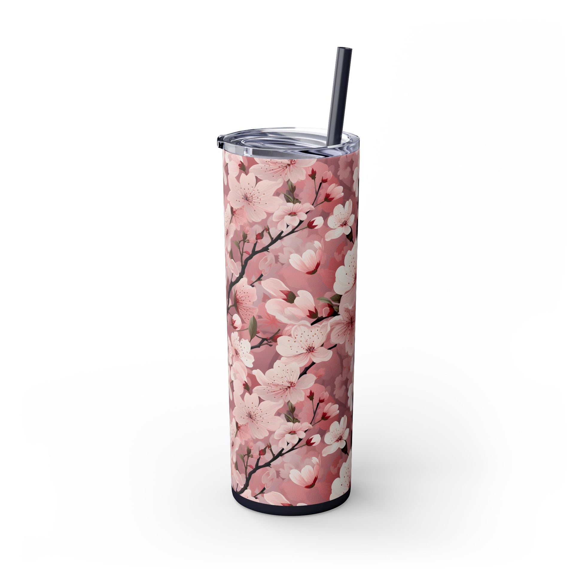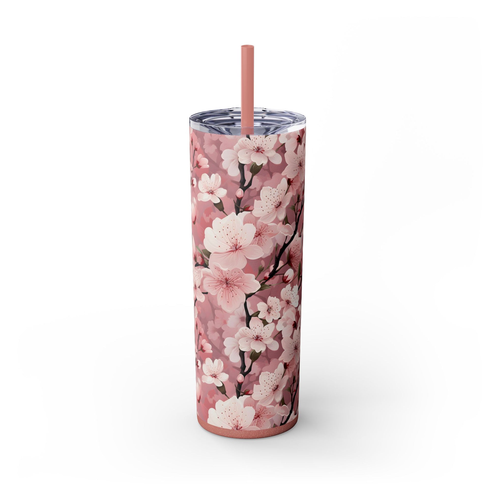 Cherry Blossom Skinny Tumbler with Straw - 20oz Floral Drinkware