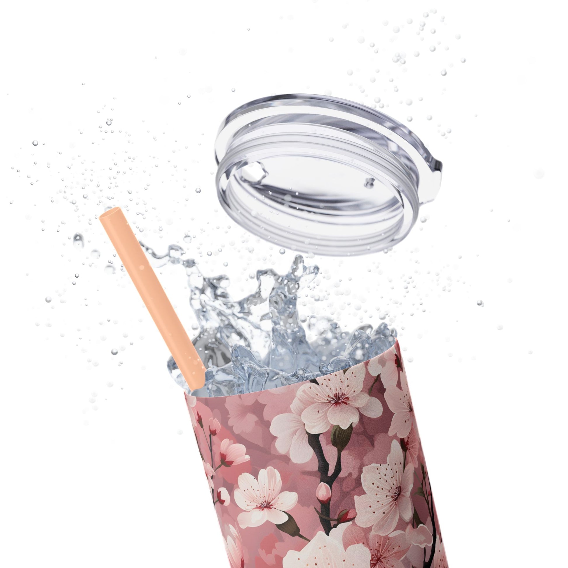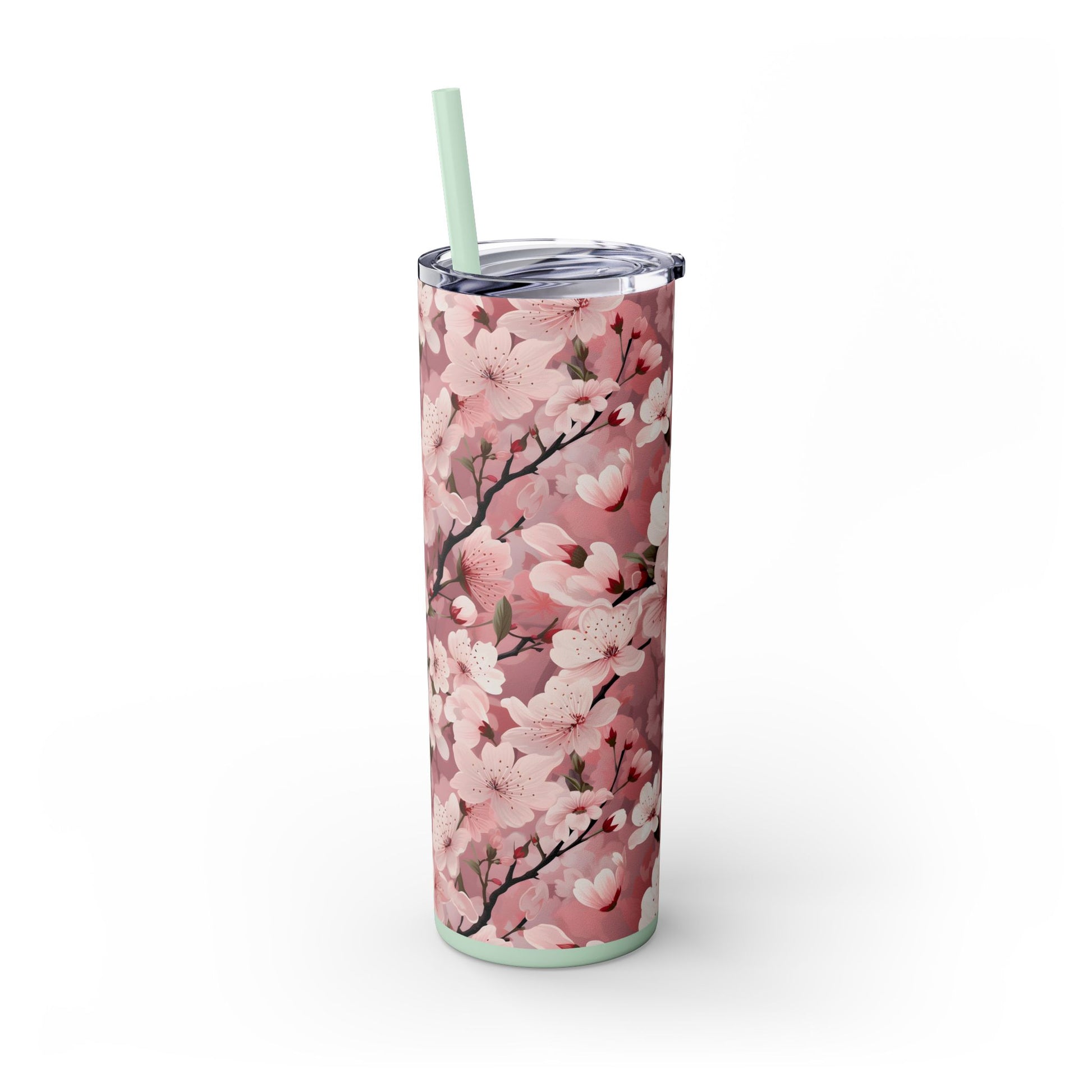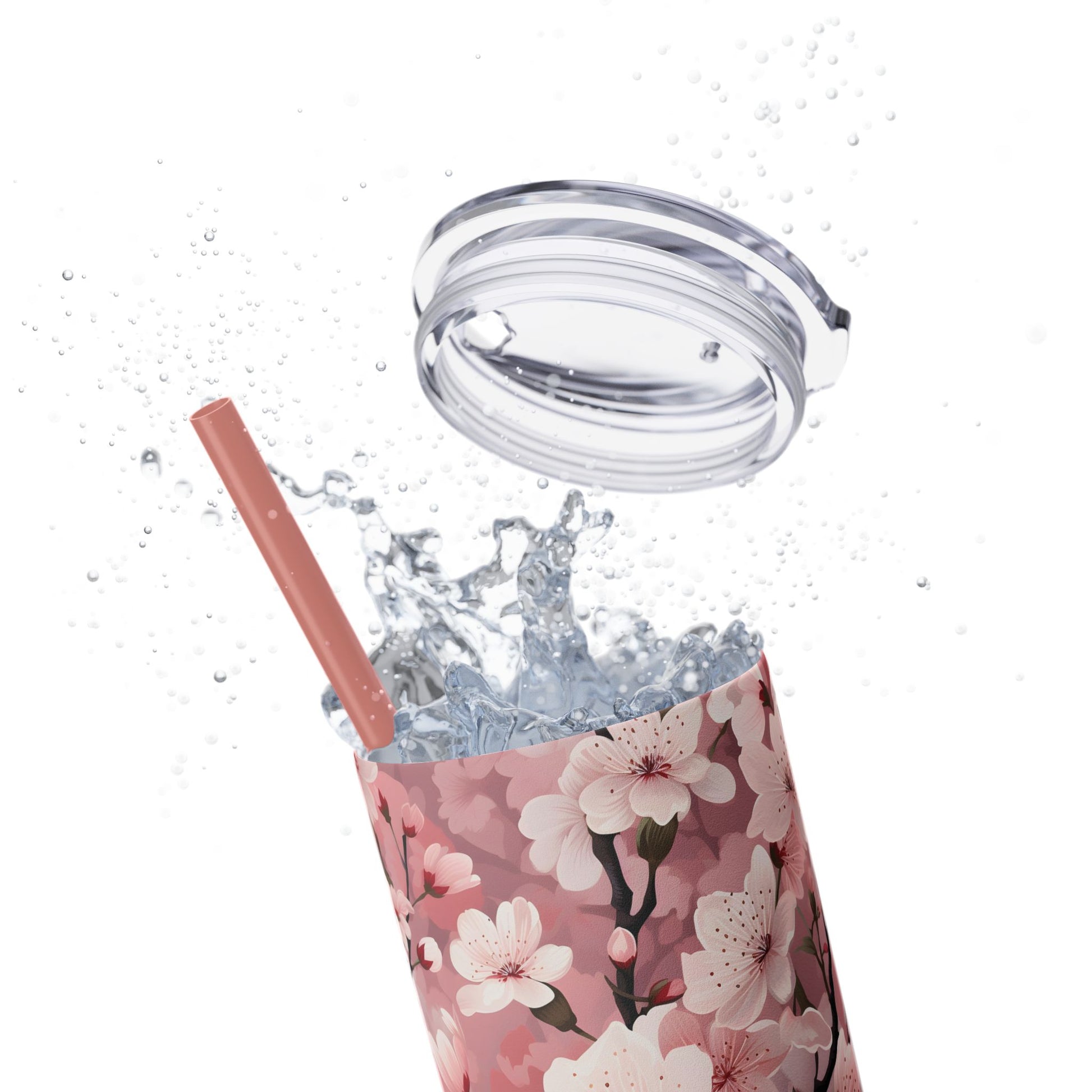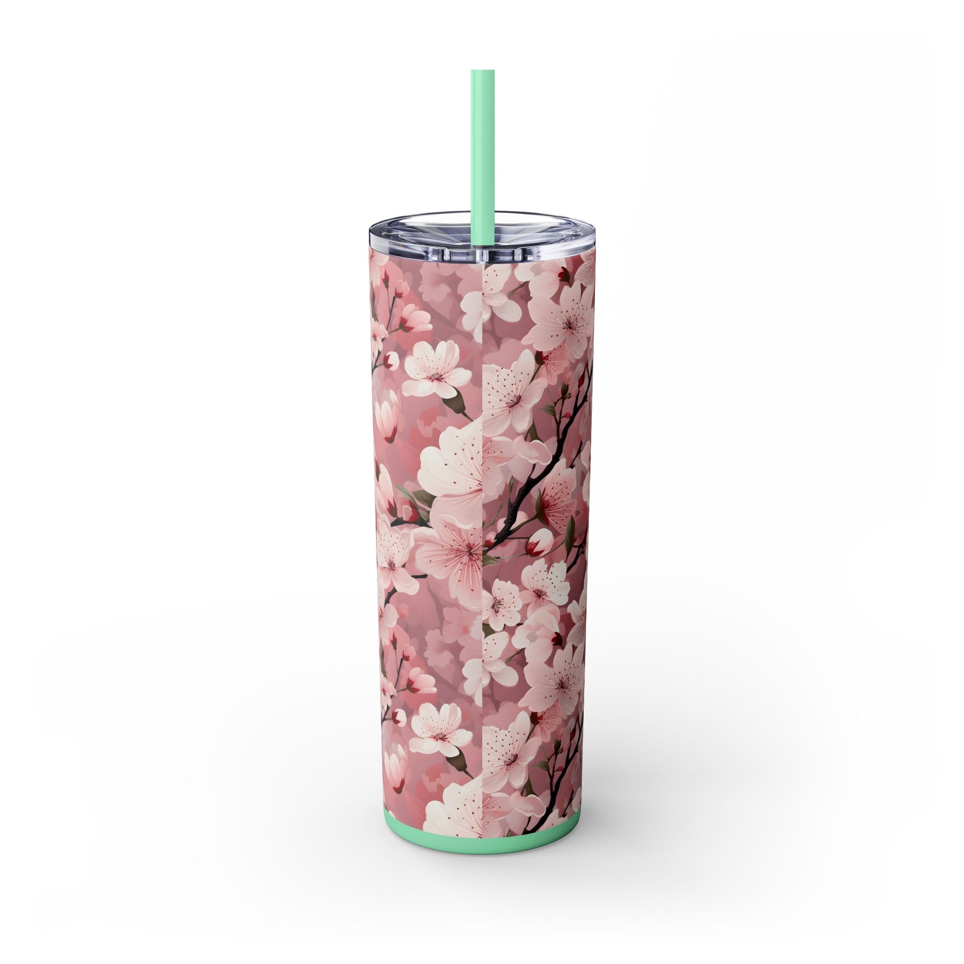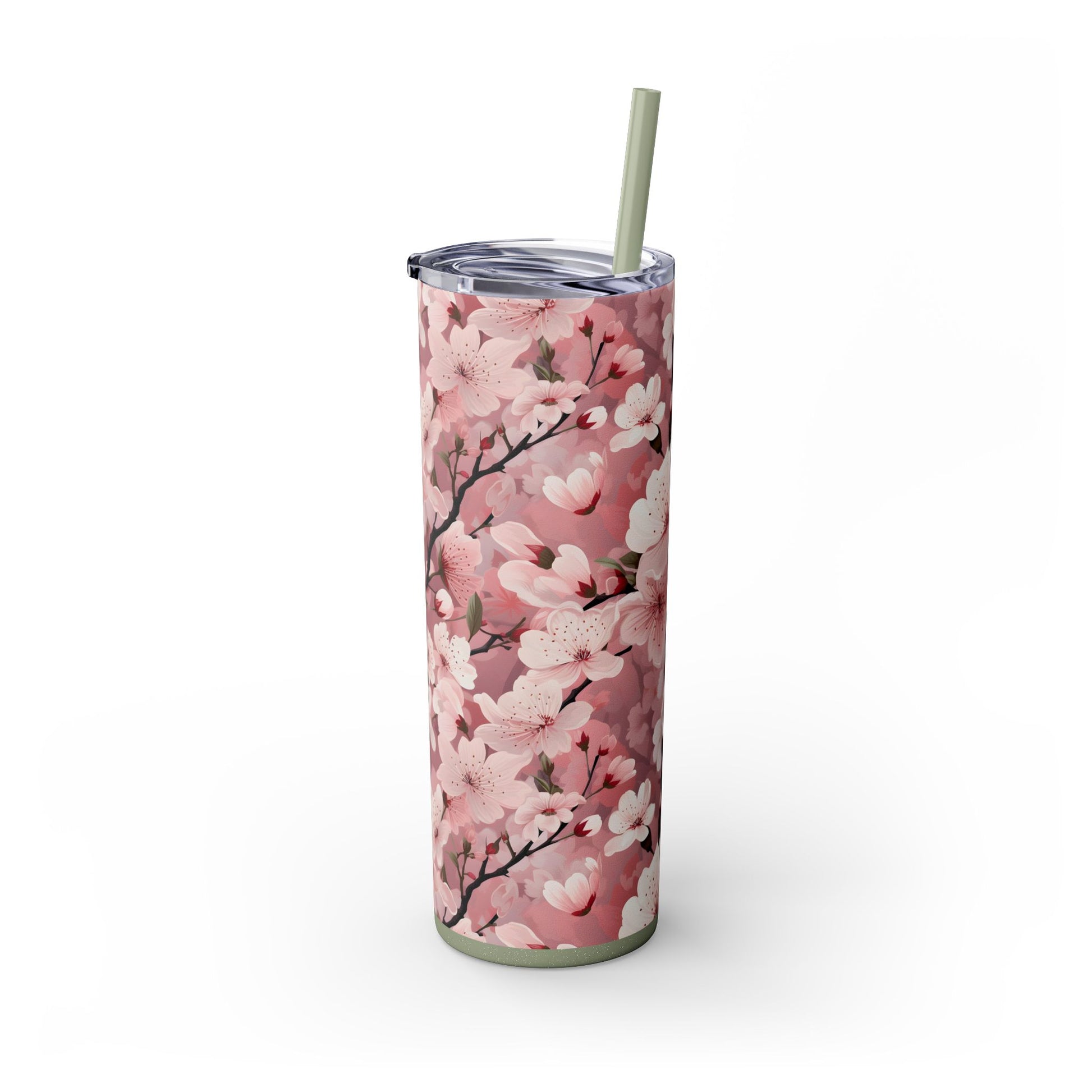 Cherry Blossom Skinny Tumbler with Straw - 20oz Floral Drinkware
