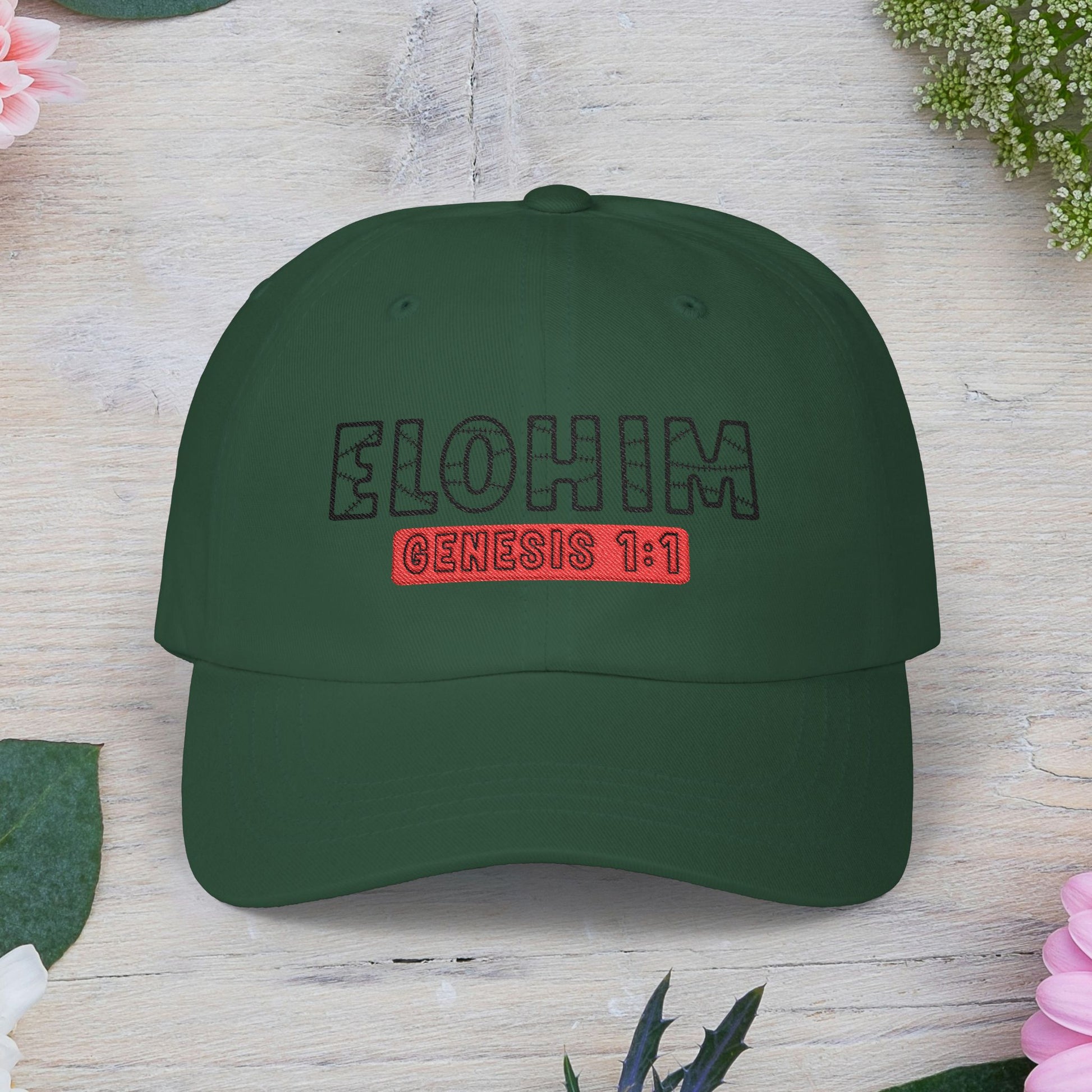 Classic Embroidery Dad Cap with 'ELOHIM, GENESIS 1:1' - Faith-Based Hat, Casual Wear, Gift for Dad, Christian Accessory, Summer Fashion
