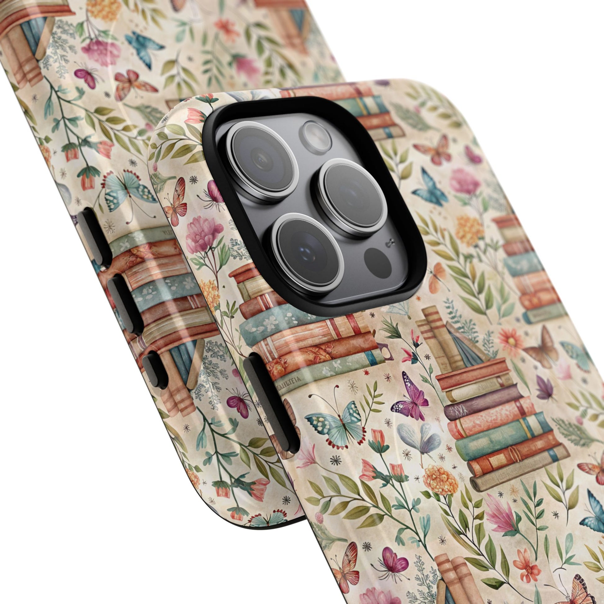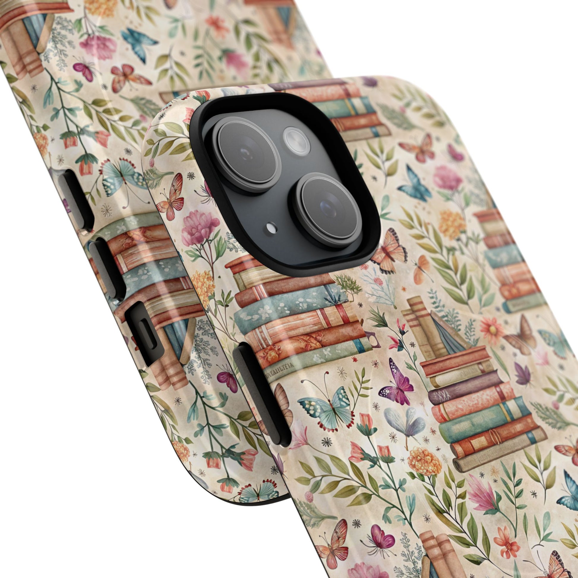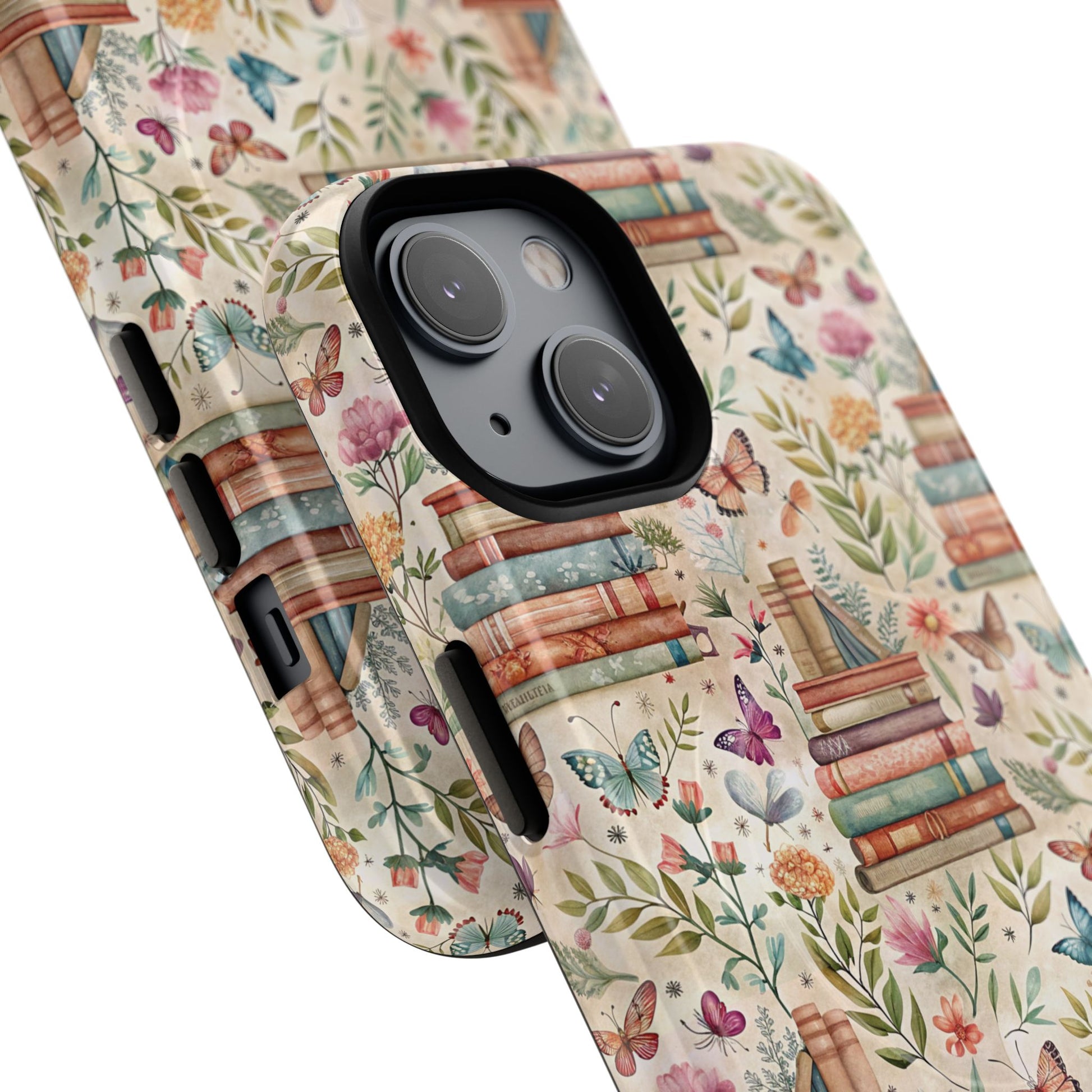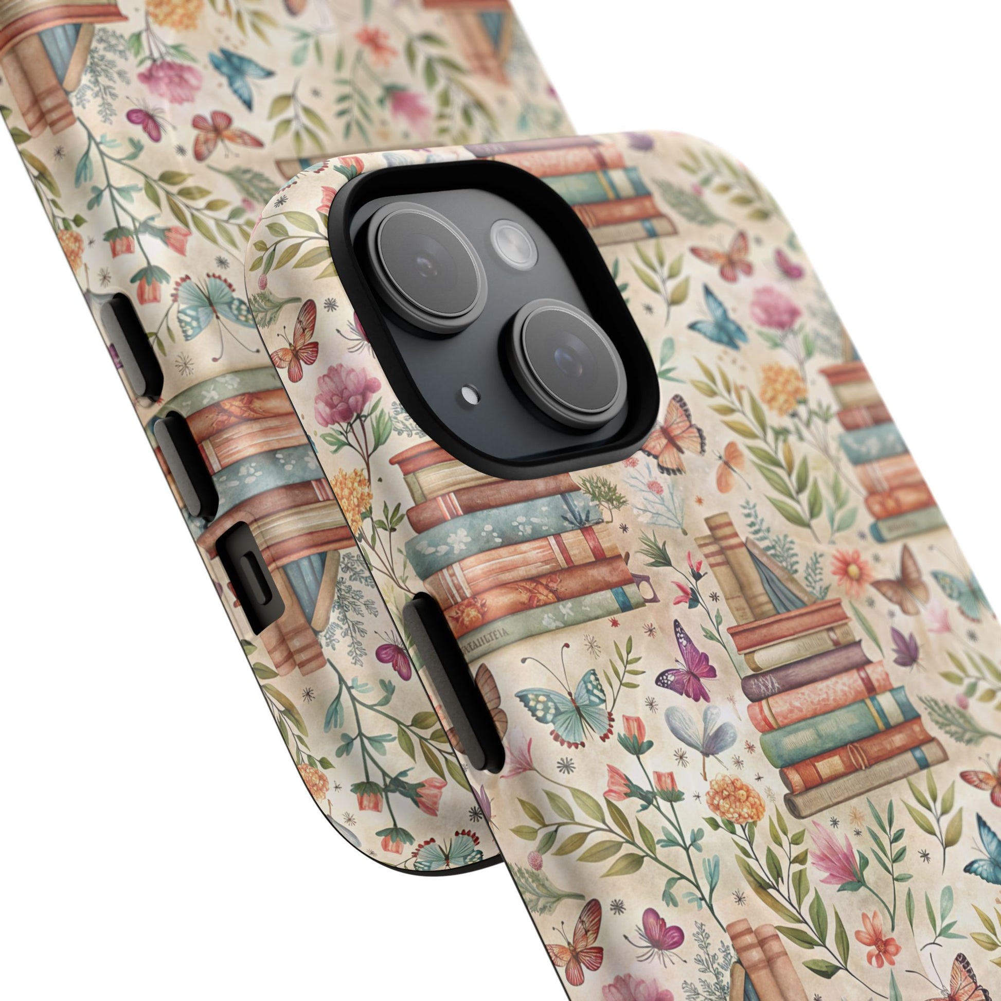 Colorful Bookworm Tough Magnetic iPhone Case, Floral Butterfly Print, Gift for Readers, Tough IPhone Protective Cover, Bookish iPhone Case.