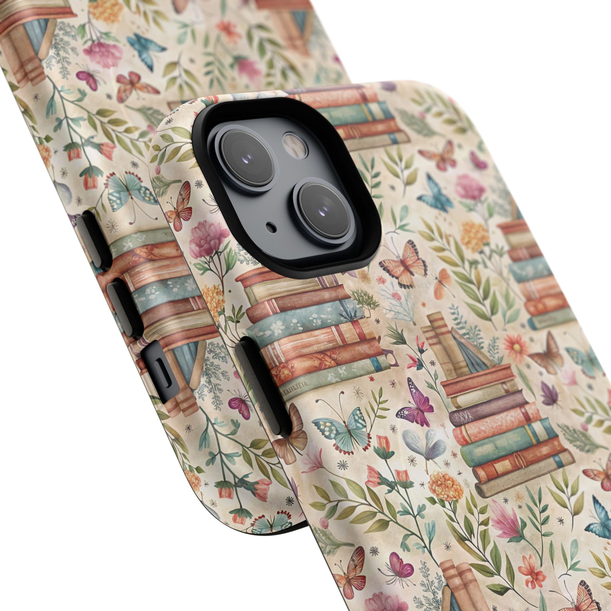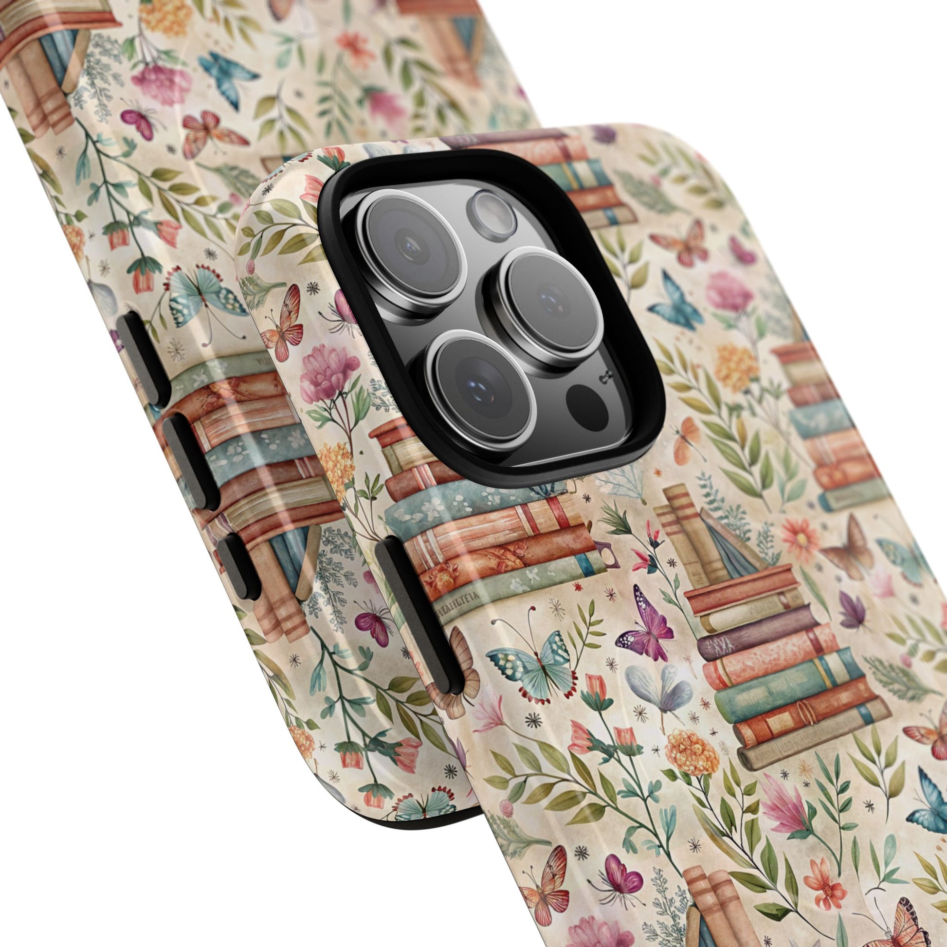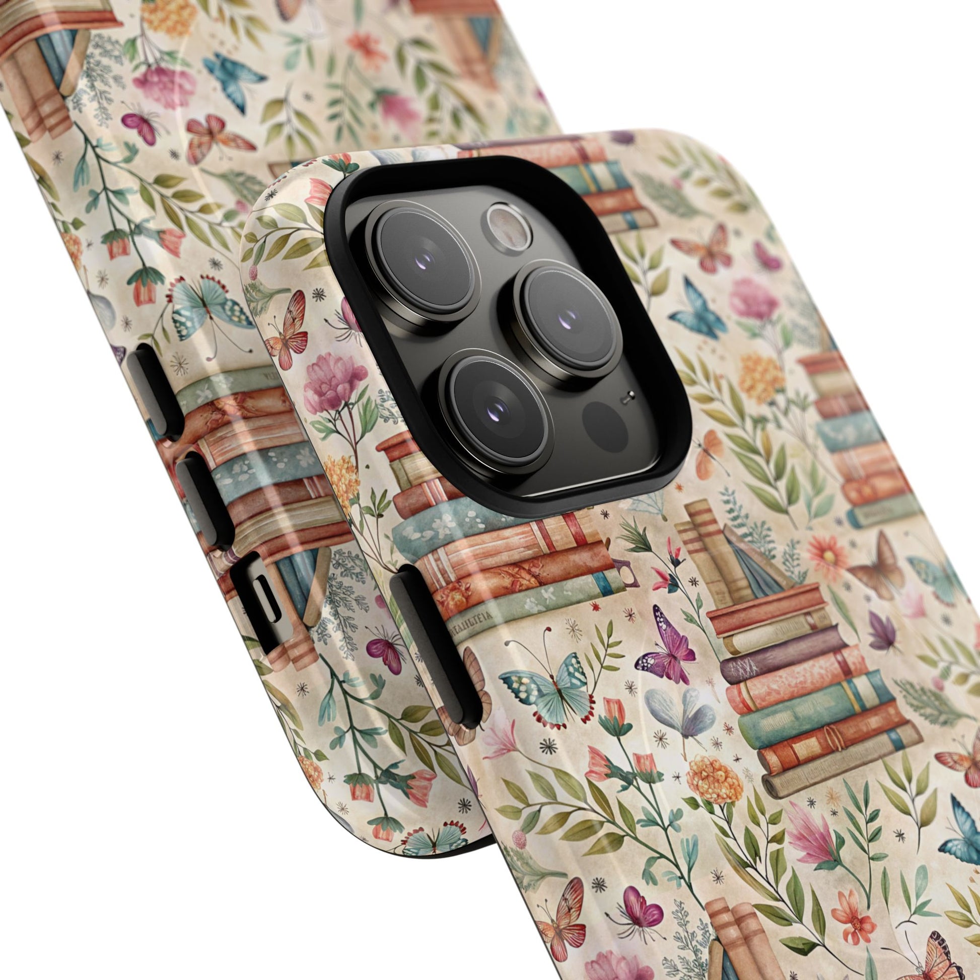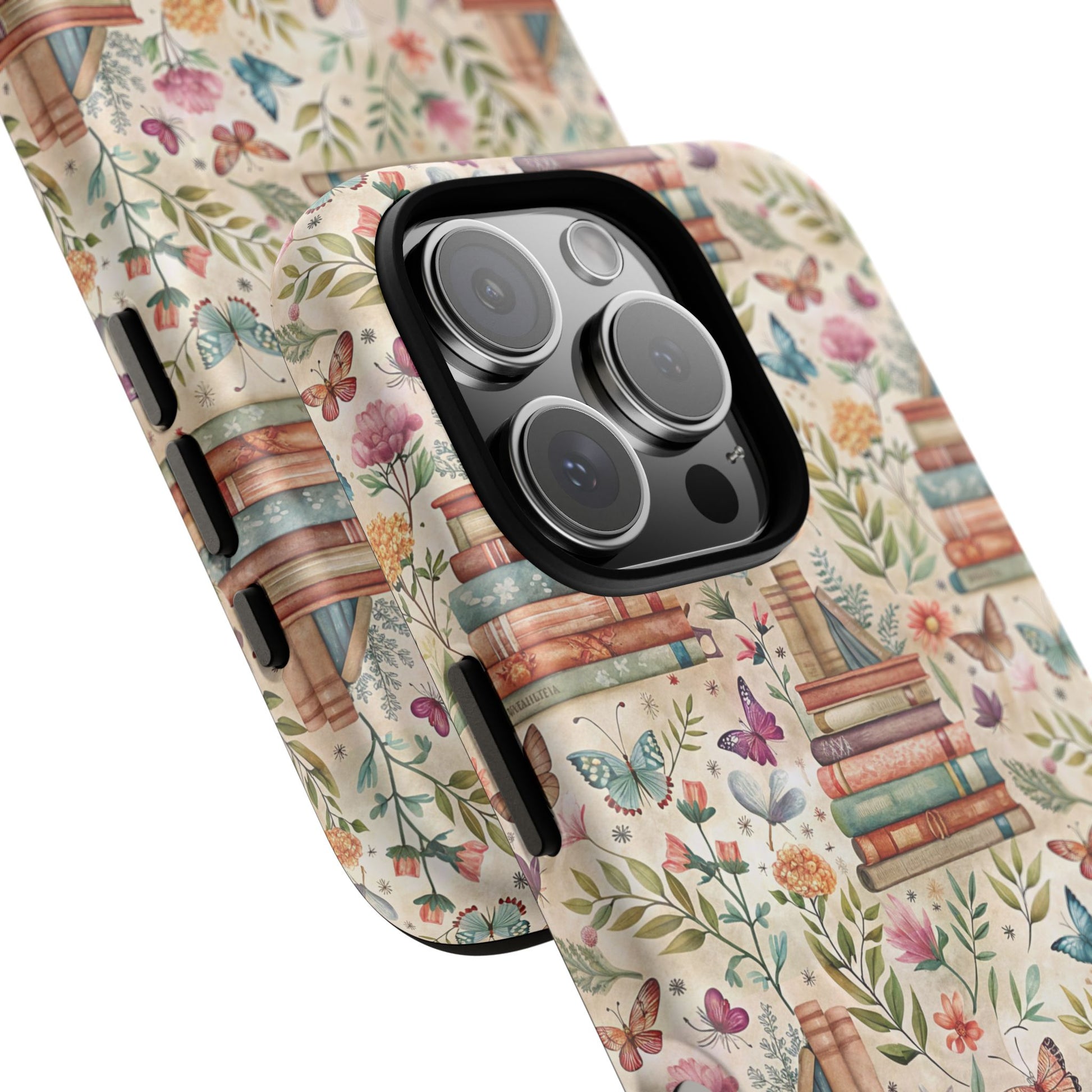 Colorful Bookworm Tough Magnetic iPhone Case, Floral Butterfly Print, Gift for Readers, Tough IPhone Protective Cover, Bookish iPhone Case.