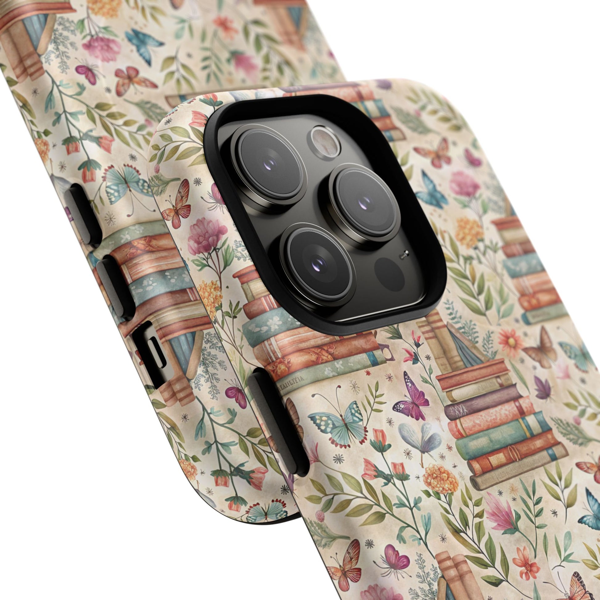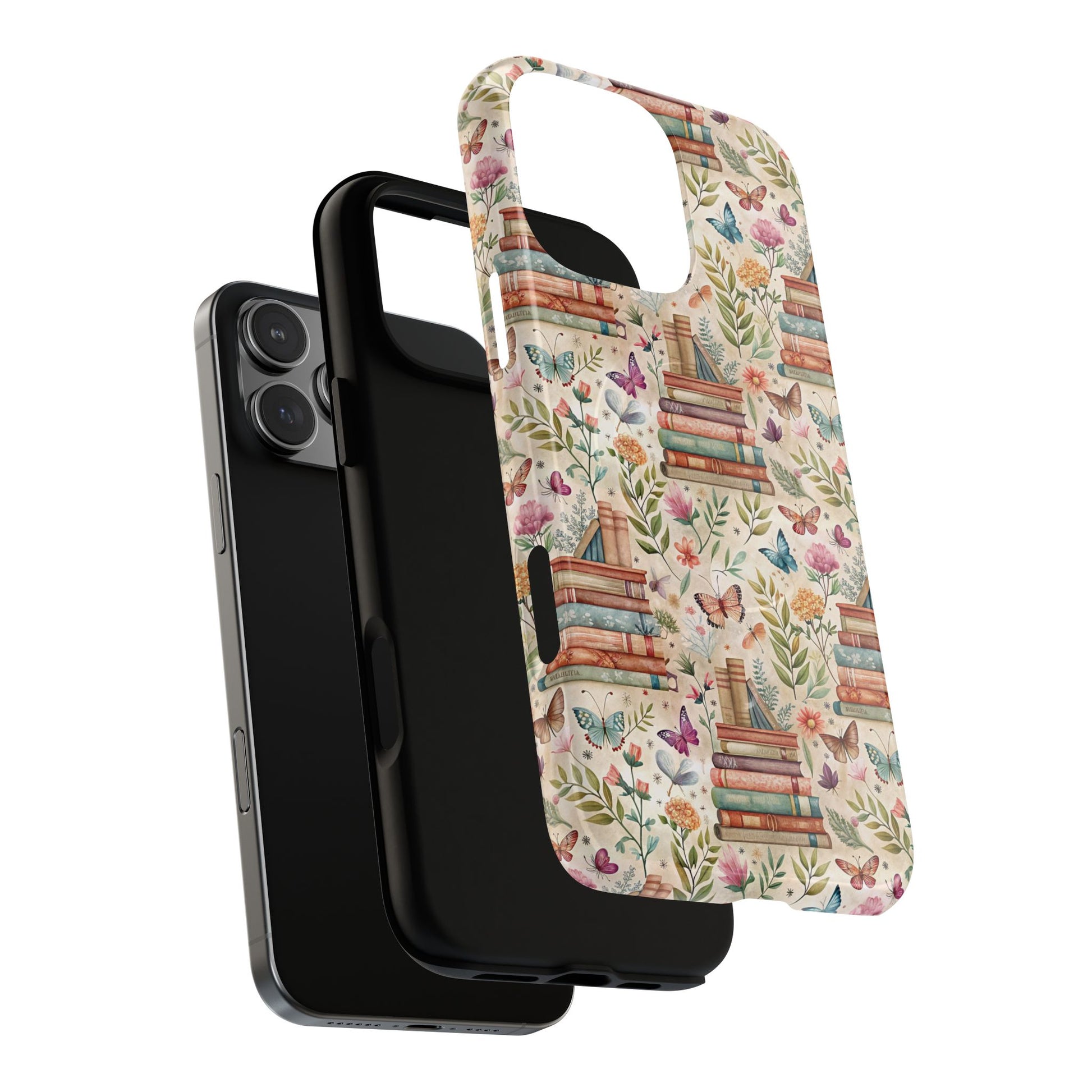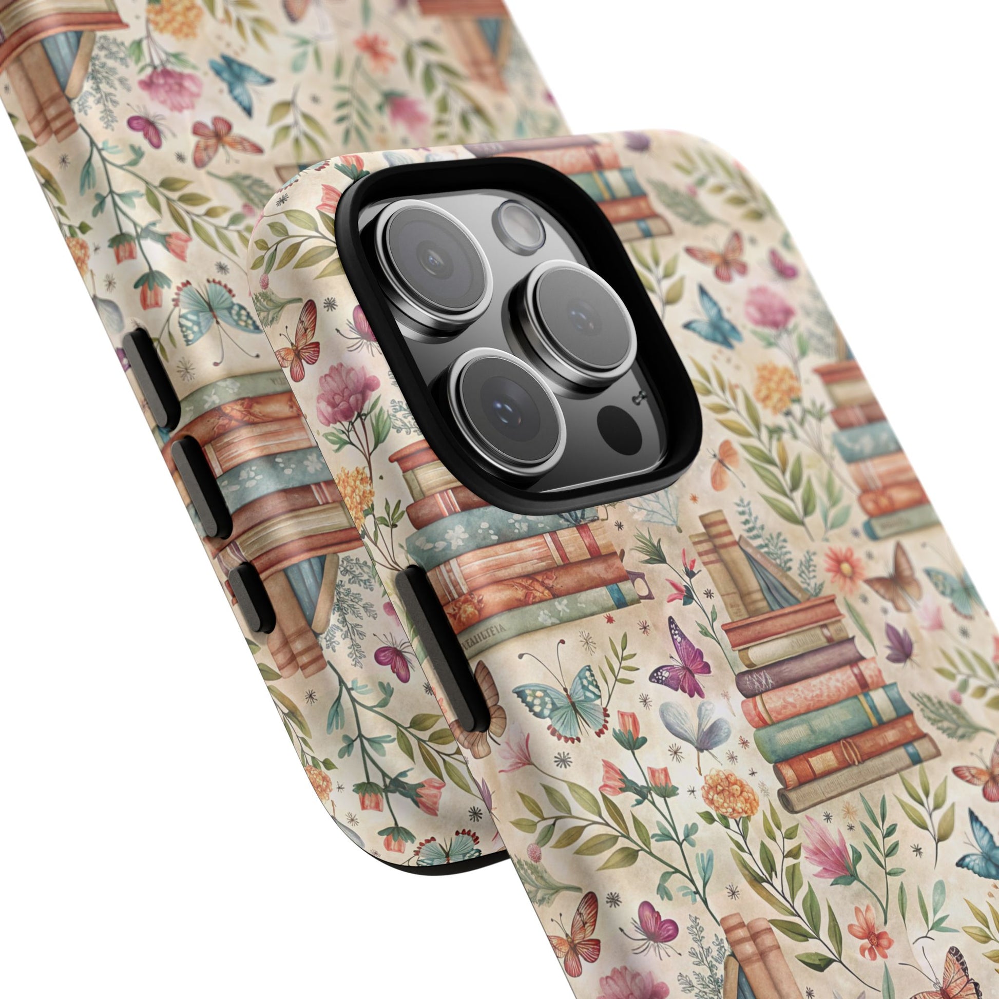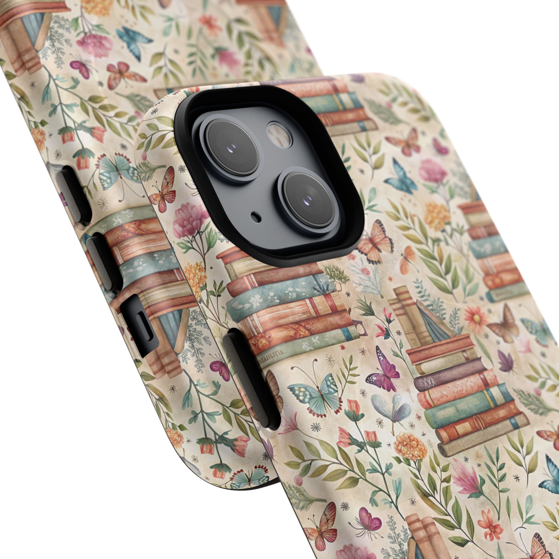 Colorful Bookworm Tough Magnetic iPhone Case, Floral Butterfly Print, Gift for Readers, Tough IPhone Protective Cover, Bookish iPhone Case.