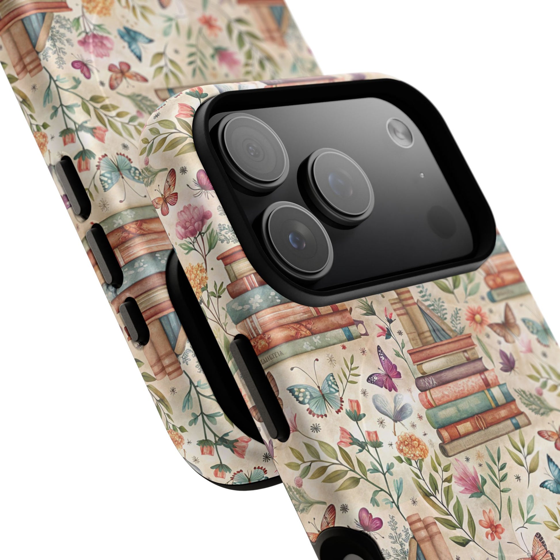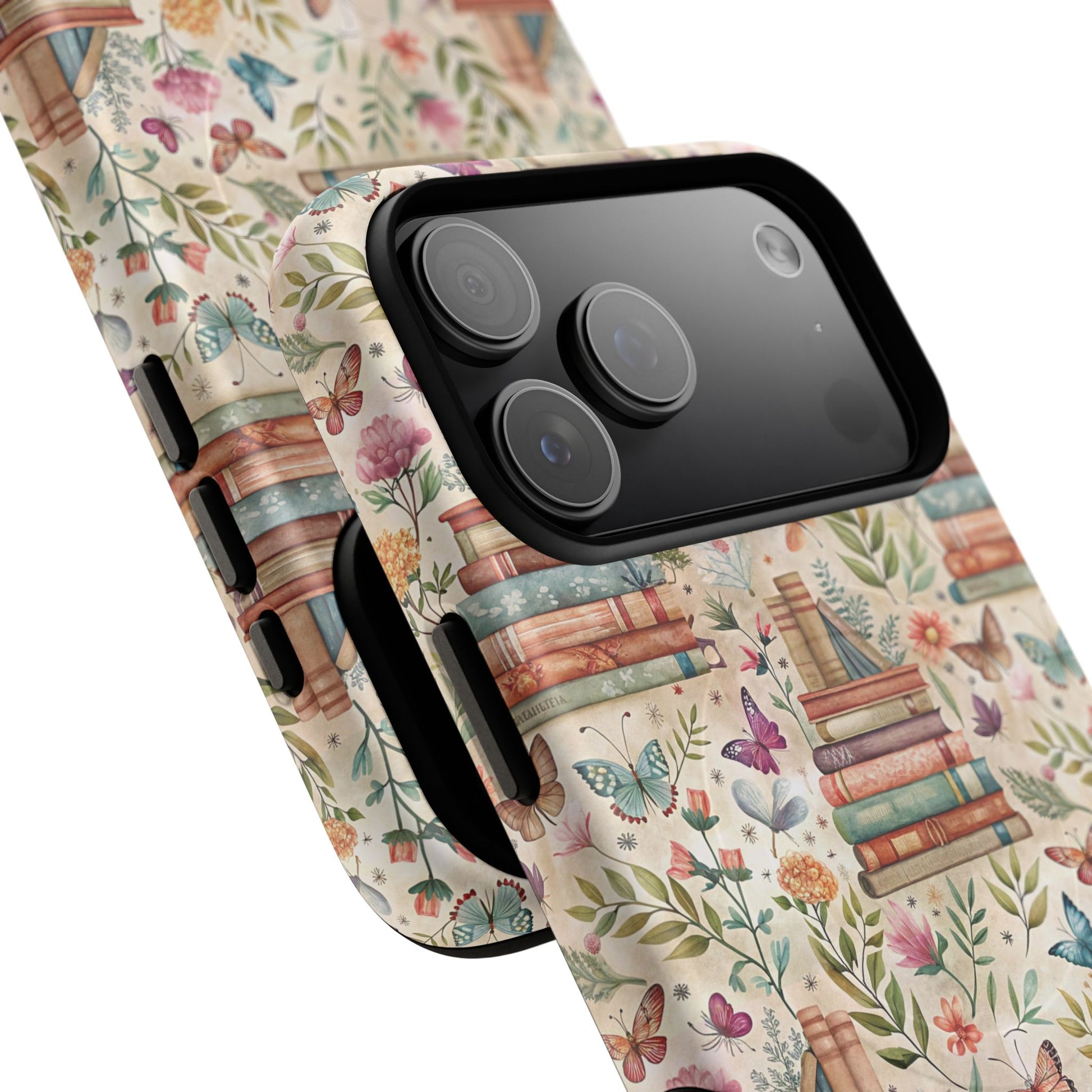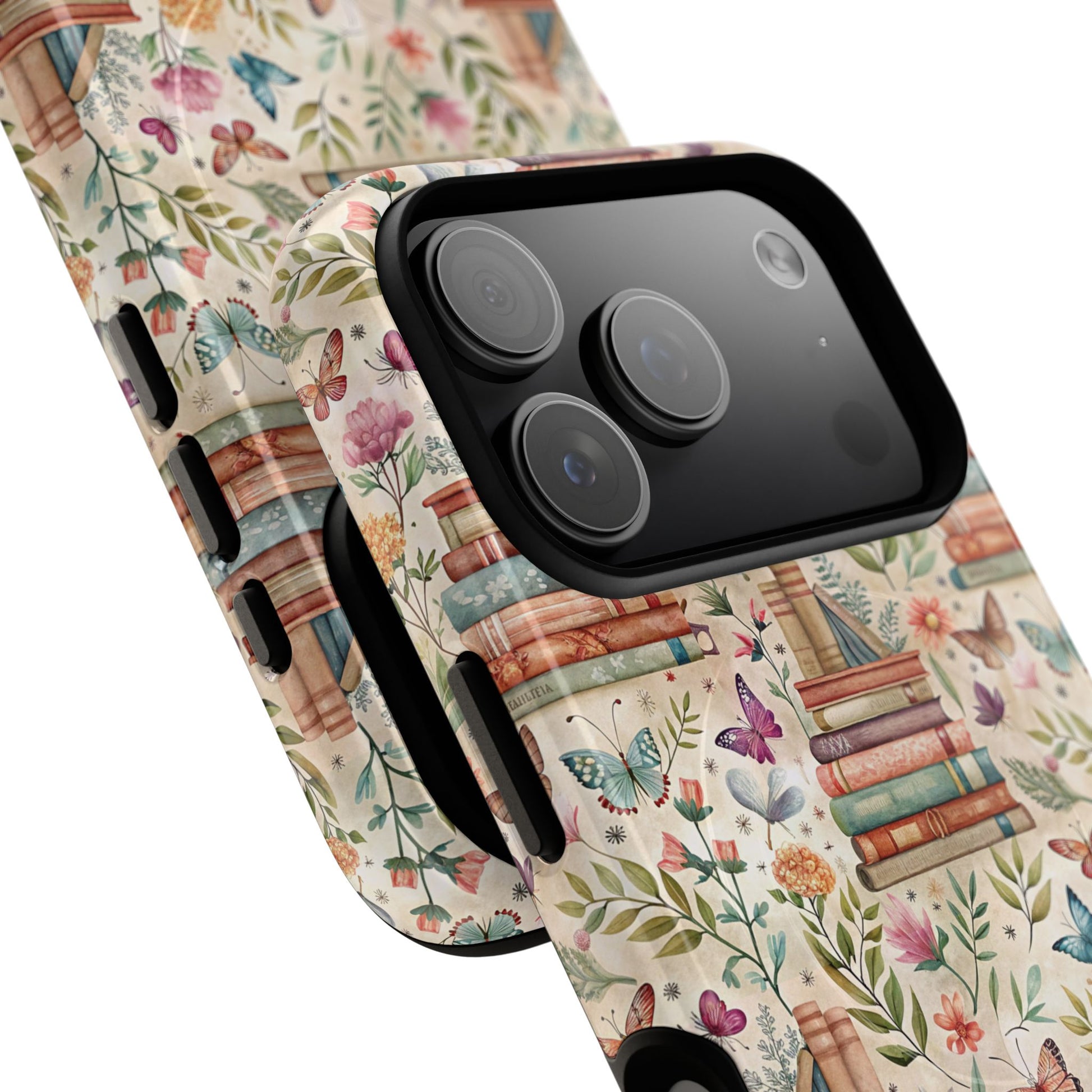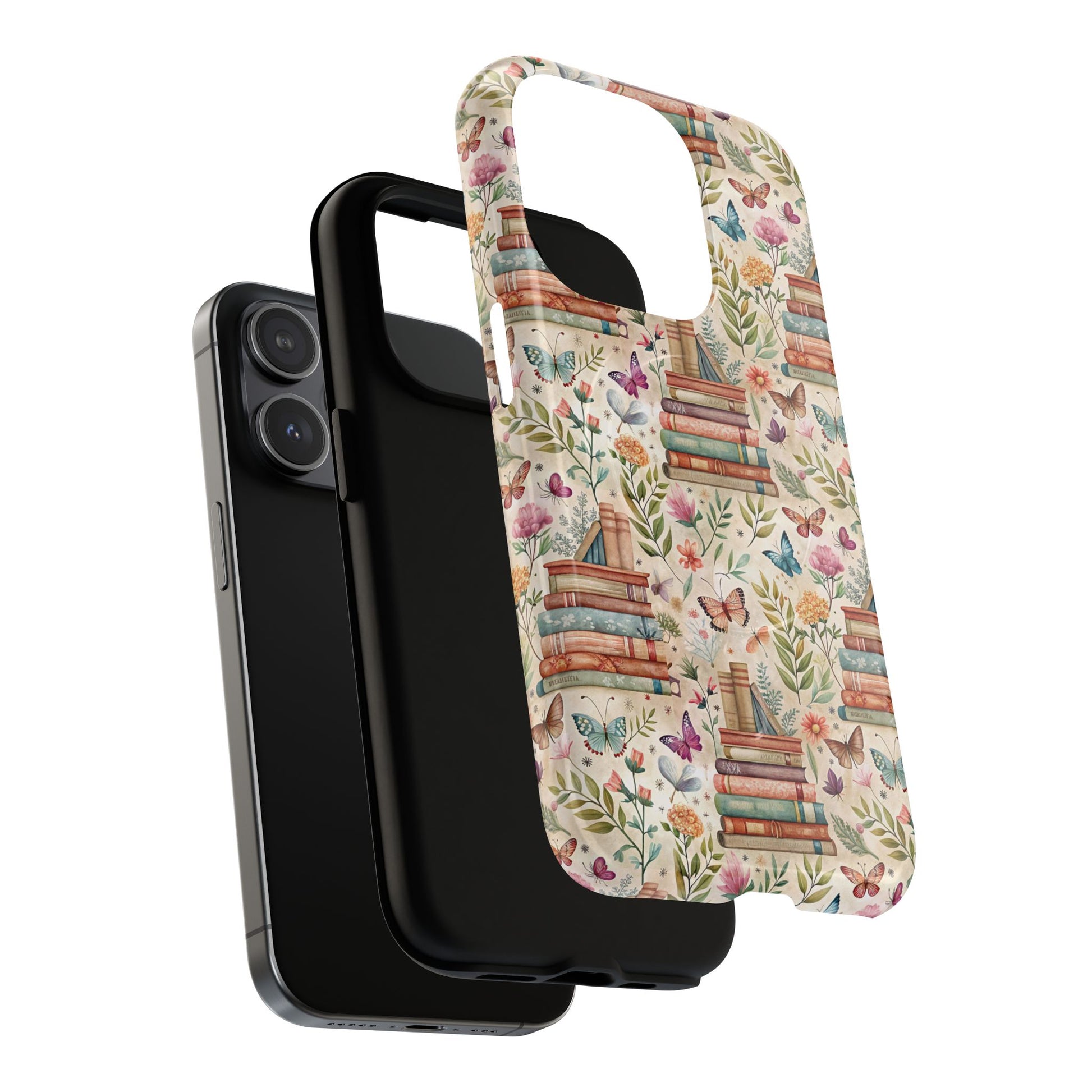 Colorful Bookworm Tough Magnetic iPhone Case, Floral Butterfly Print, Gift for Readers, Tough IPhone Protective Cover, Bookish iPhone Case.