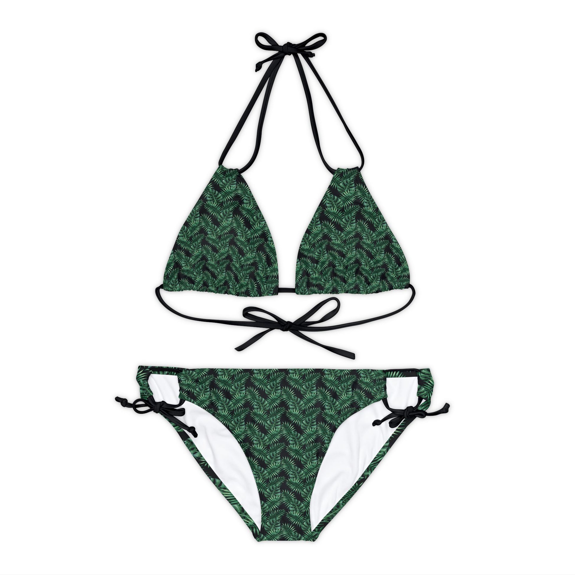 Black Tropical Bliss Strappy Bikini Set (AOP)- (PY)