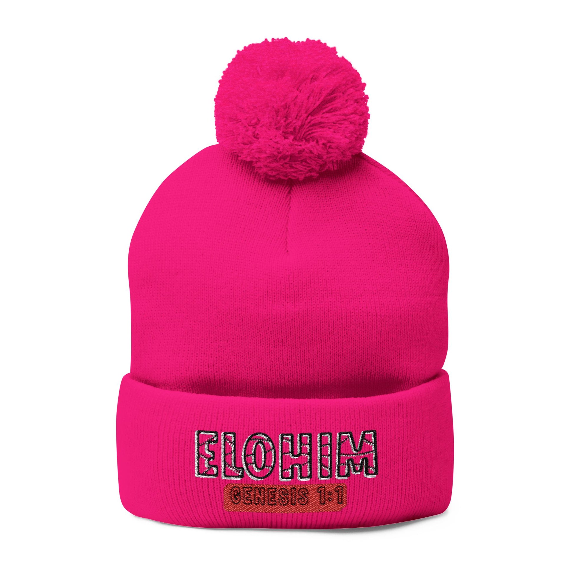 Cozy Pom-Pom Knit Cap with 'ELOHIM, GENESIS 1:1' Embroidery Beanie - Stylish Winter Accessory for All Ages, Perfect Gift for Birthdays, Holidays, and Outdoor Activities