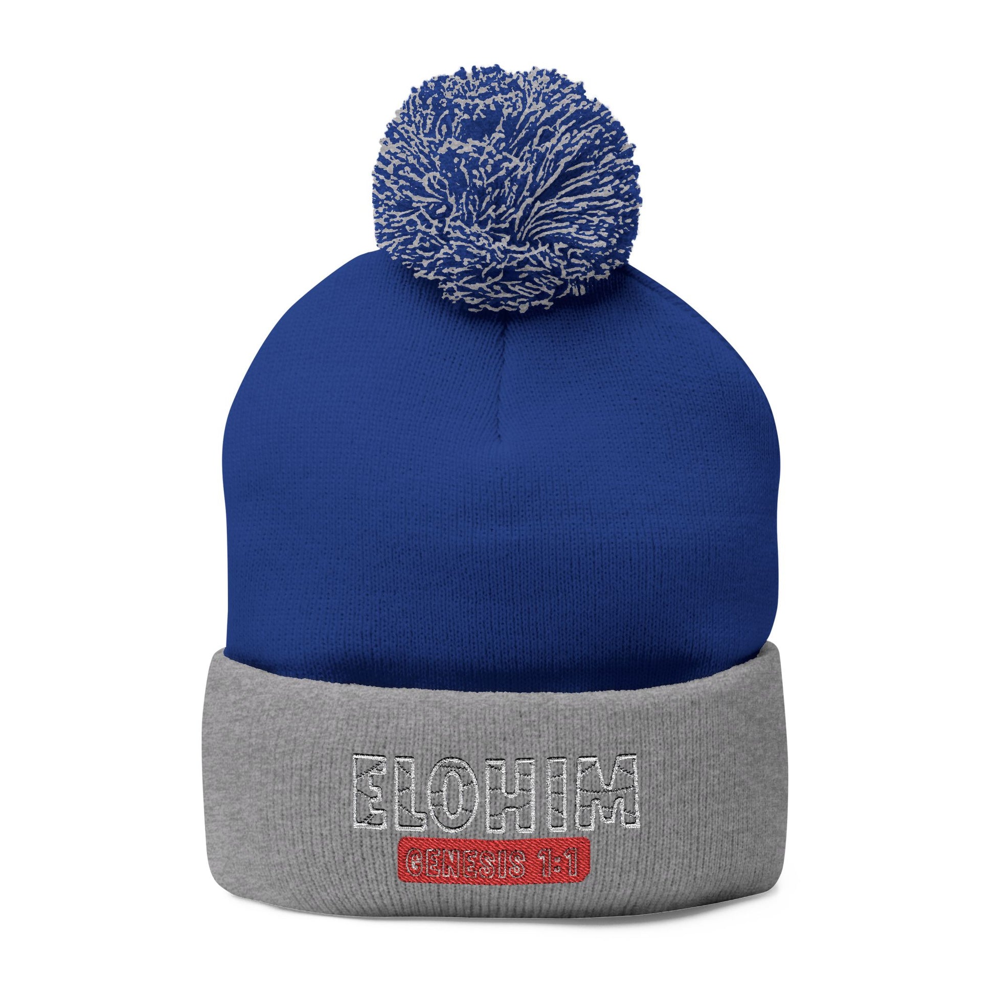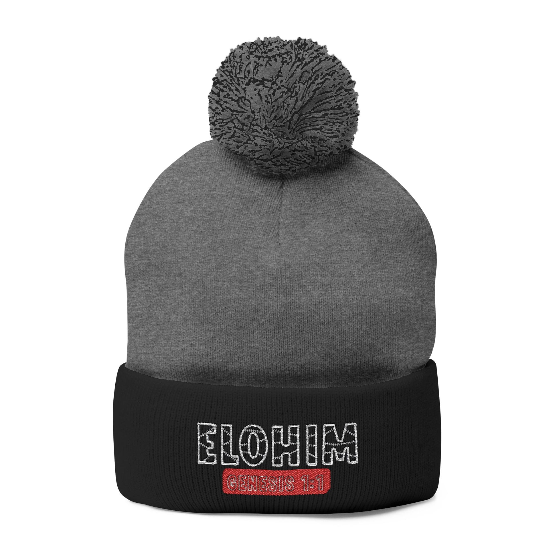 Cozy Pom-Pom Knit Cap with 'ELOHIM, GENESIS 1:1' Embroidery Beanie - Stylish Winter Accessory for All Ages, Perfect Gift for Birthdays, Holidays, and Outdoor Activities