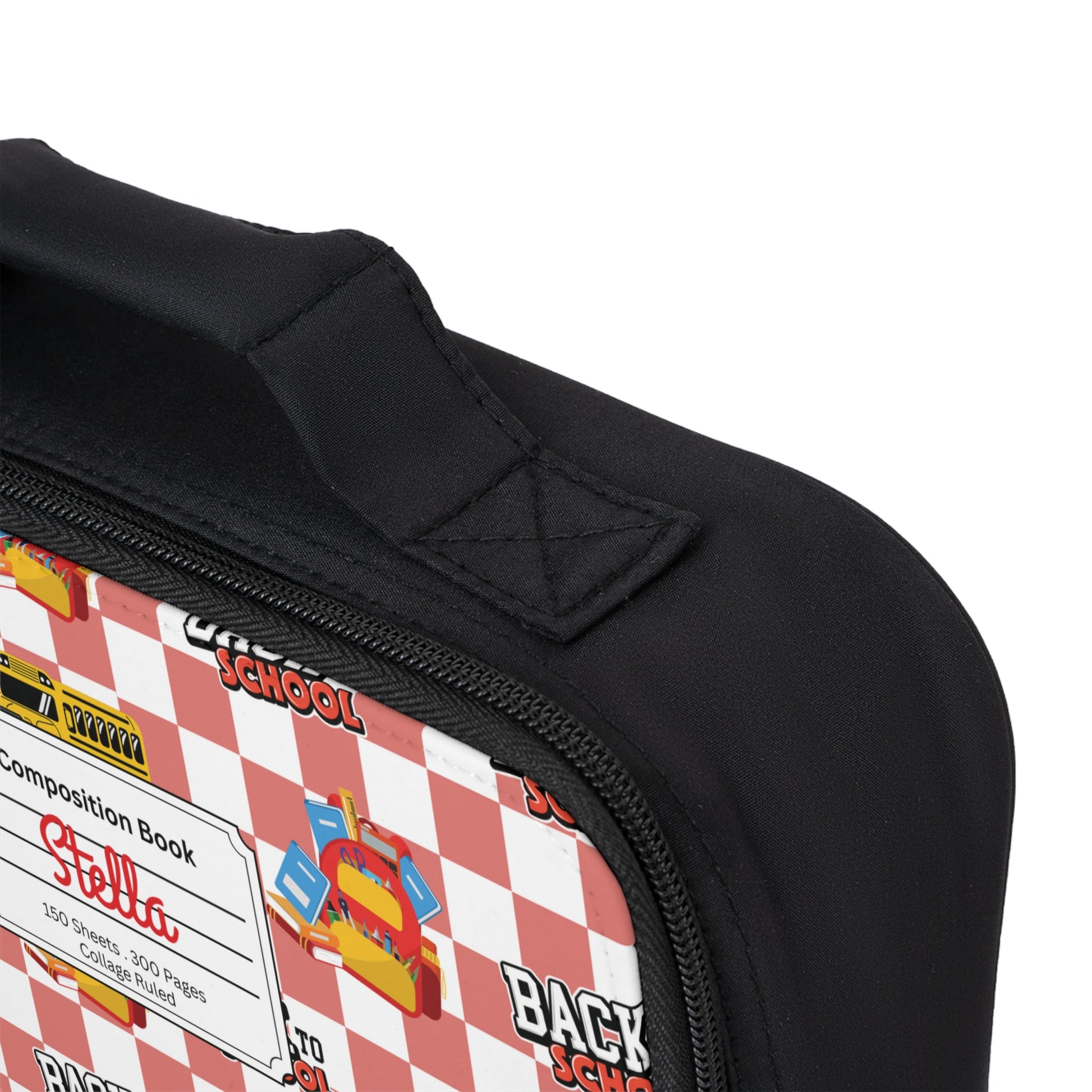 Personalized Red SchoolYard Chic Composition Book Inspired Colorful Kids Lunch Bag for School, Snack Bag, Lunch Tote, Lunchbox, Kids' Bag with Fun Back to School Design