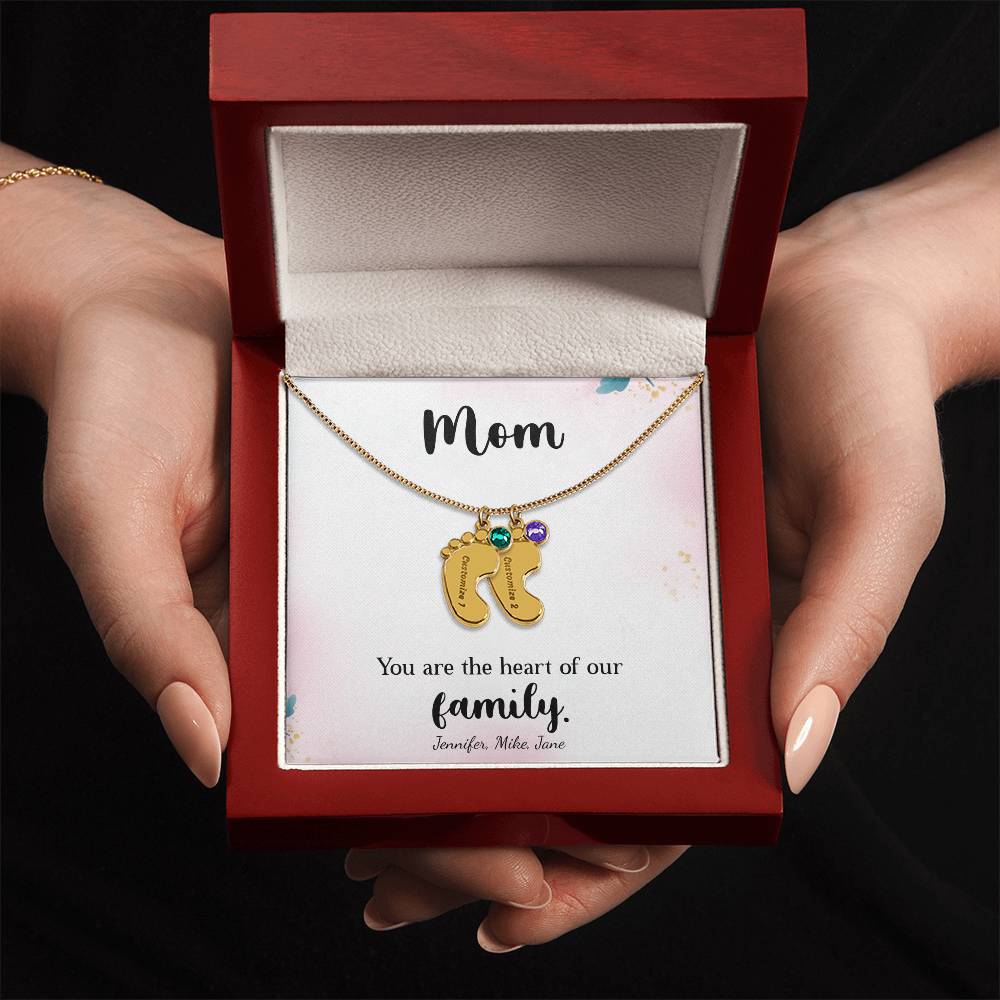 Custom Baby Feet Necklace with Birthstone, a Perfect Gift for Mother's Day/Birthdays.