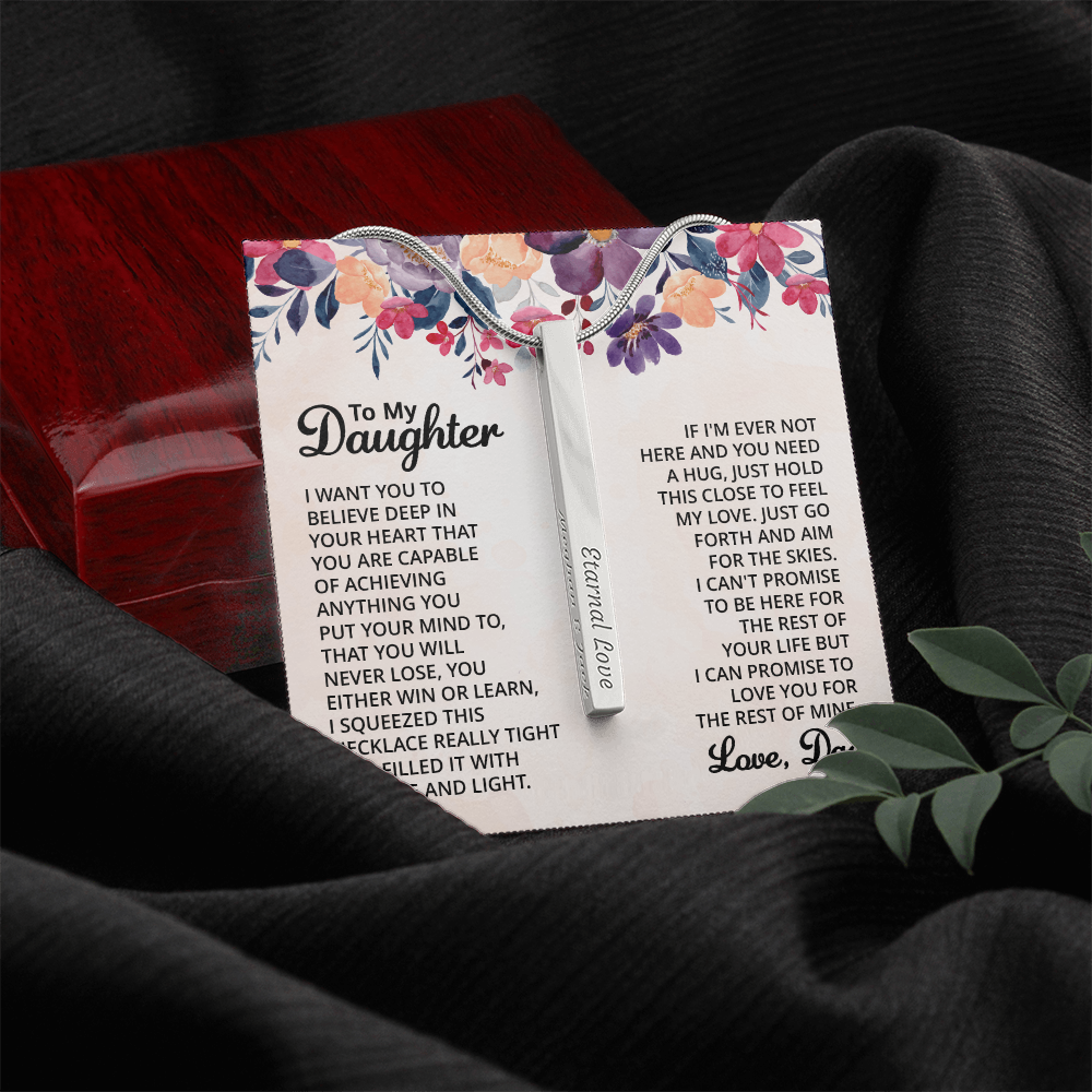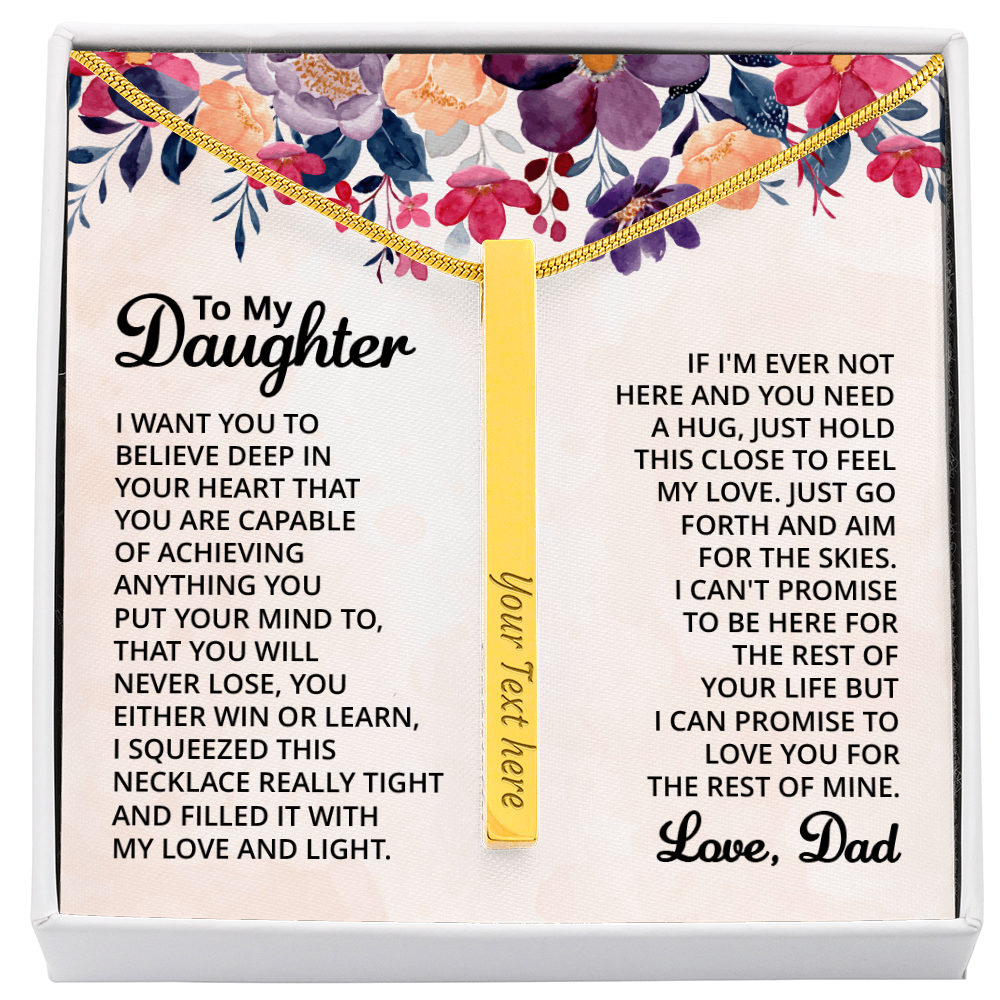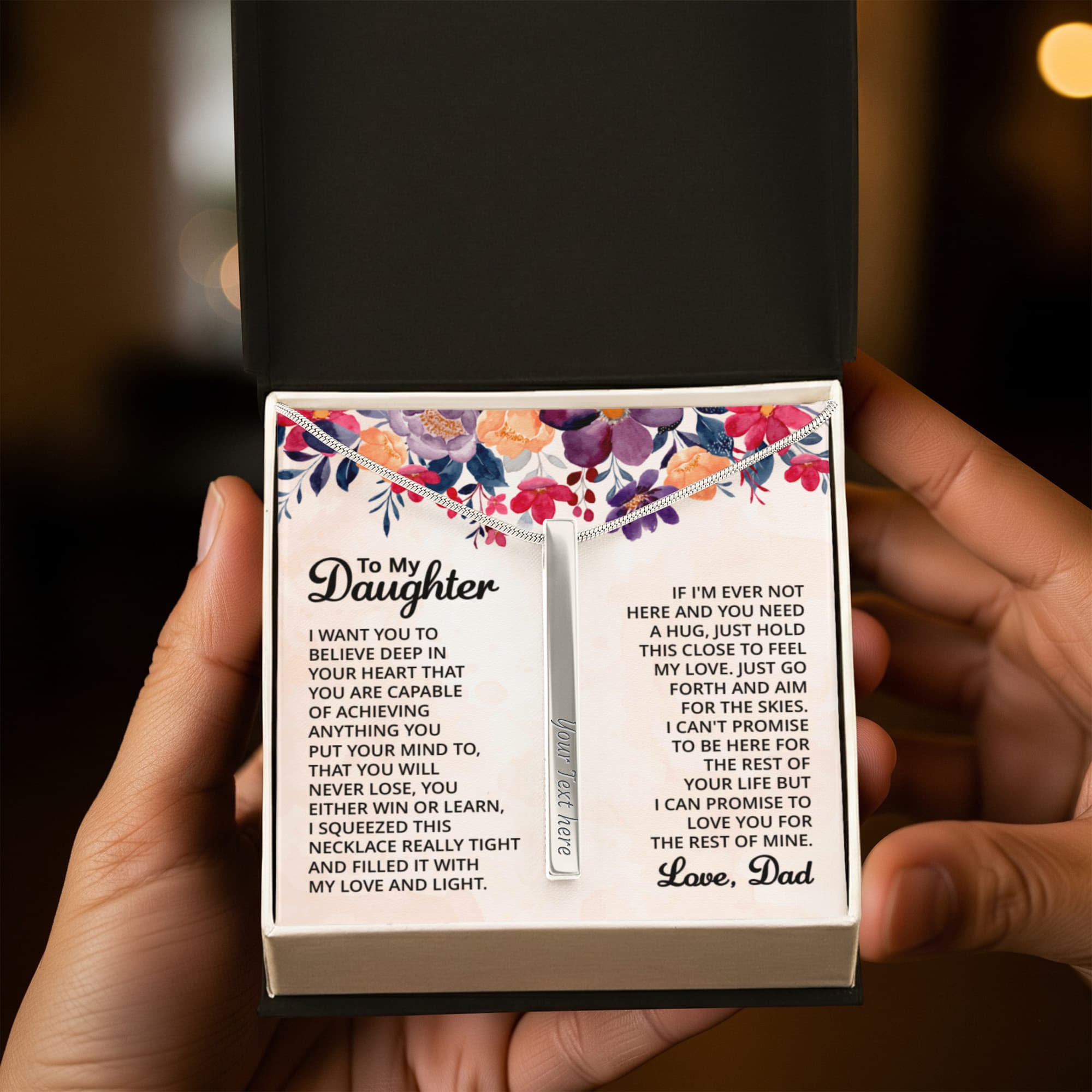 Custom Engraved 4- Sided Stick Necklace a Gift for a Daughter.