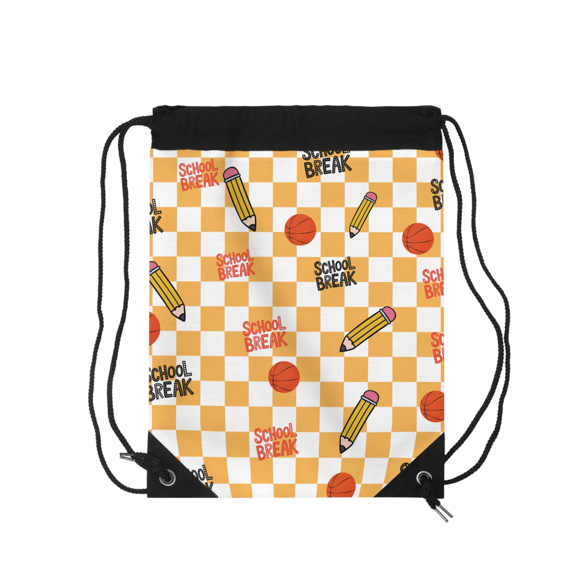 Custom Orange Schoolyard Chic Composition Book Inspired Colorful plsyful icons Drawstring Bag | Personalized College Ruled Tote | Kids School Gear | Fun Gym Sack | Back to School Accessory