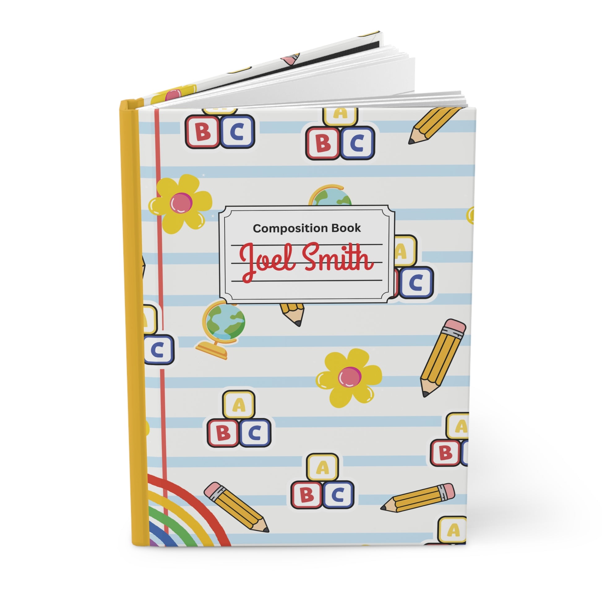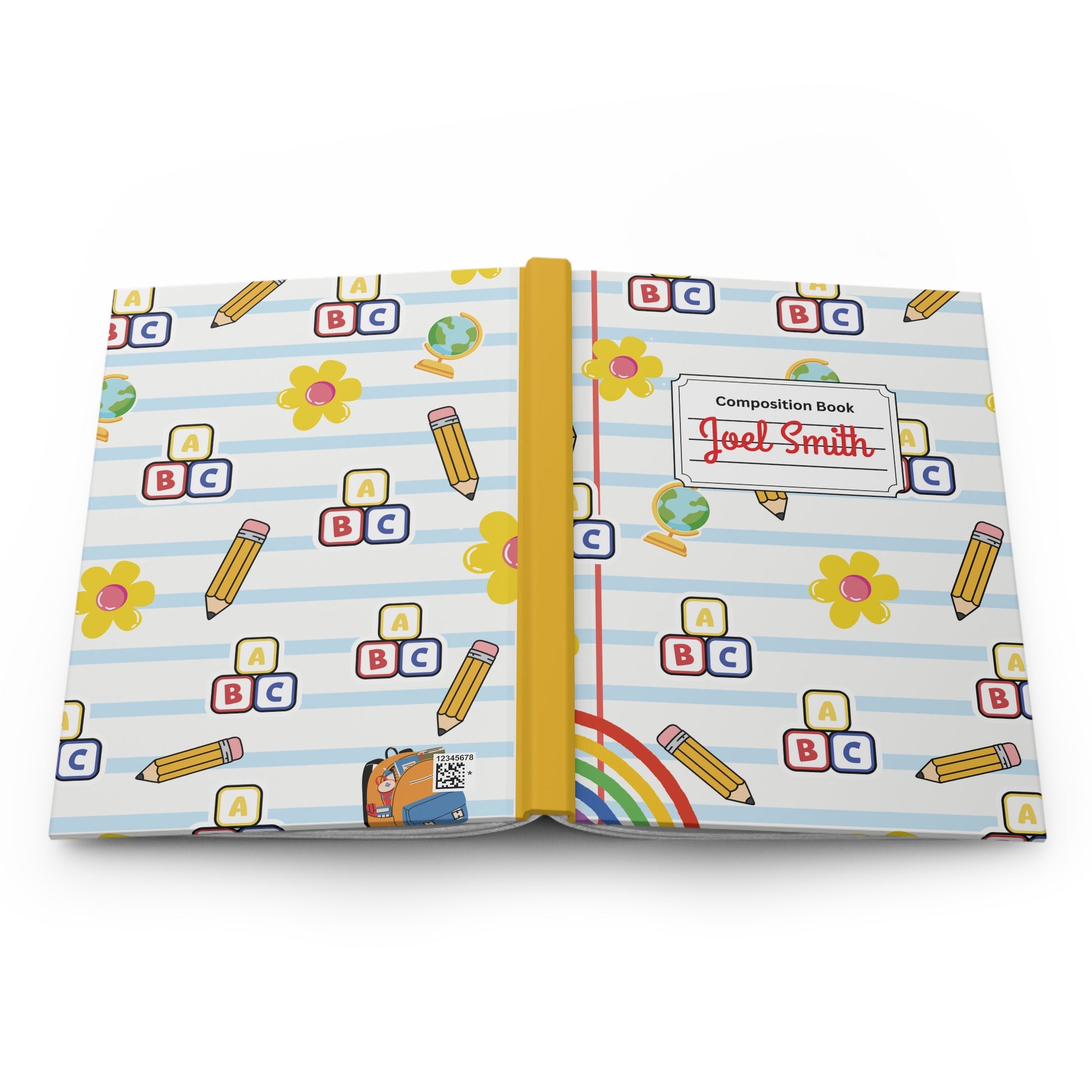 Custom White SchoolYard Chic Composition Book Inspired Ruled Hardcover Journal for Kids, Fun School Notebook, Customizable Composition Book, Back to School Gift, Learning Organizer