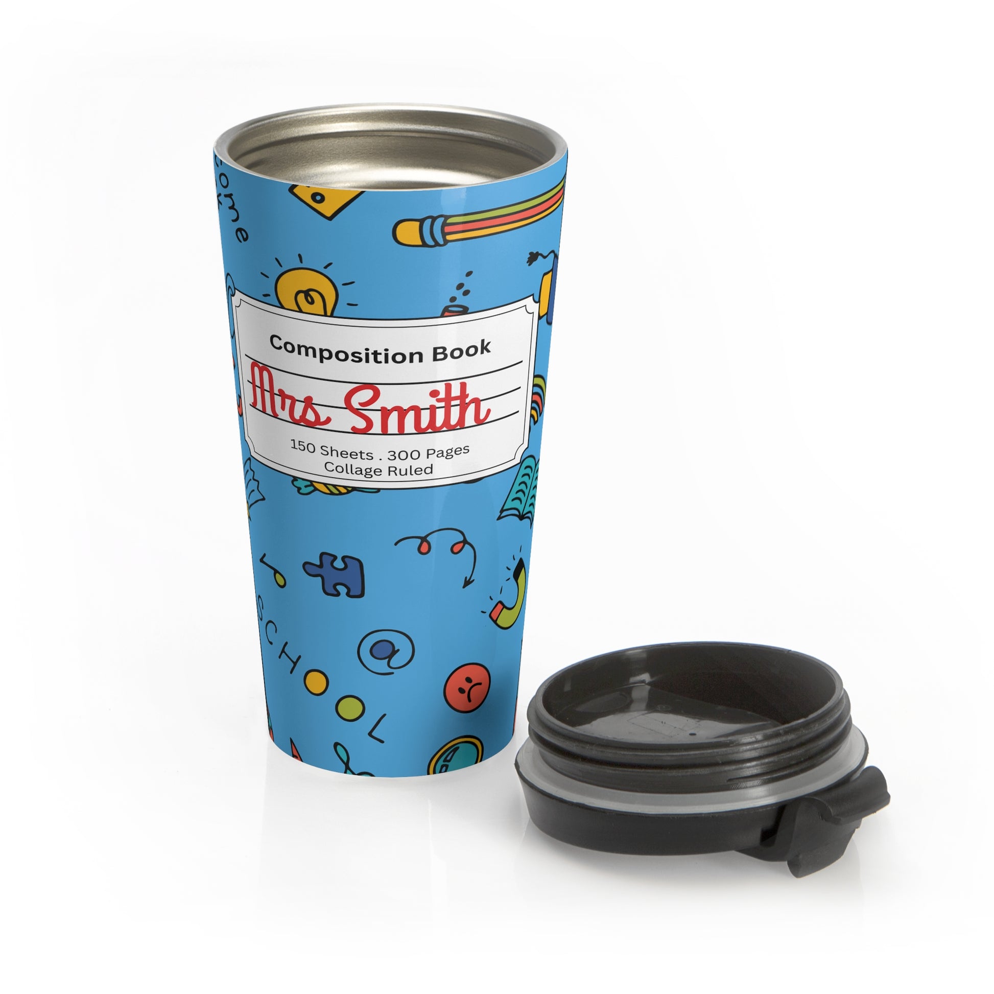 Customizable Classroom Couture Composition Book Inspired Travel Mug, Personalized Gift for Teachers, Back to School Drinkware, Christmas Present, Stylish Coffee Cup
