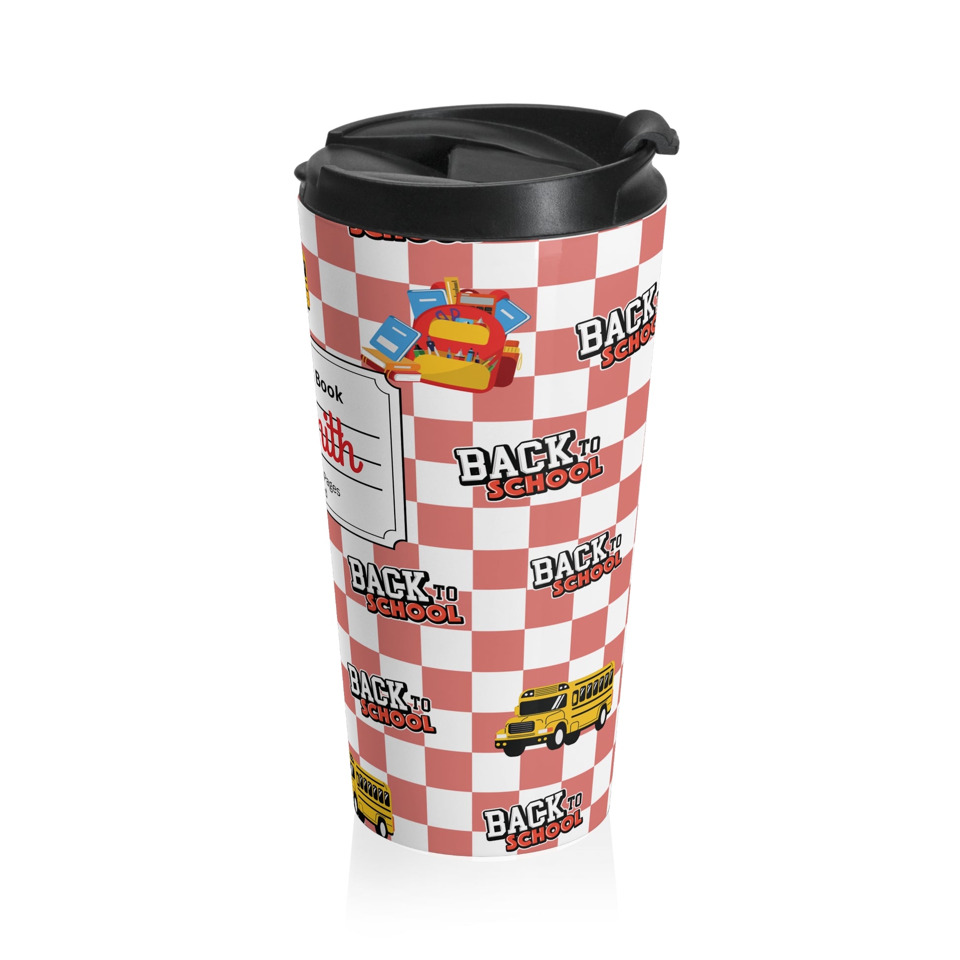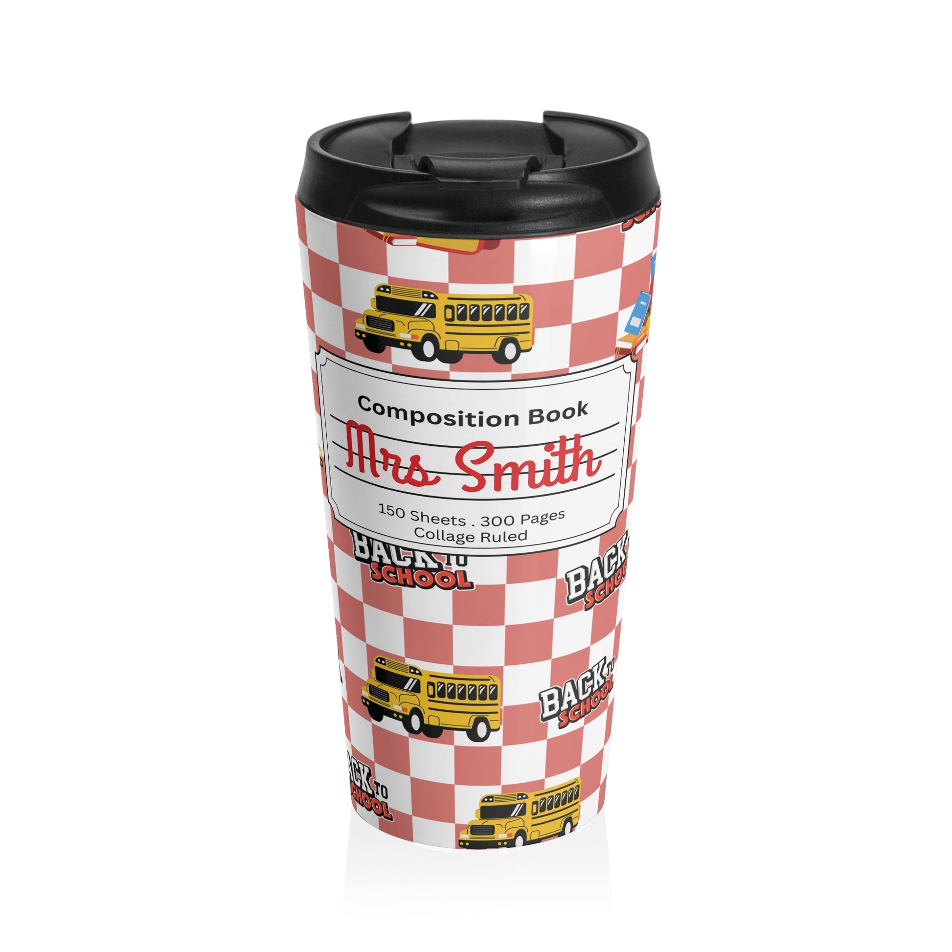Customizable Red SchoolYard Chic Composition Book Inspired Travel Mug, Personalized Gift for Teachers, Back to School Drinkware, Christmas Present, Stylish Coffee Cup