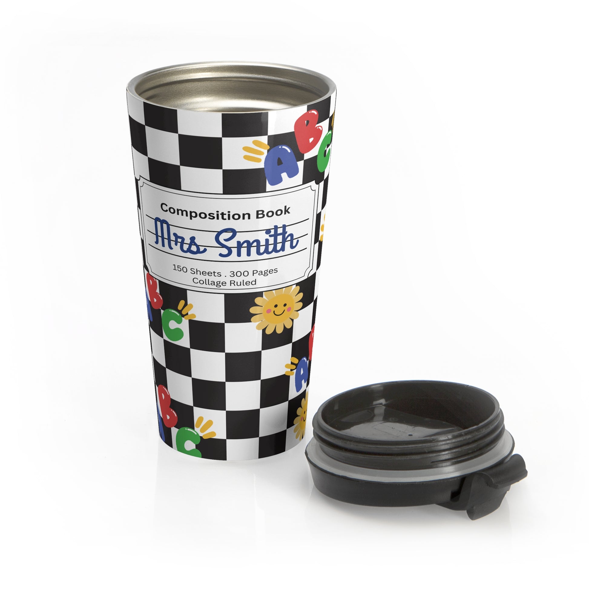Customizable Schoolyard Chic Composition Book Inspired Travel Mug, Personalized Gift for Teachers, Back to School Drinkware, Christmas Present, Stylish Coffee Cup