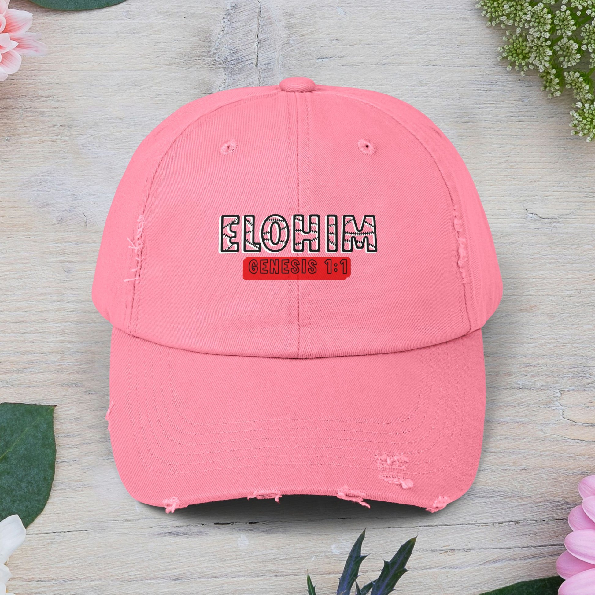'ELOHIM, GENESIS 1:1- Distressed Cap – Unisex Faith-Inspired Hat for Everyday Wear, Bible Verse Cap, Gift for Religious Friends, Casual Accessories