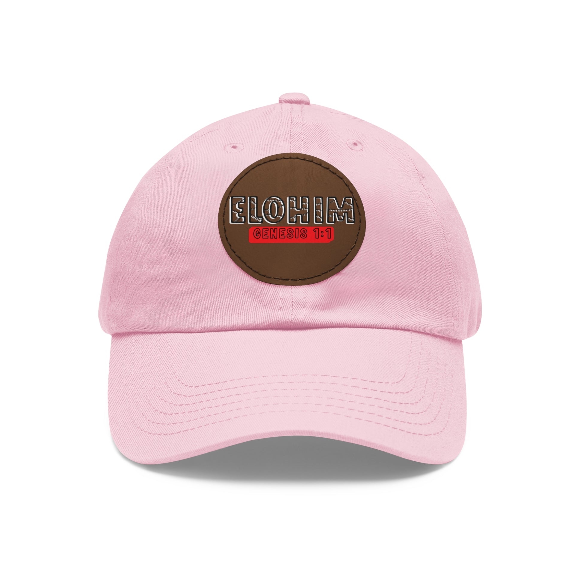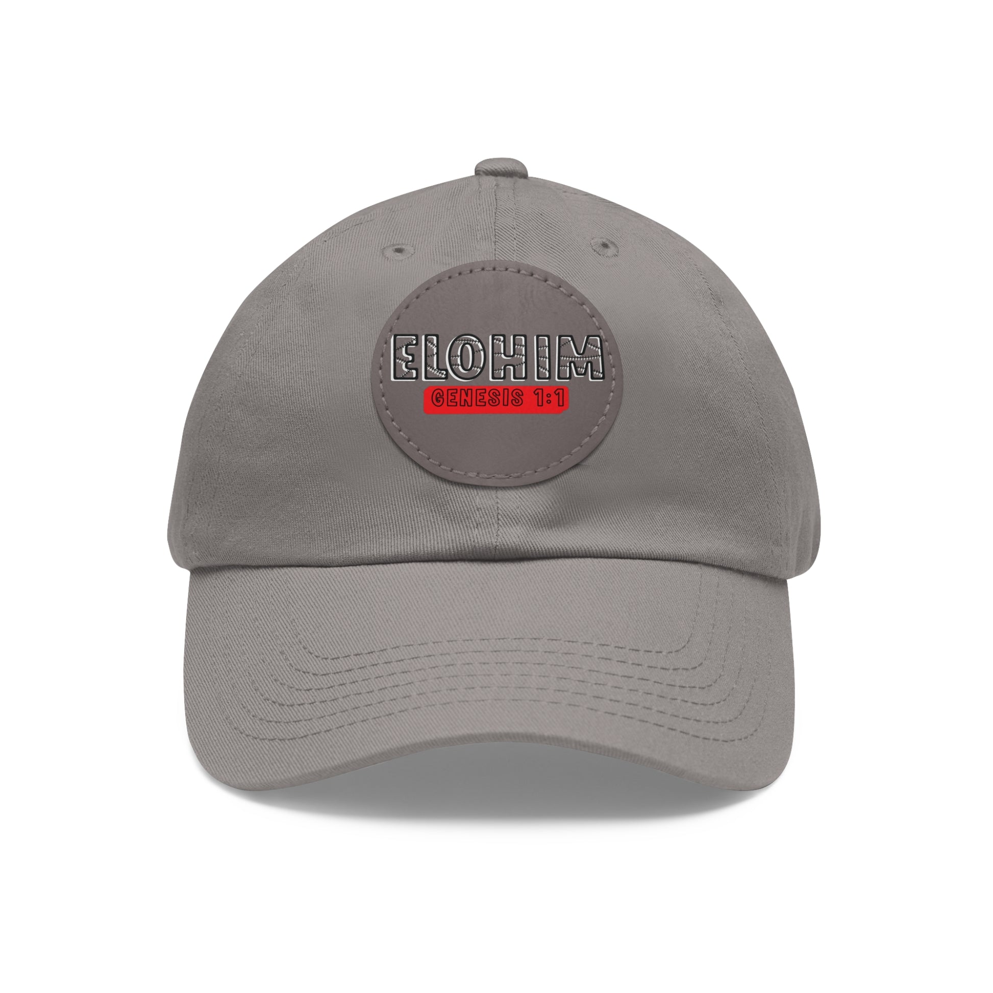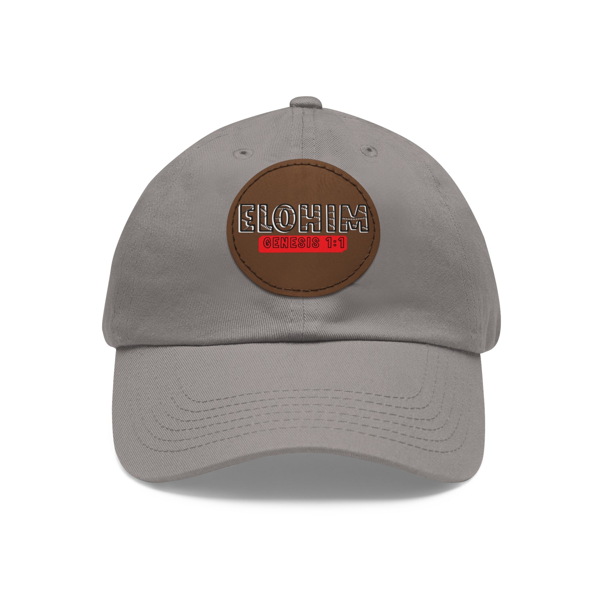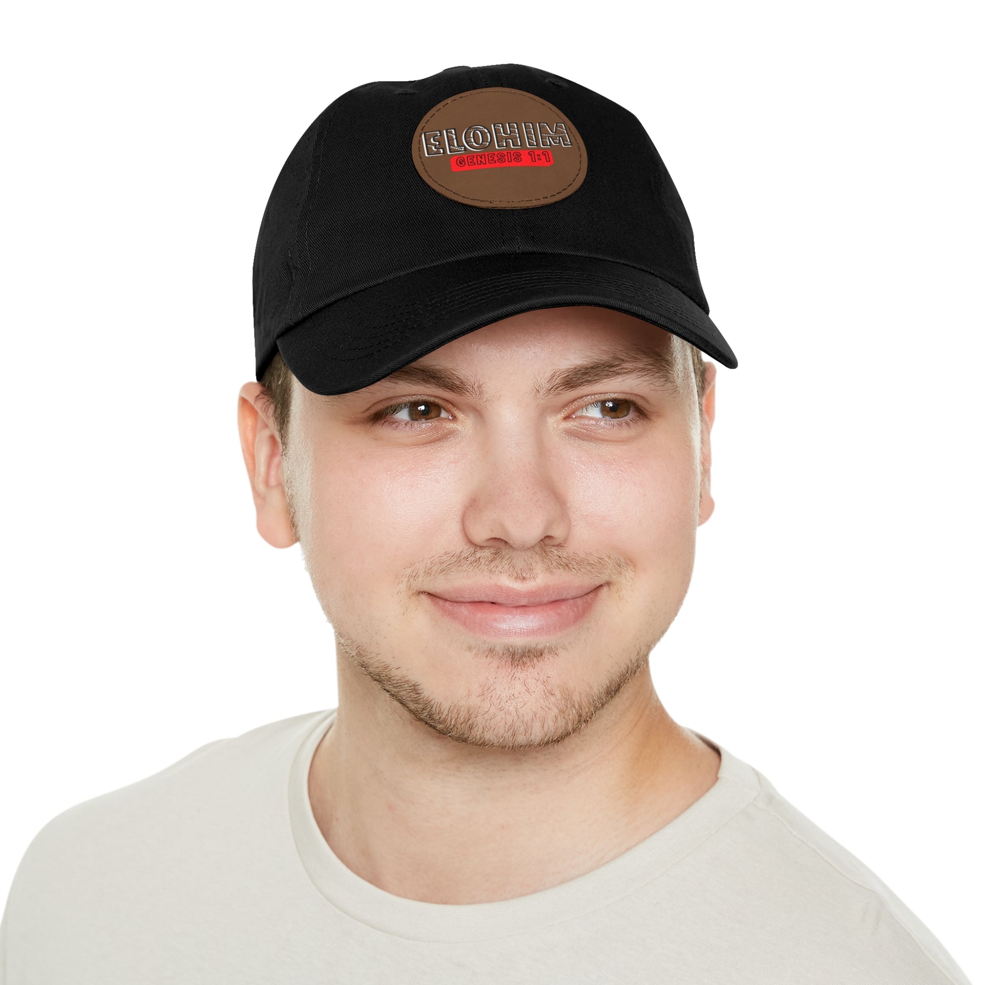 'ELOHIM, GENESIS 1:1- Stylish Dad Hat with Leather Patch | a Unisex Gift, Casual Wear, Summer Accessory, Unique Outdoor Cap, Adjustable Sun Hat, Christian Gift