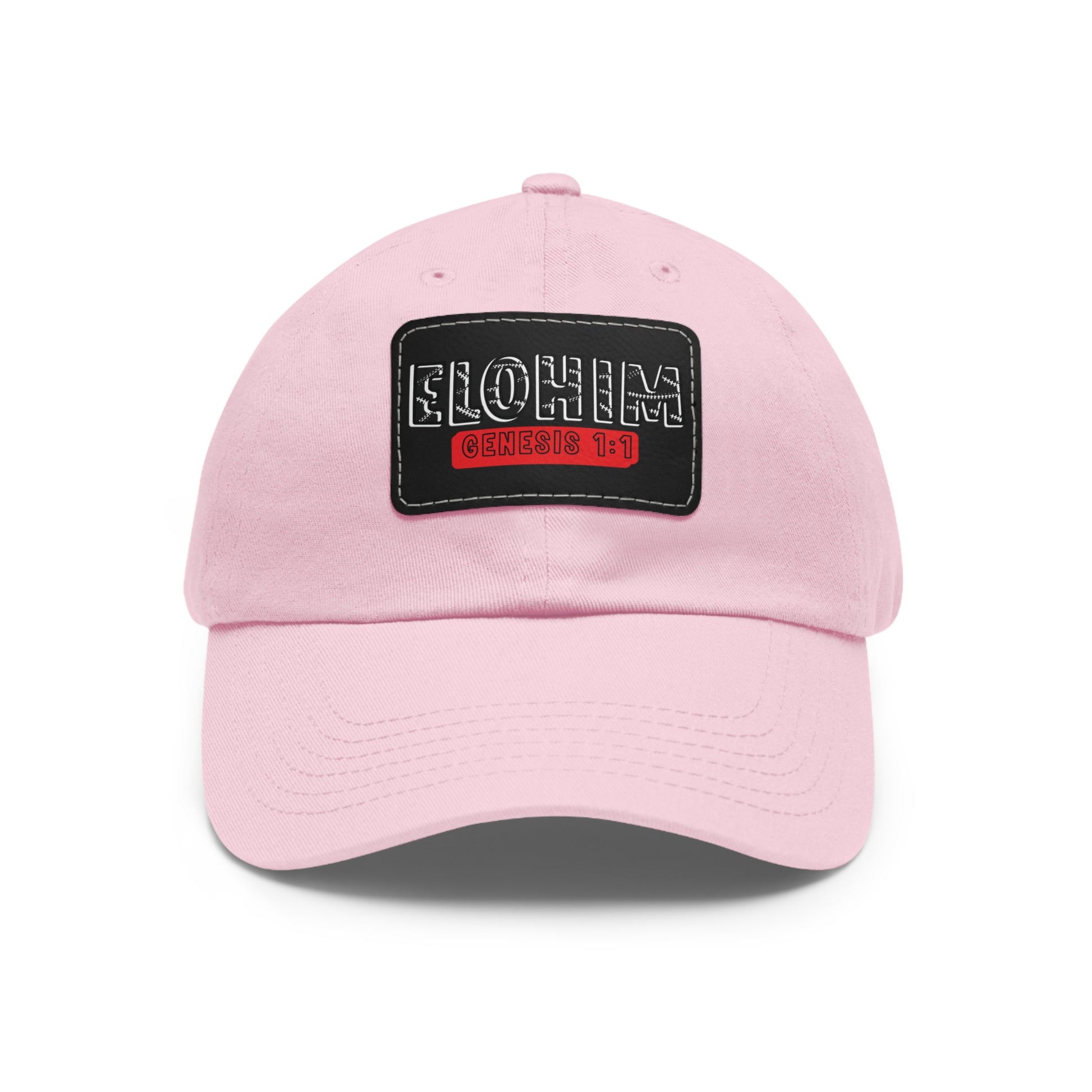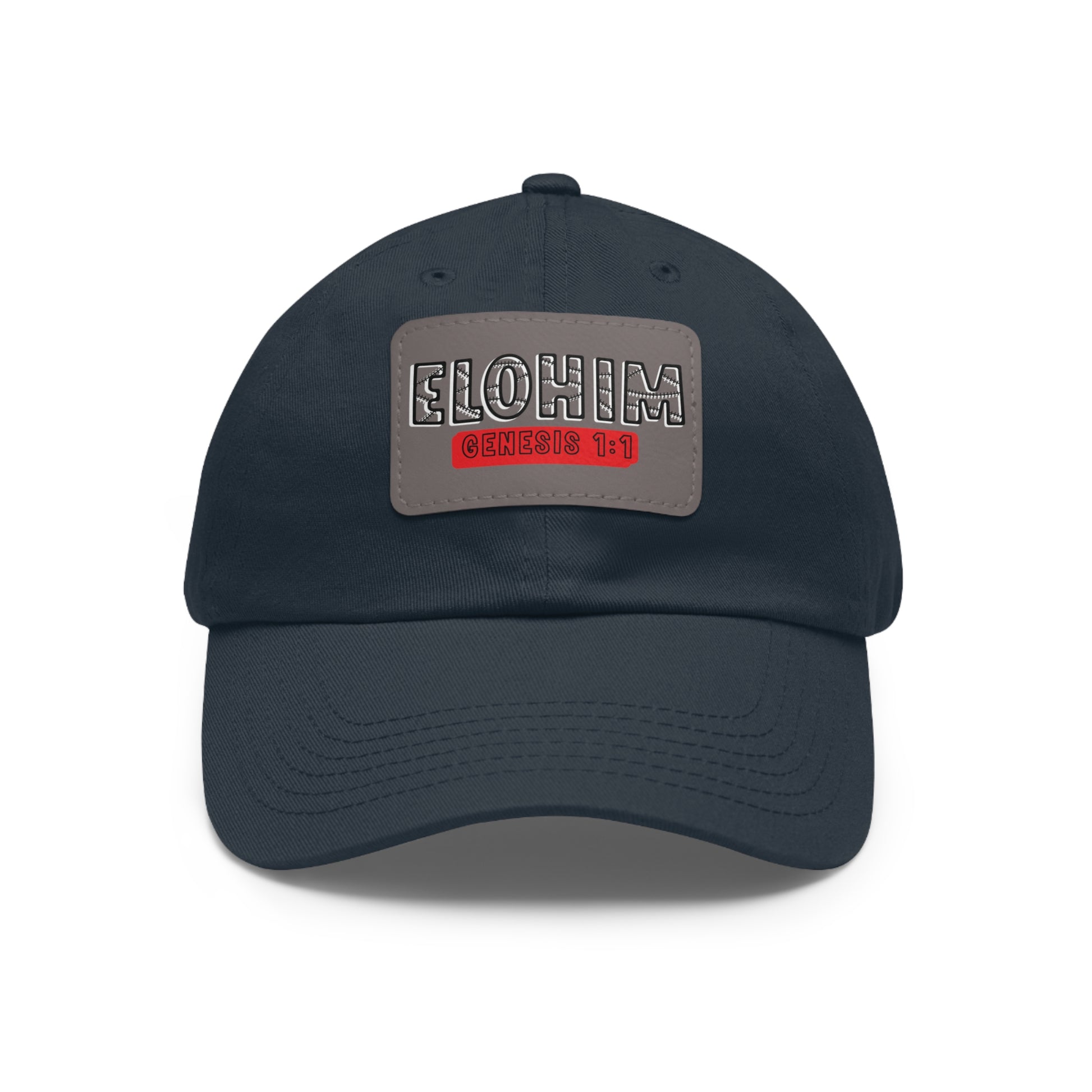 'ELOHIM, GENESIS 1:1- Stylish Dad Hat with Leather Patch | Great for Gifts for All, Casual Wear, Outdoor Activities, and Religious Events