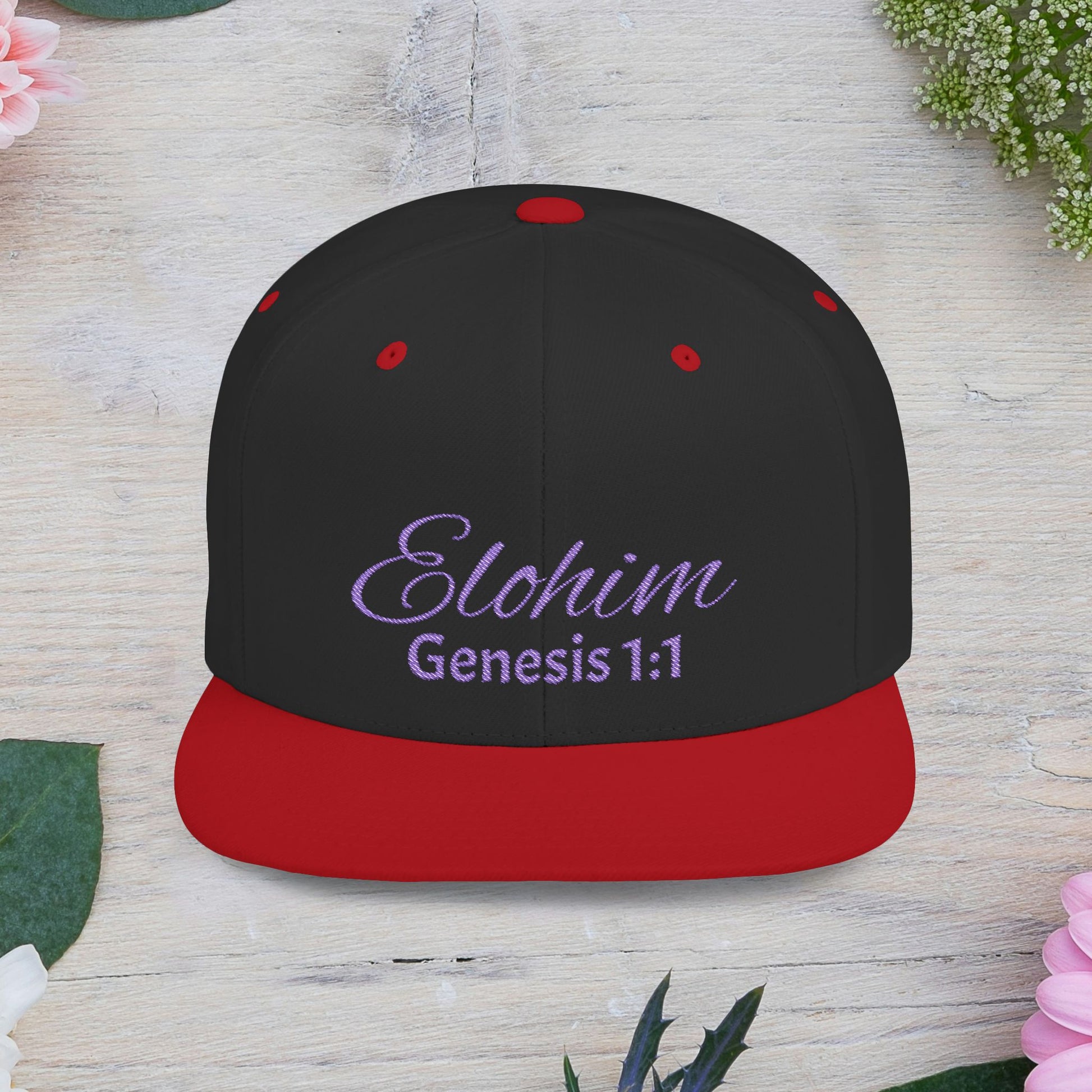 Purple 'Elohim' Snapback Cap - Faith-Inspired Flat Bill Hat, Baseball Hat, Perfect for Gifts, Daily Wear, Spiritual Events