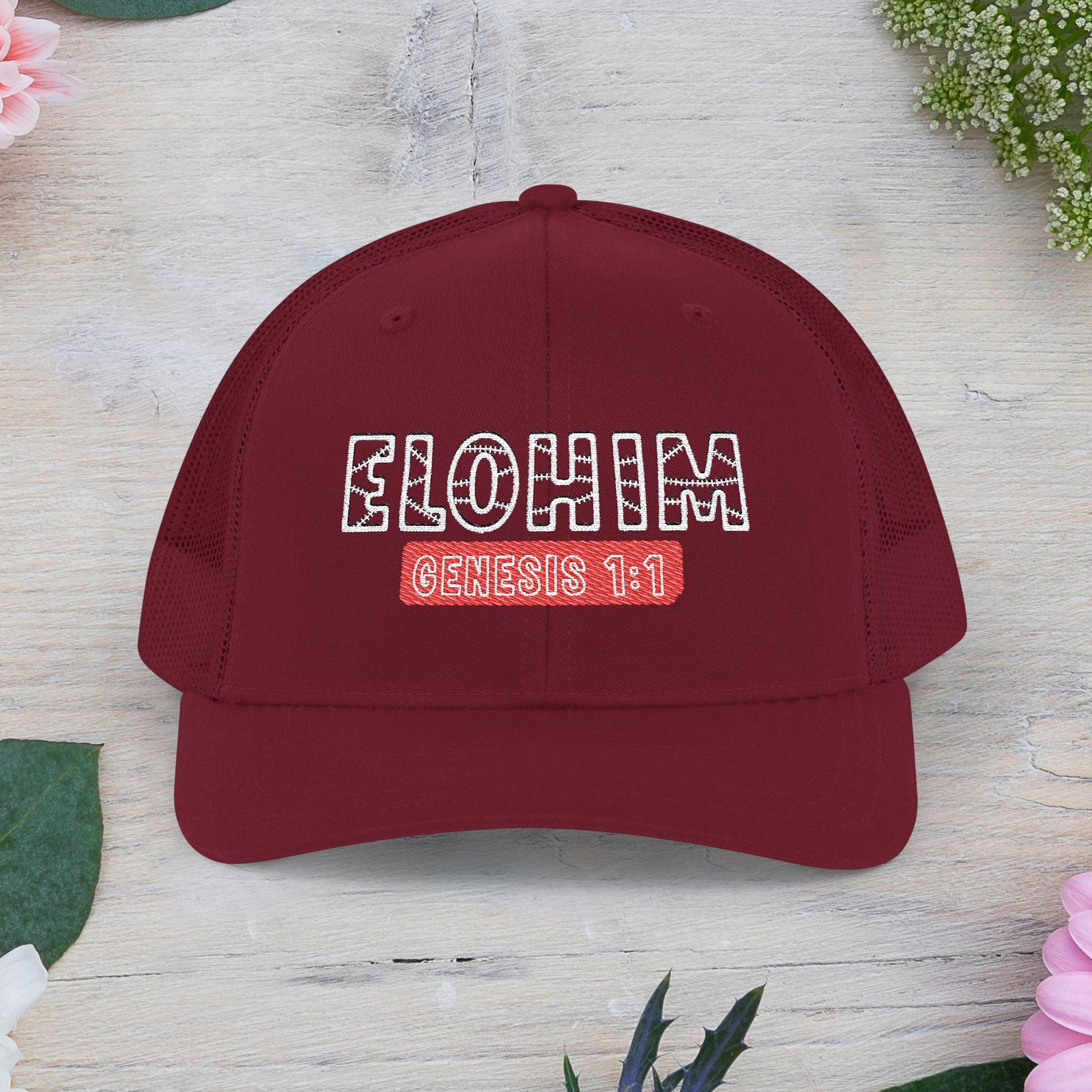 Embroidered 'ELOHIM GENESIS 1:1' Snapback Cap, Faith-Based Trucker Hat, Christian Gifts, Stylish Headwear, Religious Apparel, Perfect for Summer