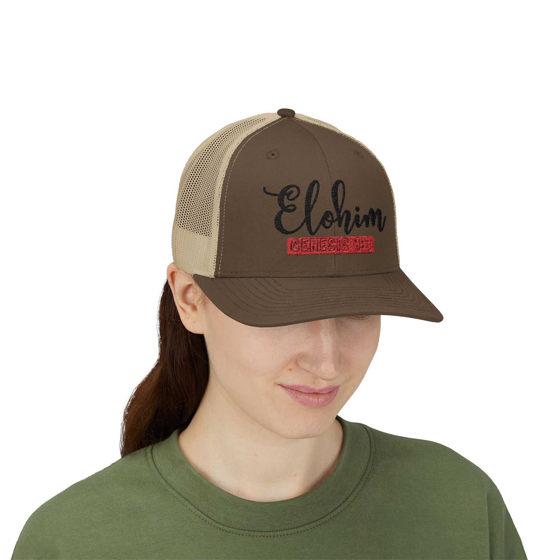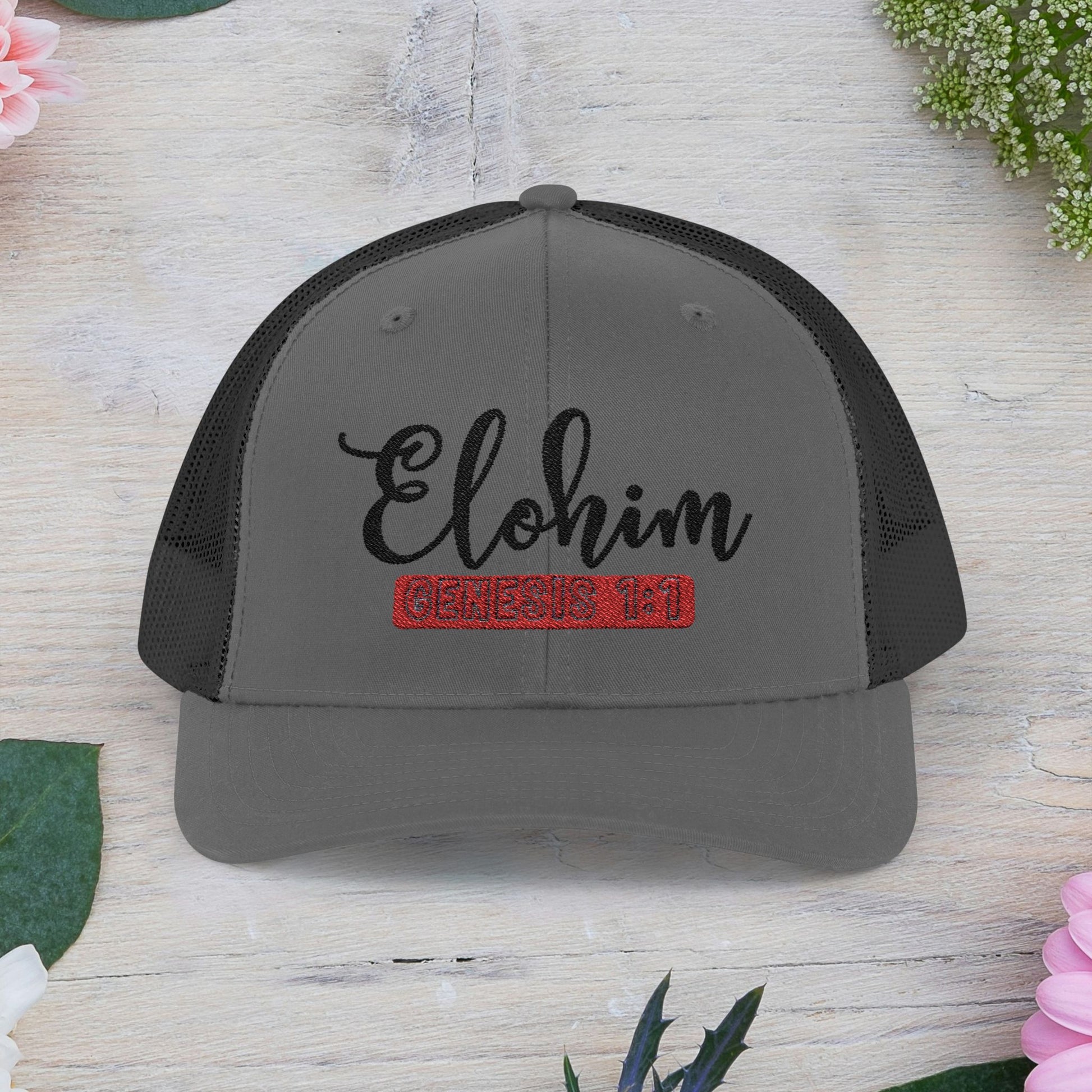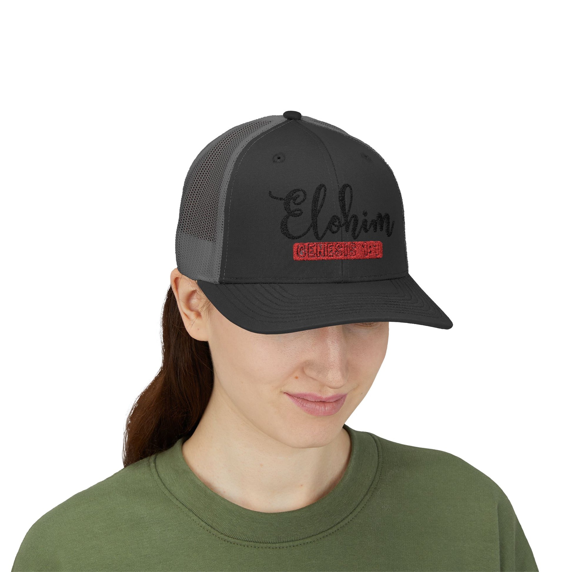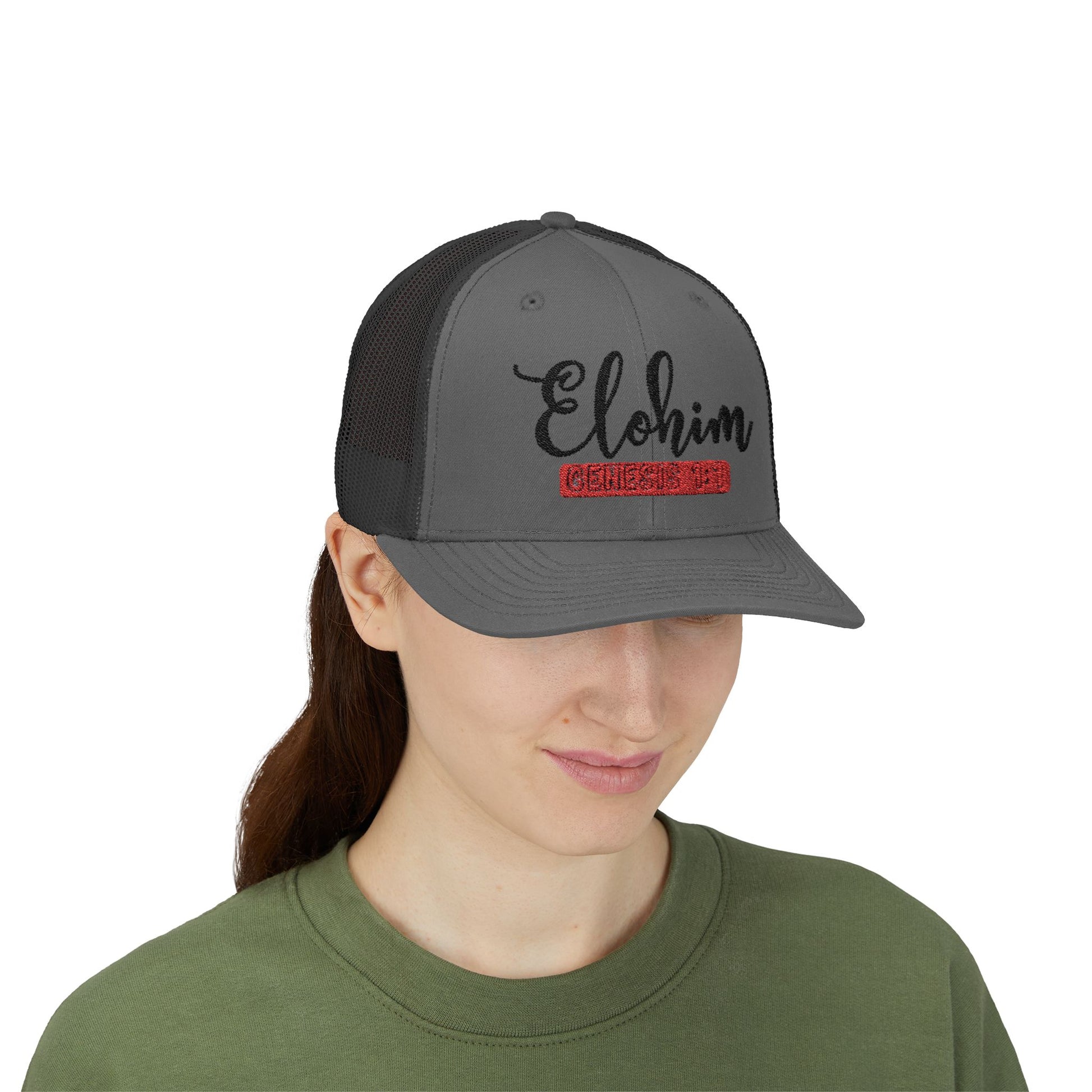 Embroidery 'ELOHIM, GENESIS 1:1' Faith Snapback Trucker Cap - Religious Hat, Stylish Accessory, Gift for Believers, Casual Wear, Outdoor Events, Faith-Based, Name of GOD.