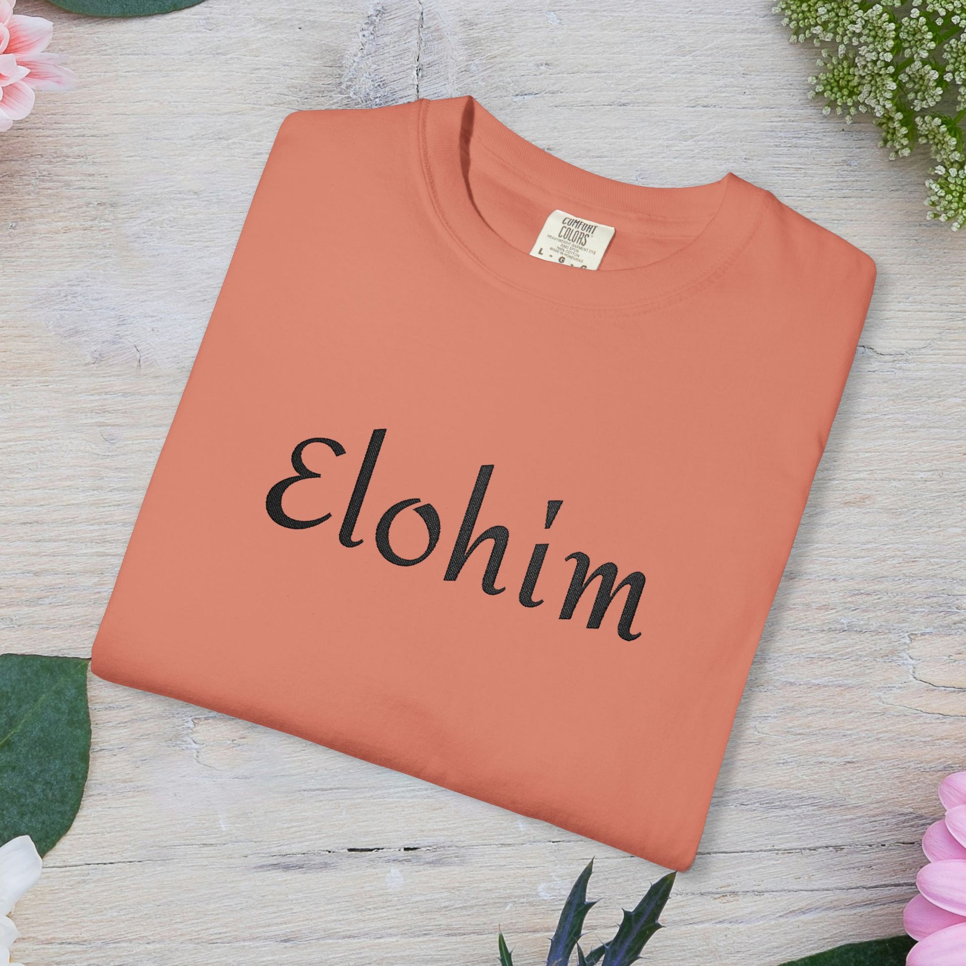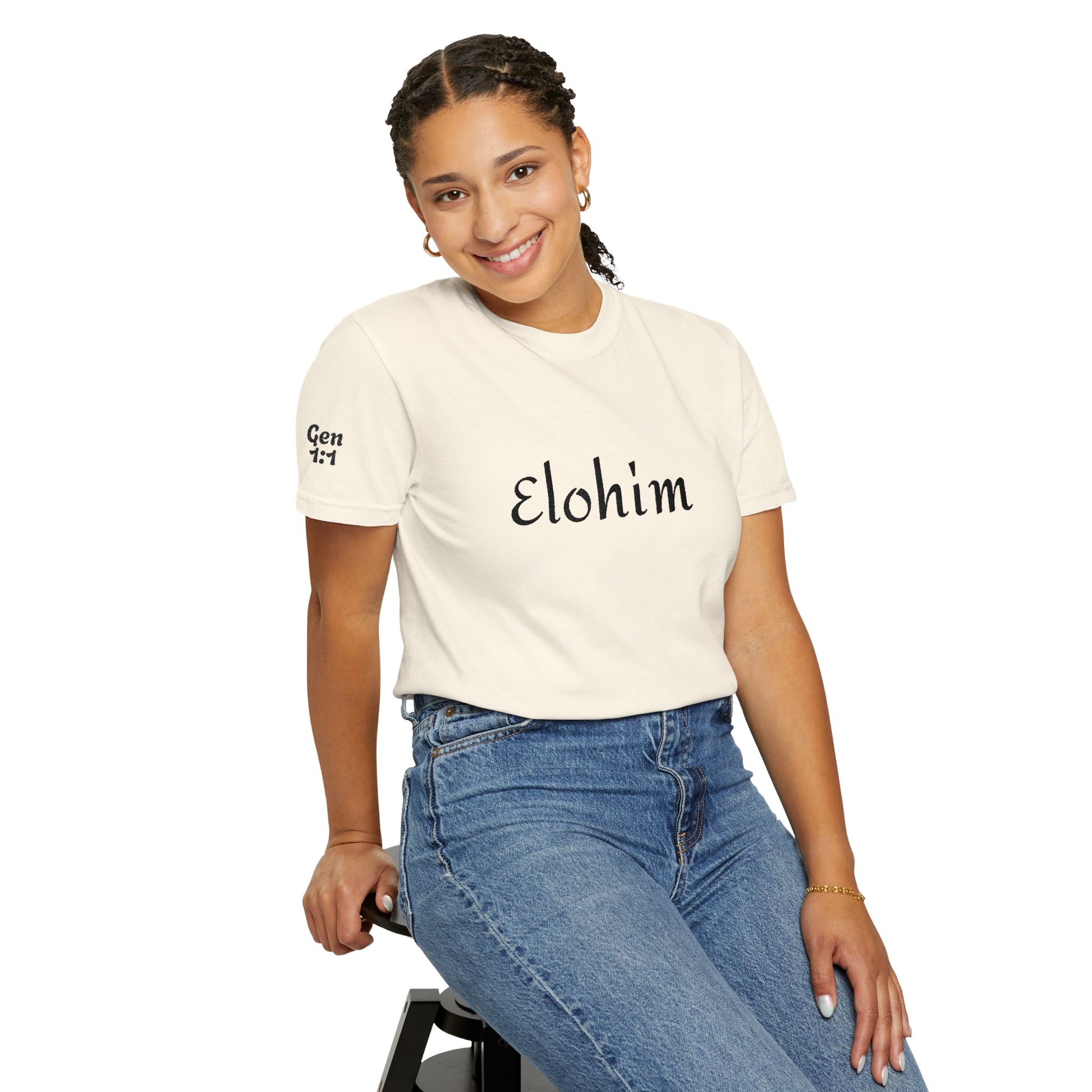 Embroidery 'ELOHIM, GENESIS 1:1' - Faith-Based Unisex Garment-Dyed Comfort Colors T-shirt, Faith Gift Tee, Religious Tee, Embroidery Tee.