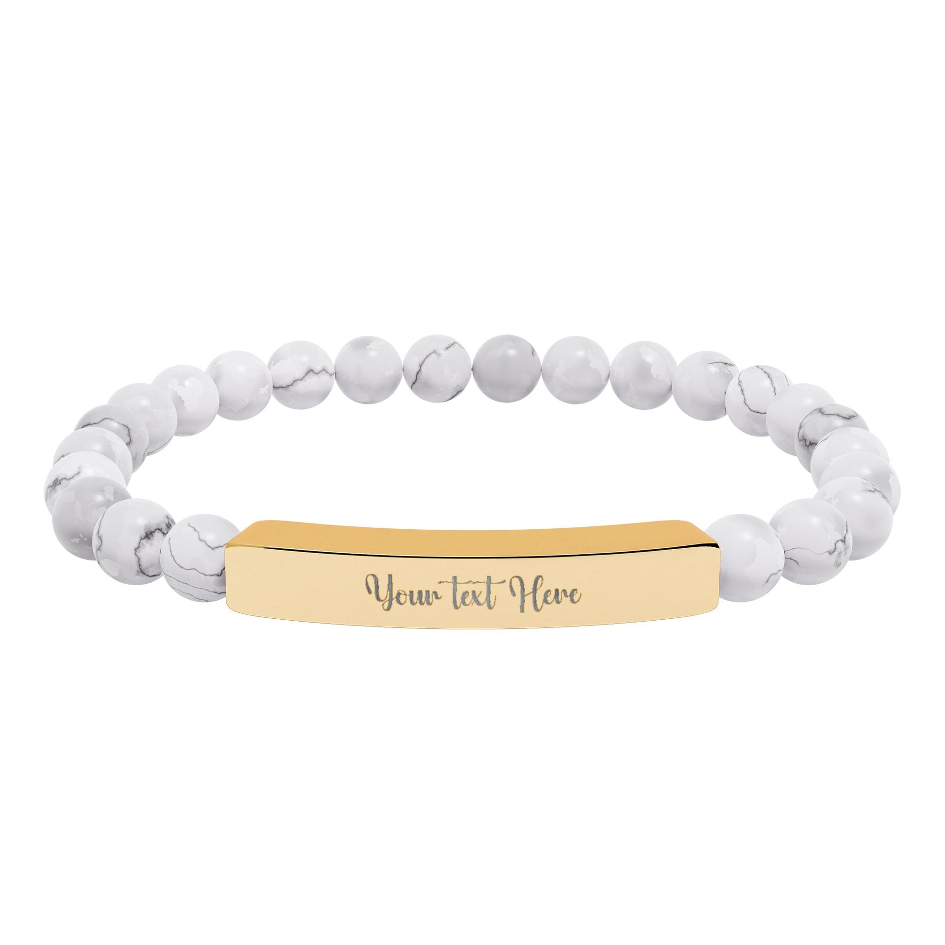 Engravable Natural Stone Stretch Bar Bracelet — Personalized Beaded Wristband