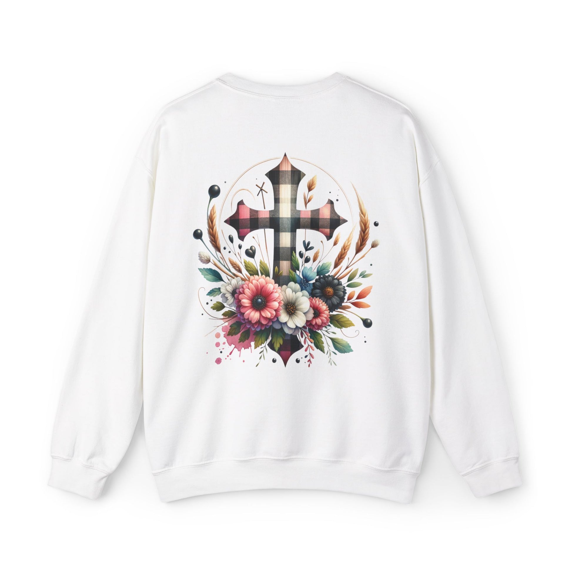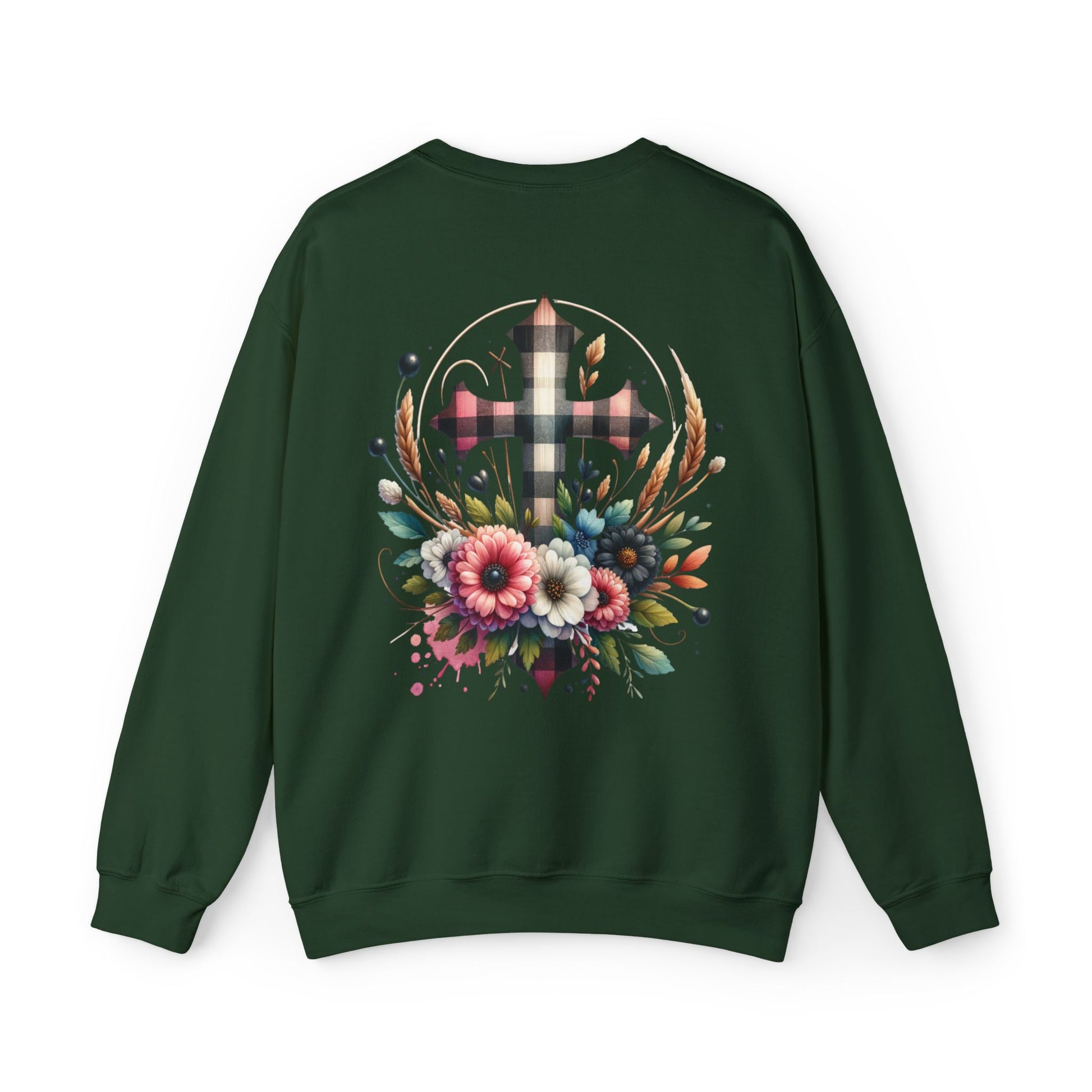 Faith and Floral Cross Unisex Heavy Blend Crewneck