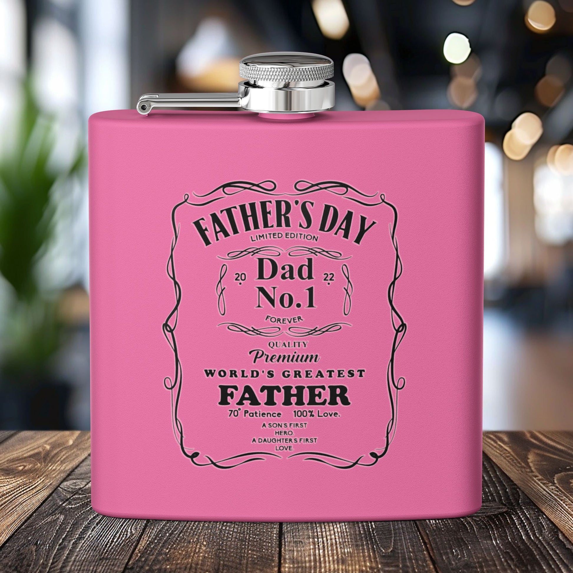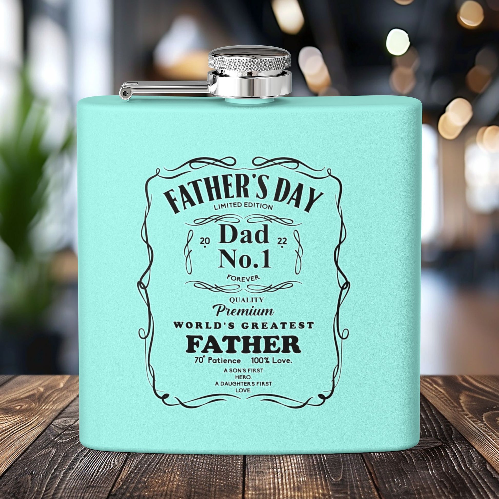 Father's Day Stainless Steel Flask - World's Greatest Dad Gift, Personalized Hip Flask, Groomsmen Gift, Engraved Drinkware