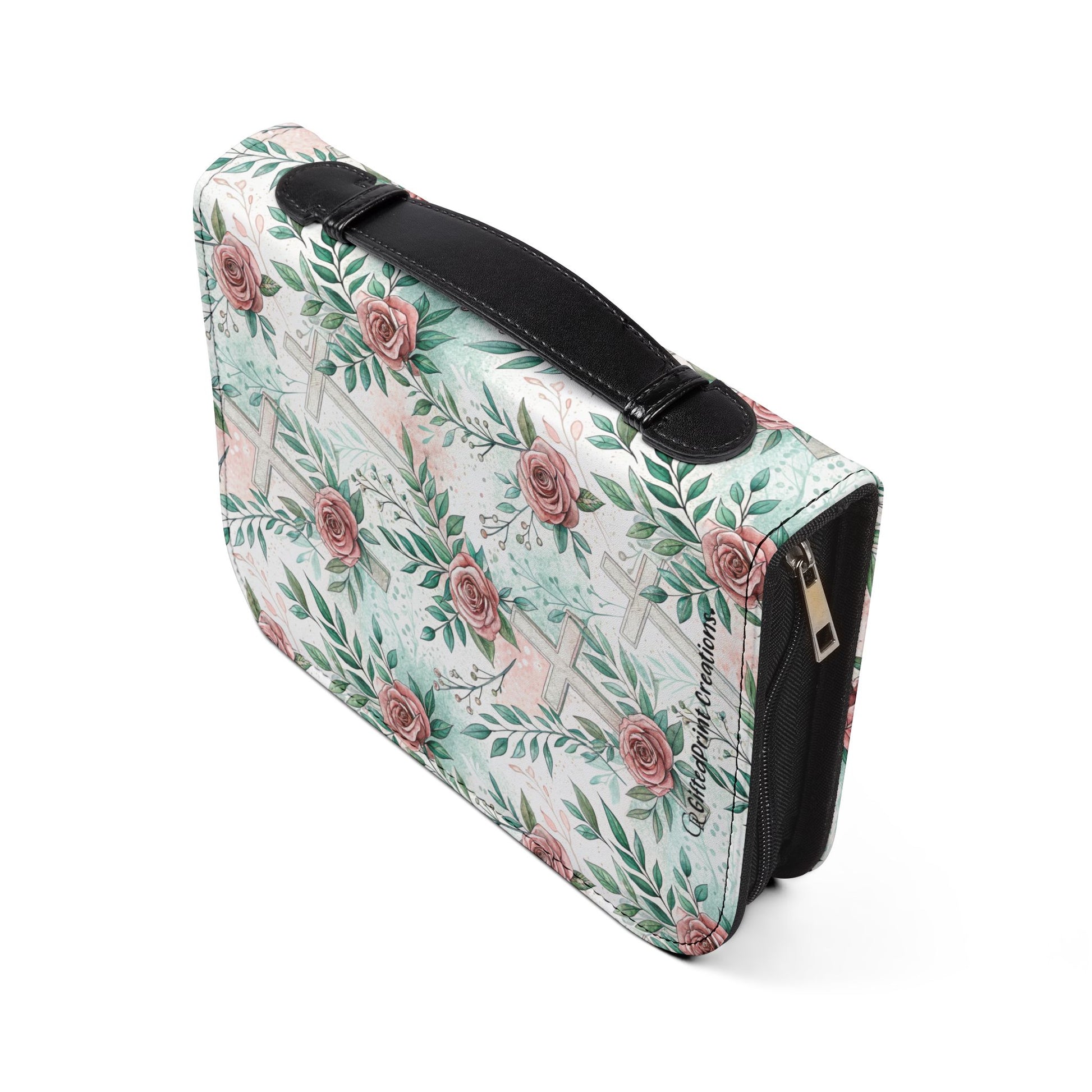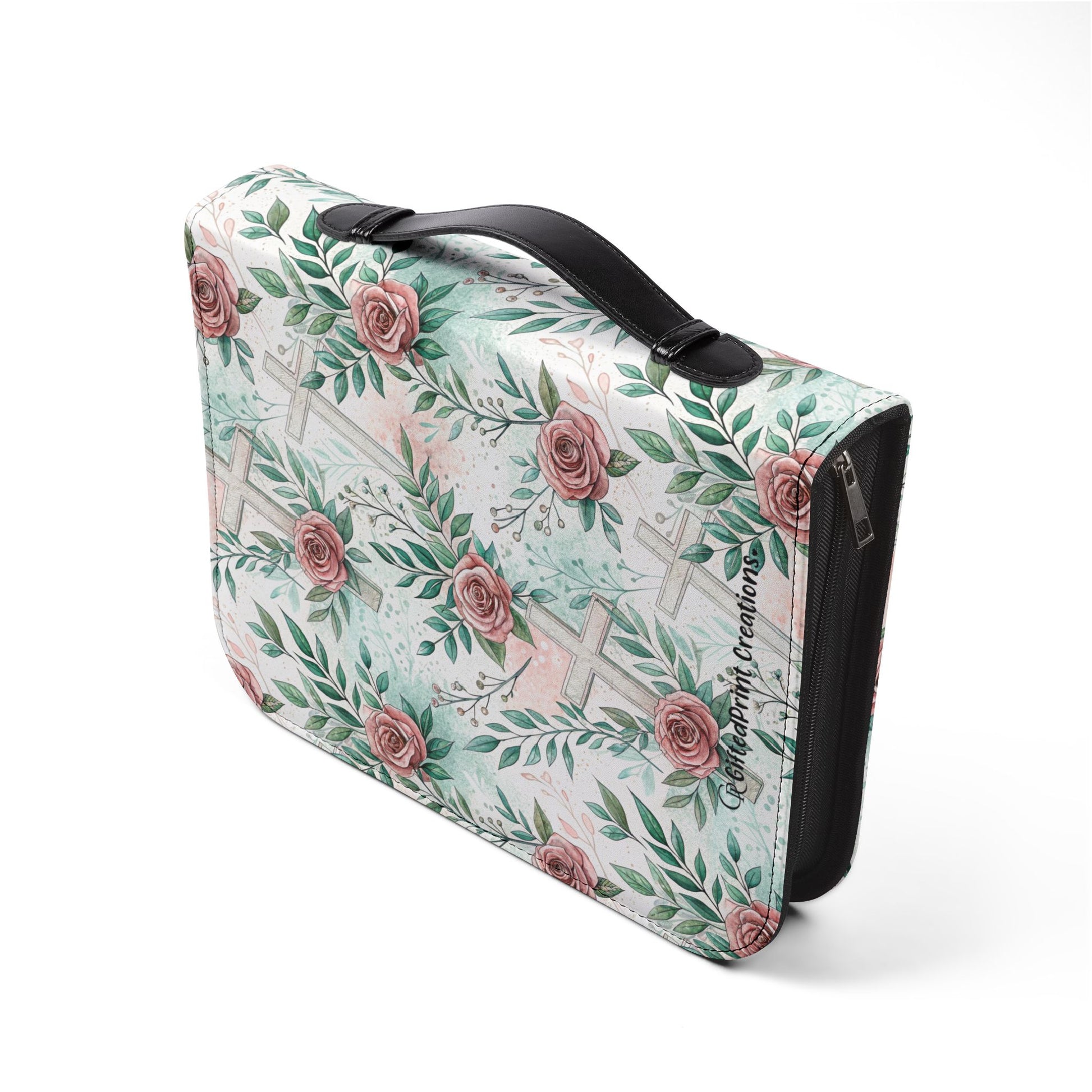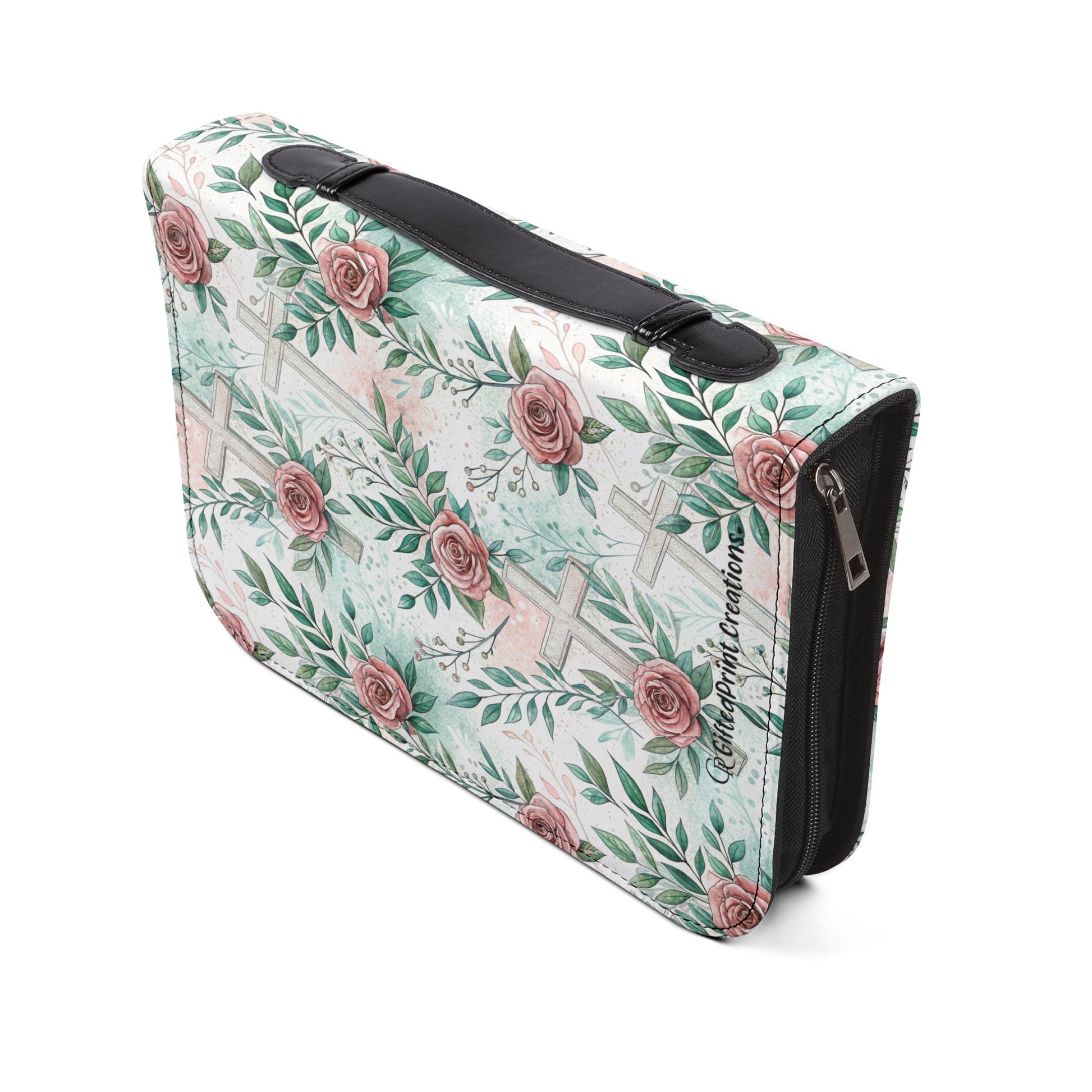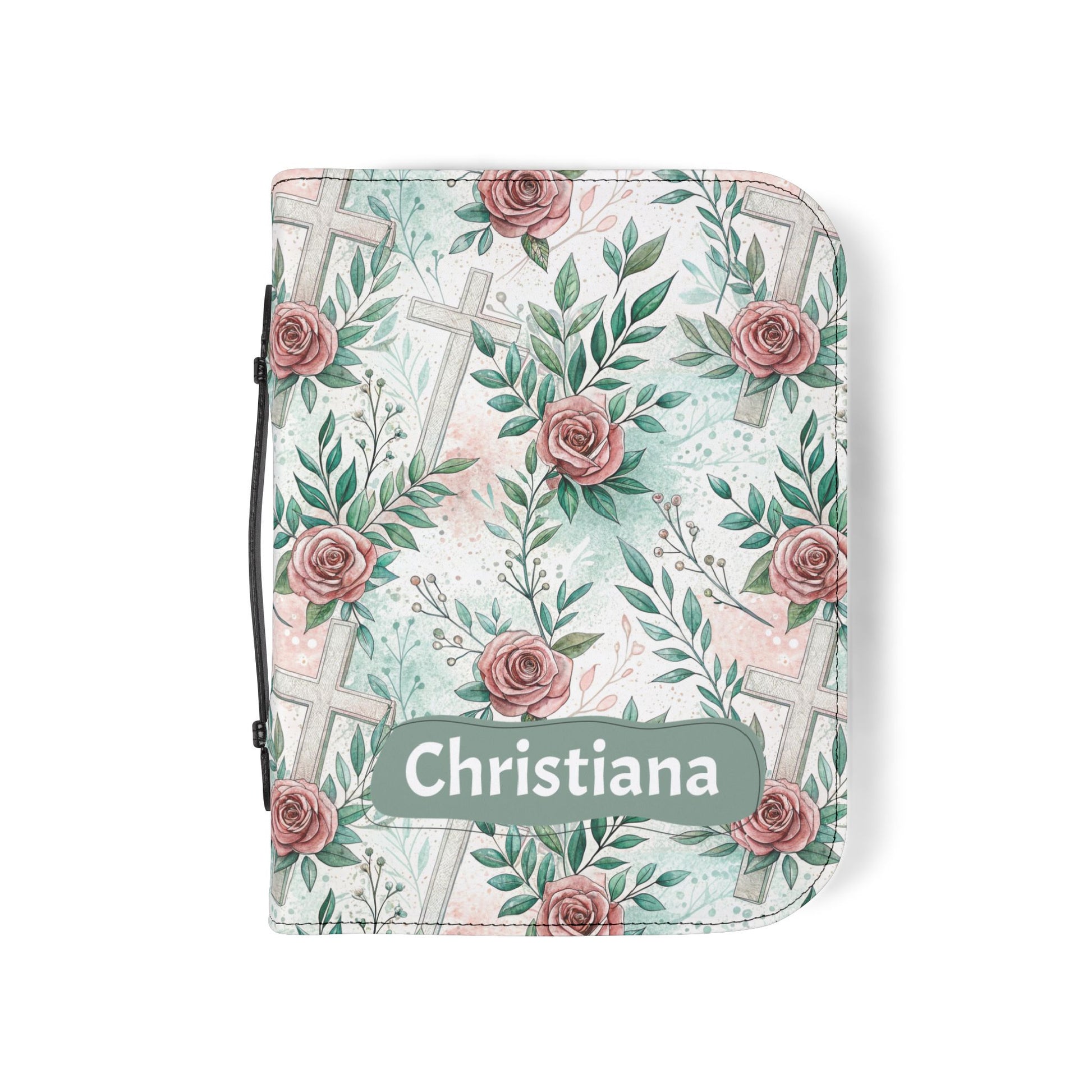 Floral Cross Bible Cover - Personalized Christian Journal Sleeve| Baptism | Christening | Anniversary | Birthday Gifts.