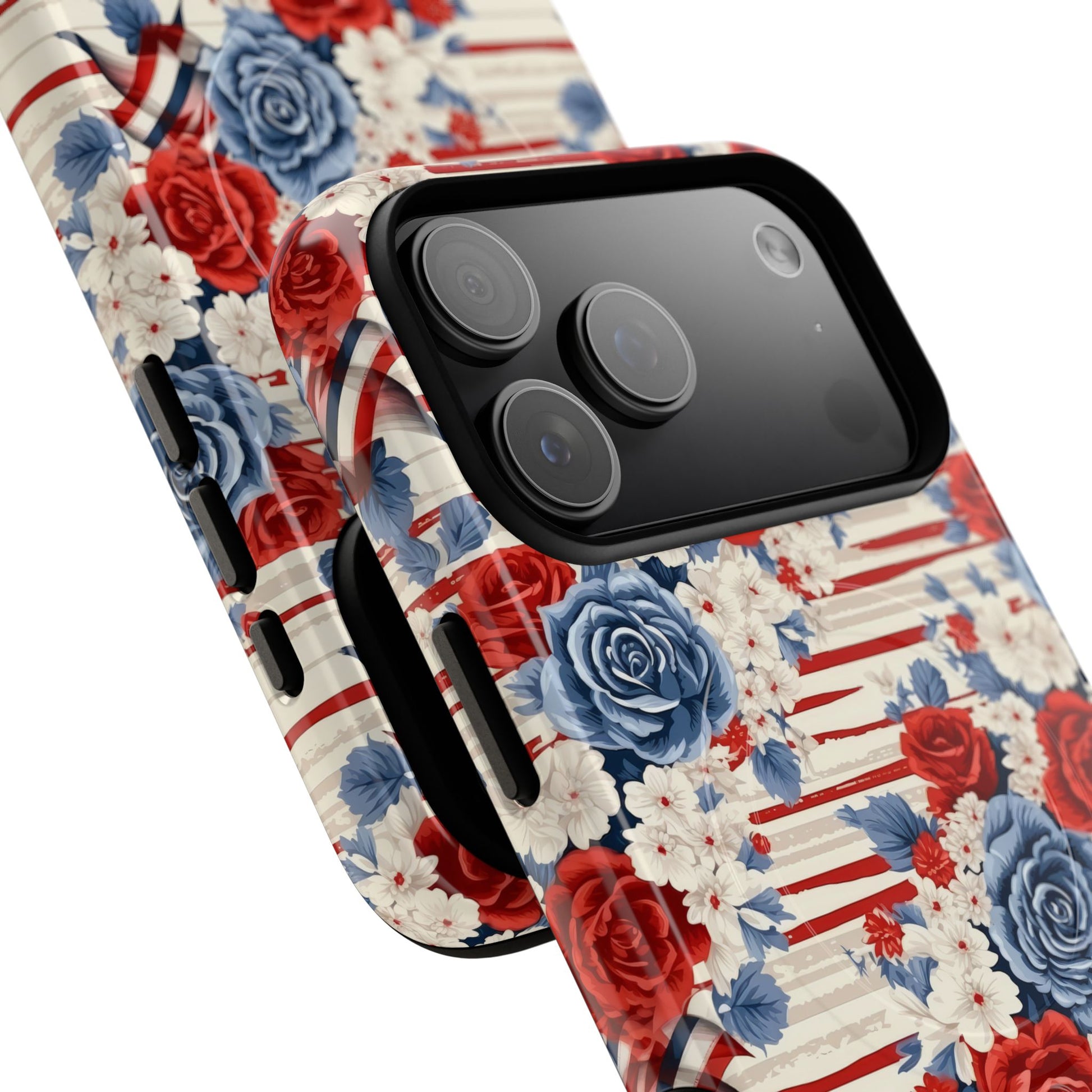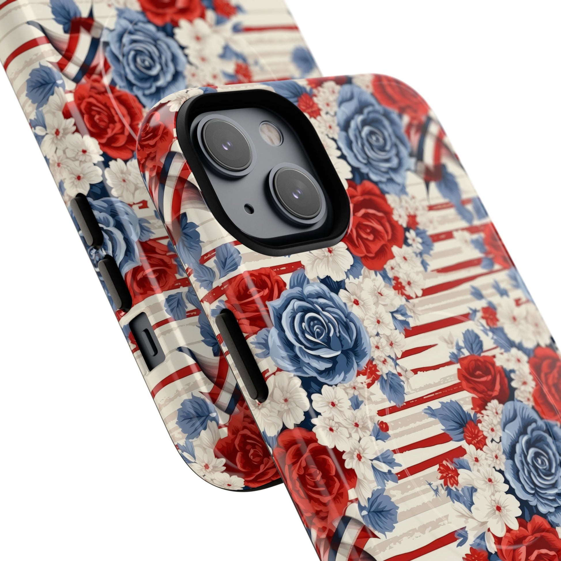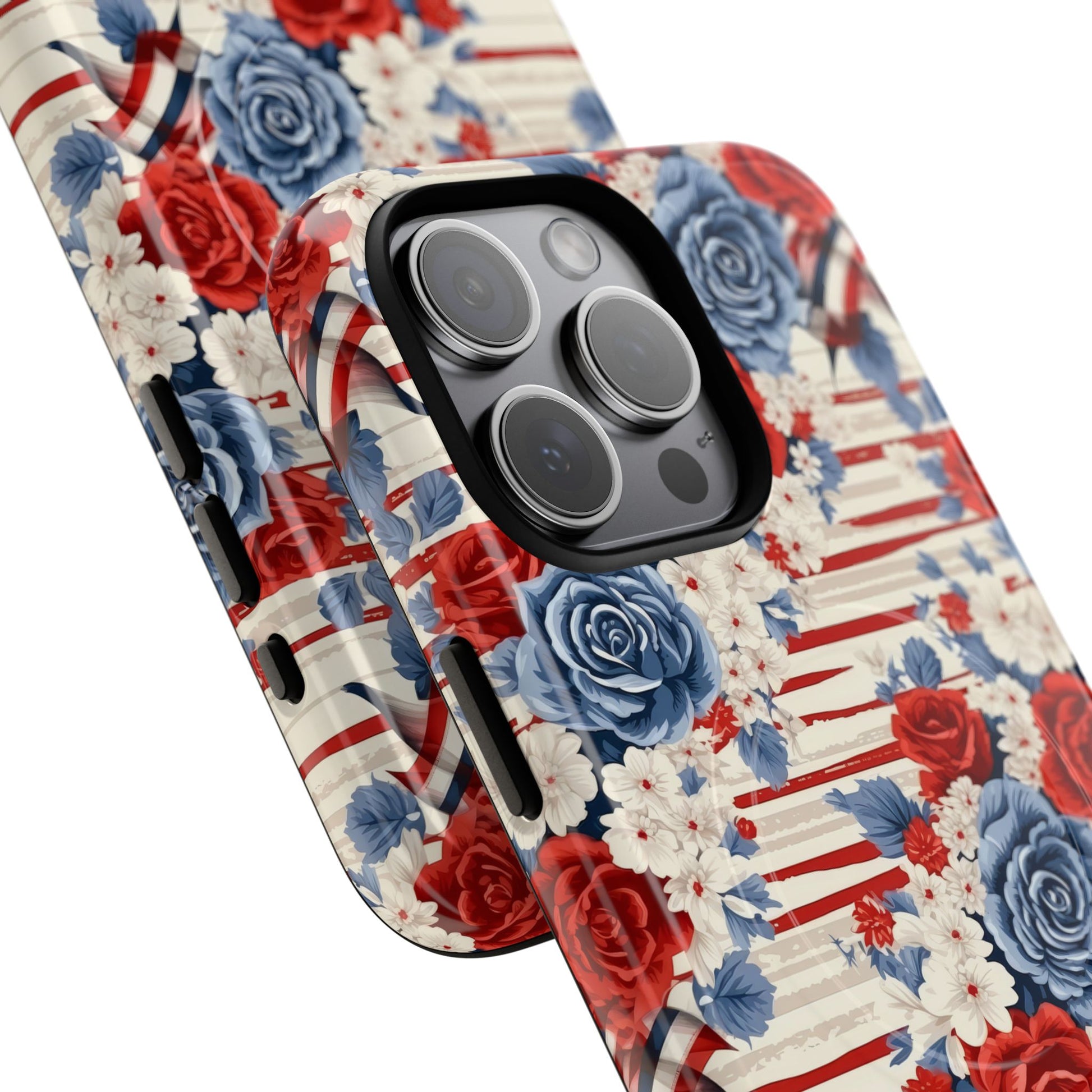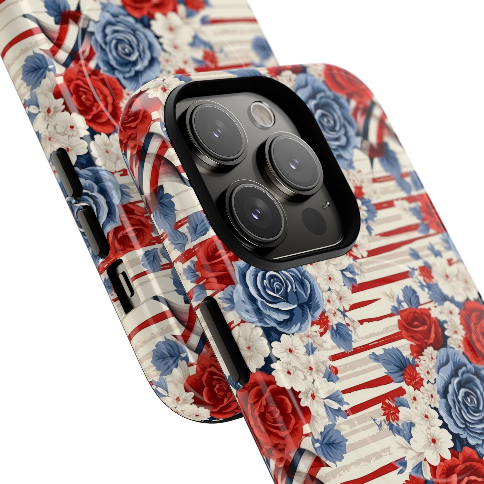 Floral Freedom Tough iPhone Magnetic Case, Red Blue Flower Design, iPhone MagSafe® compatibility Cover, Best Gift for Her, Holiday Present
