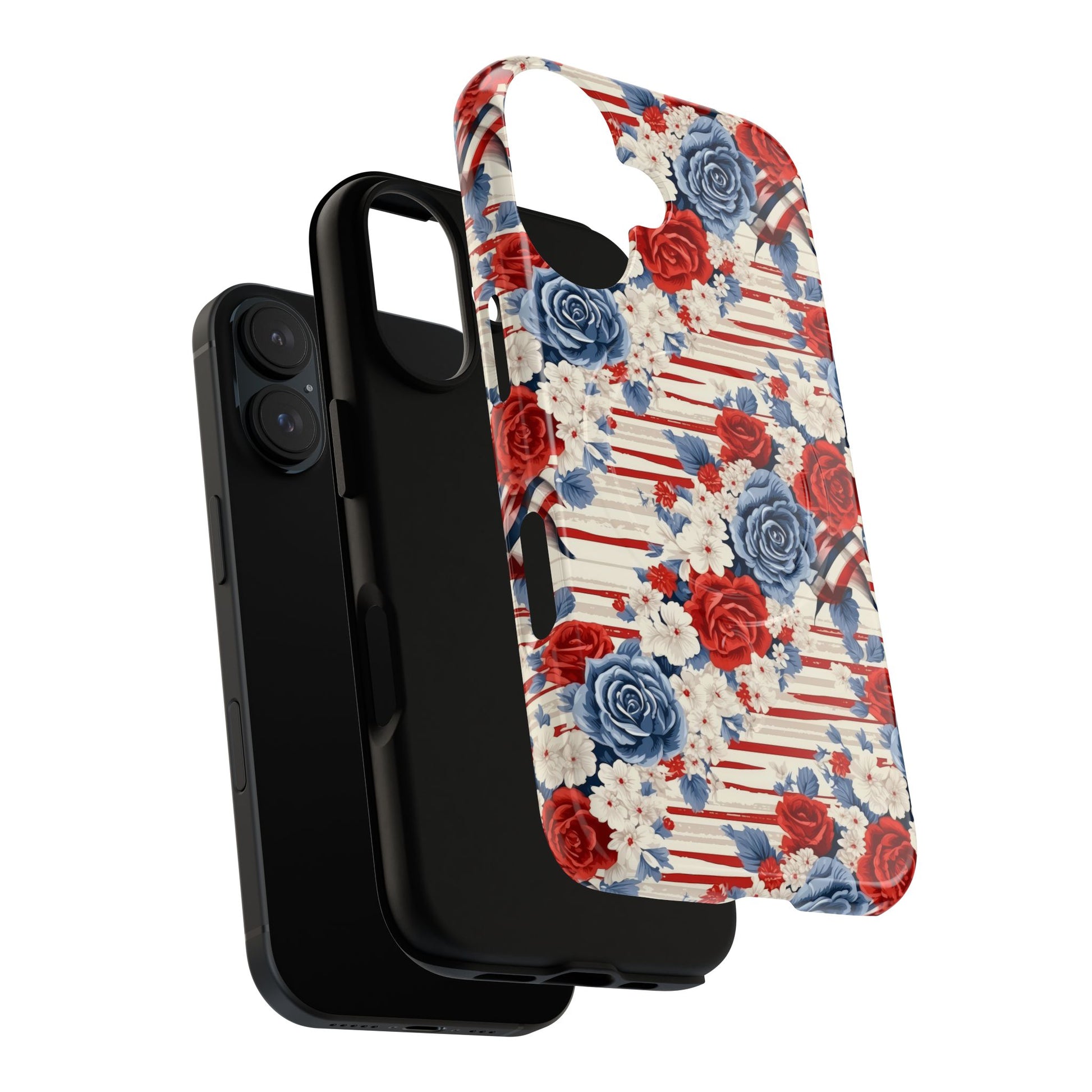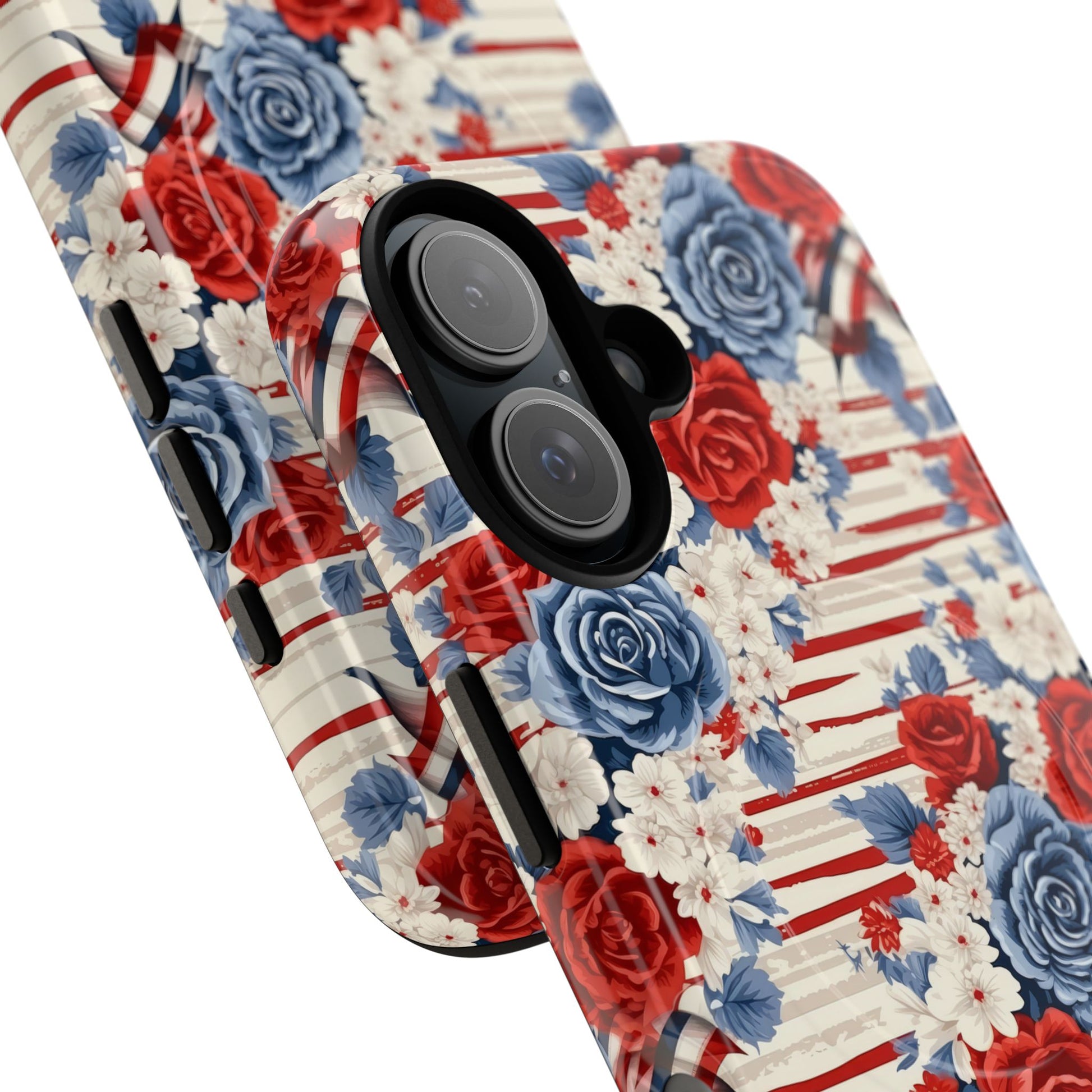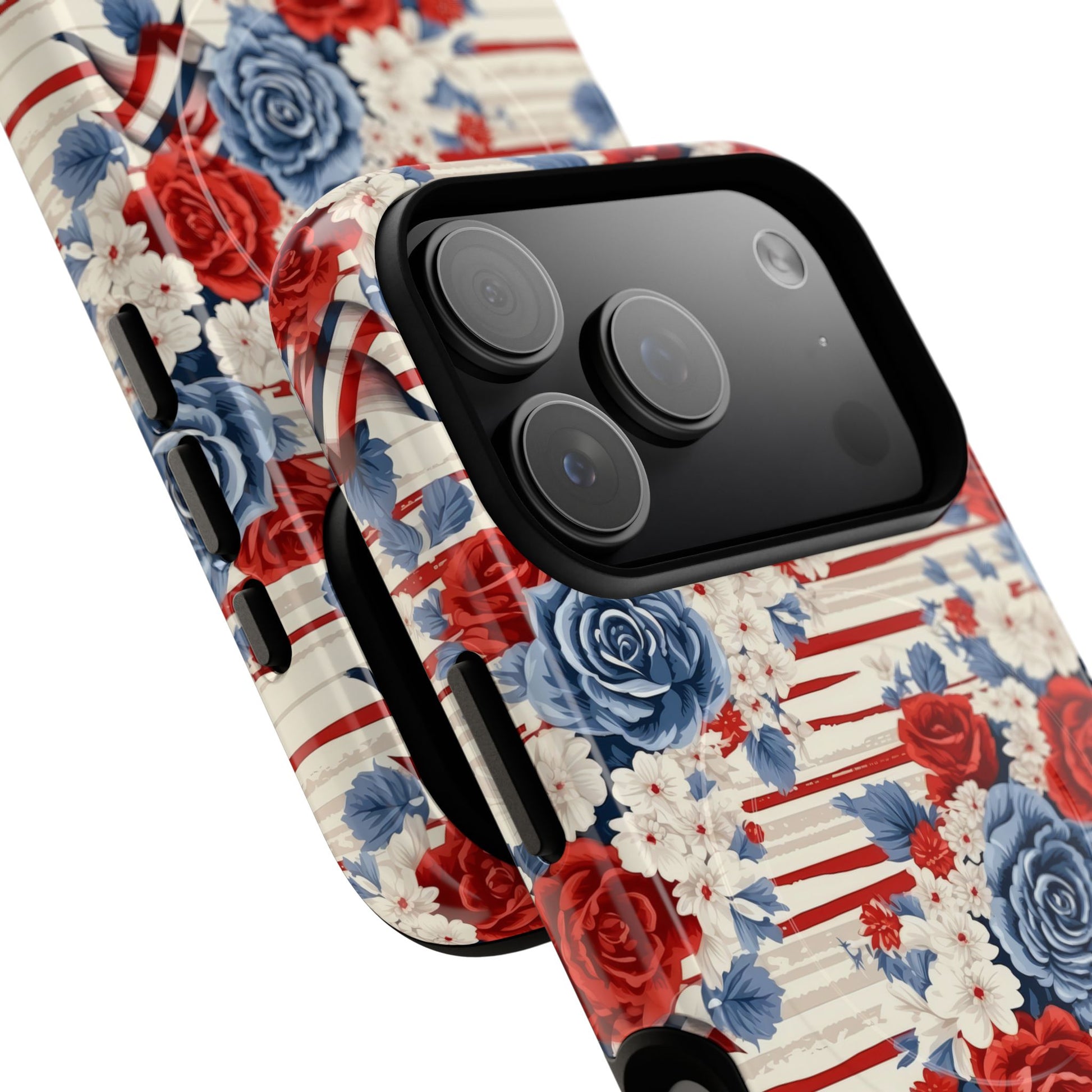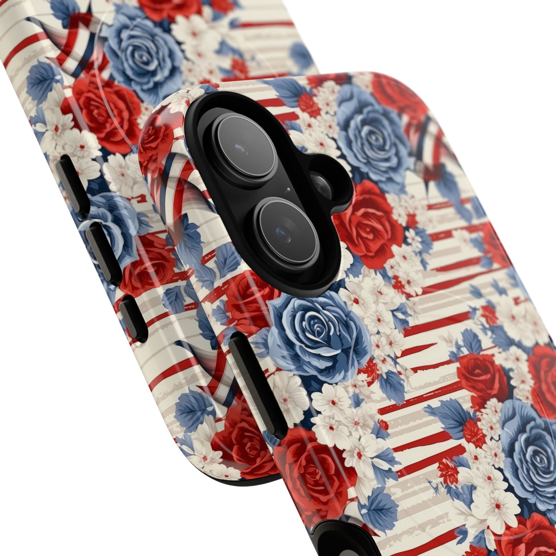 Floral Freedom Tough iPhone Magnetic Case, Red Blue Flower Design, iPhone MagSafe® compatibility Cover, Best Gift for Her, Holiday Present