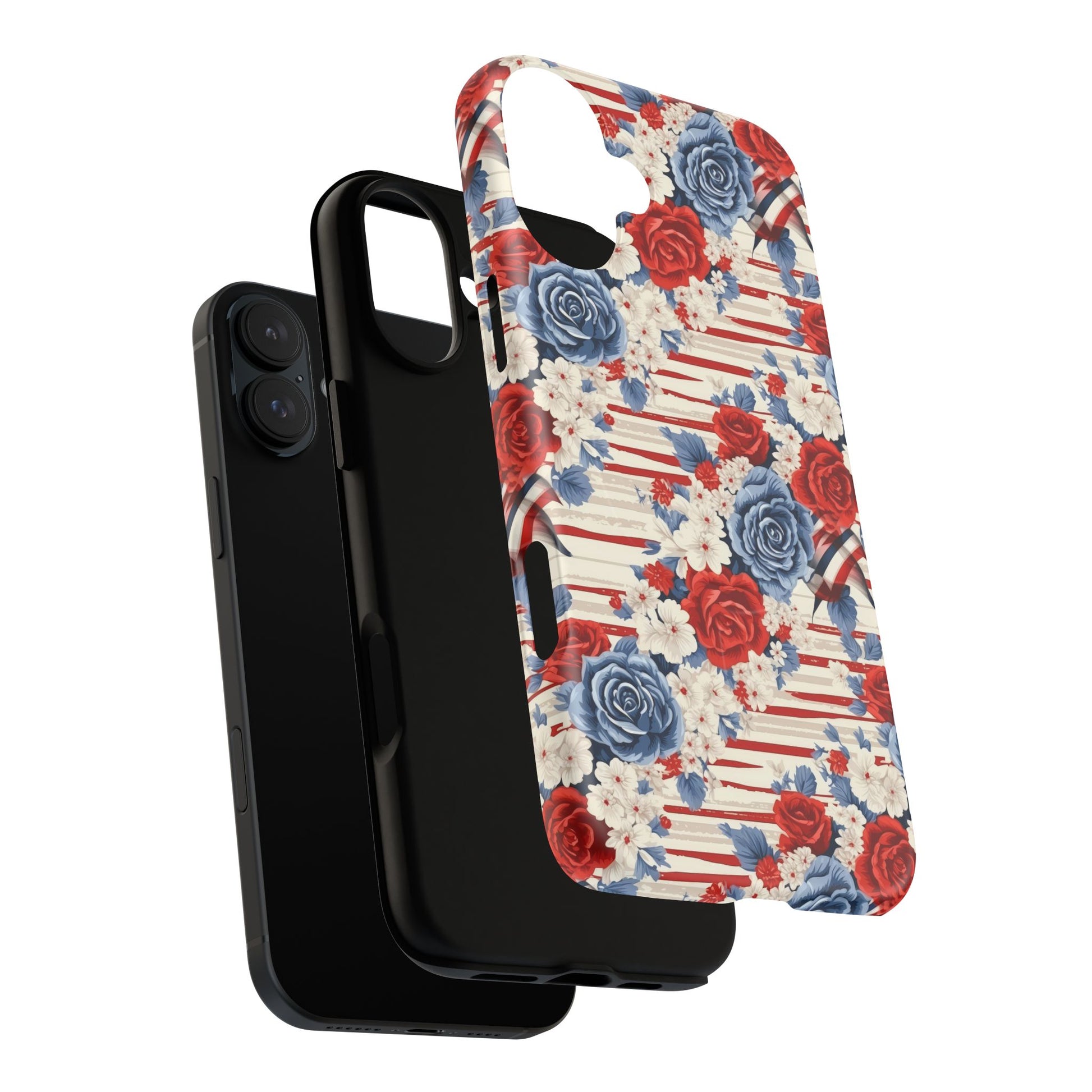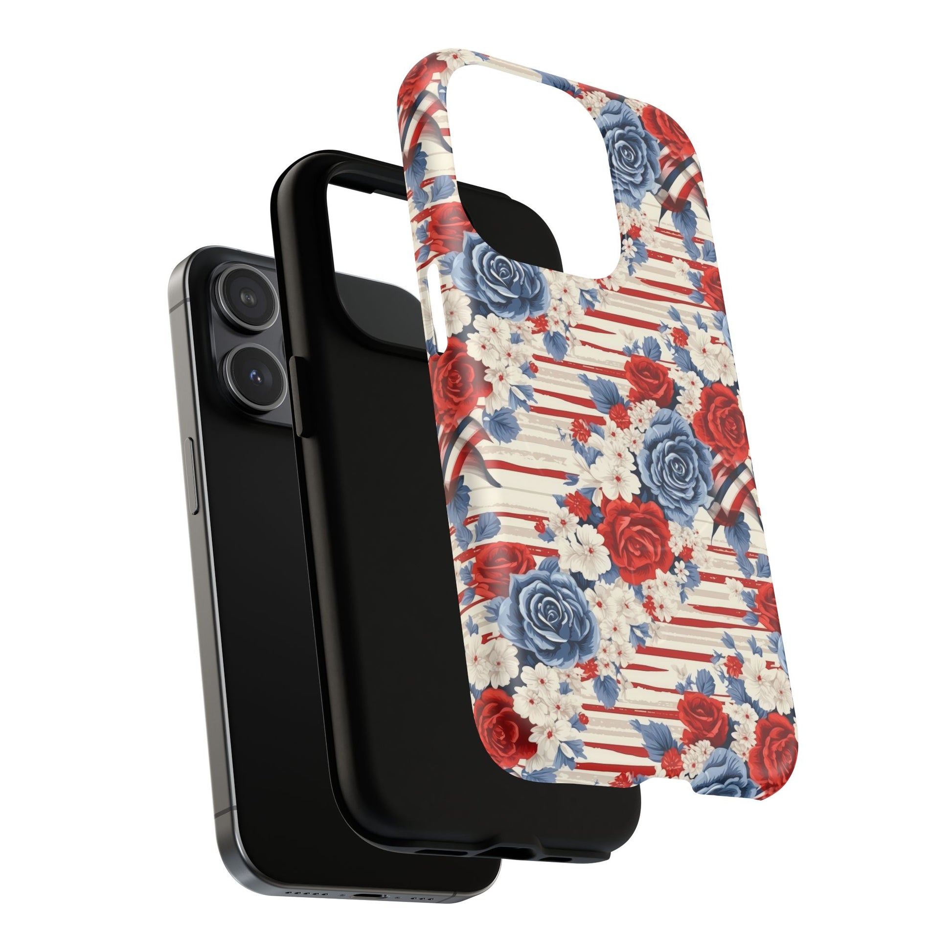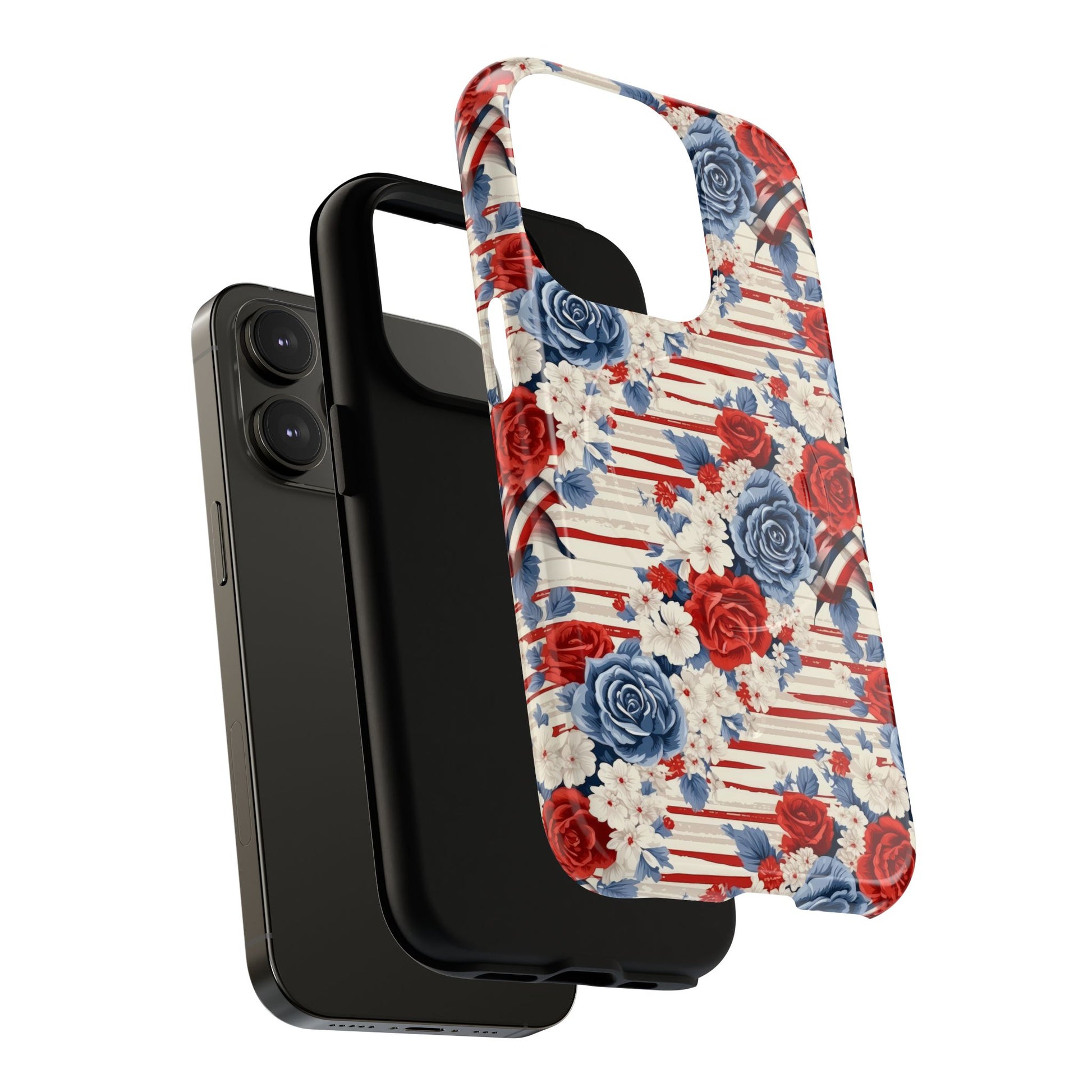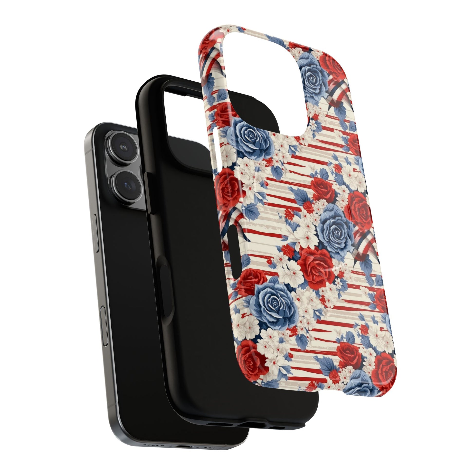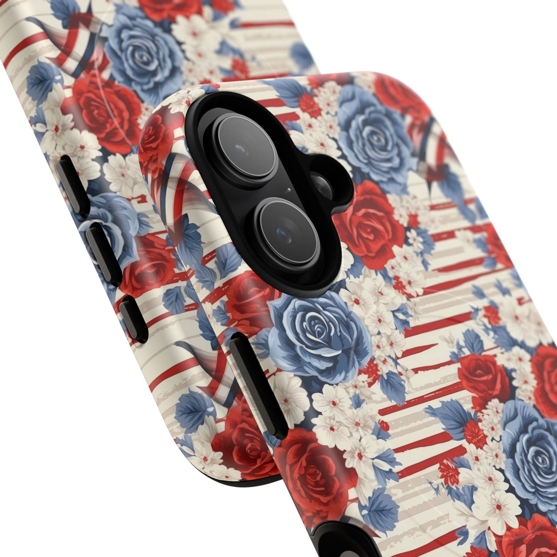 Floral Freedom Tough iPhone Magnetic Case, Red Blue Flower Design, iPhone MagSafe® compatibility Cover, Best Gift for Her, Holiday Present
